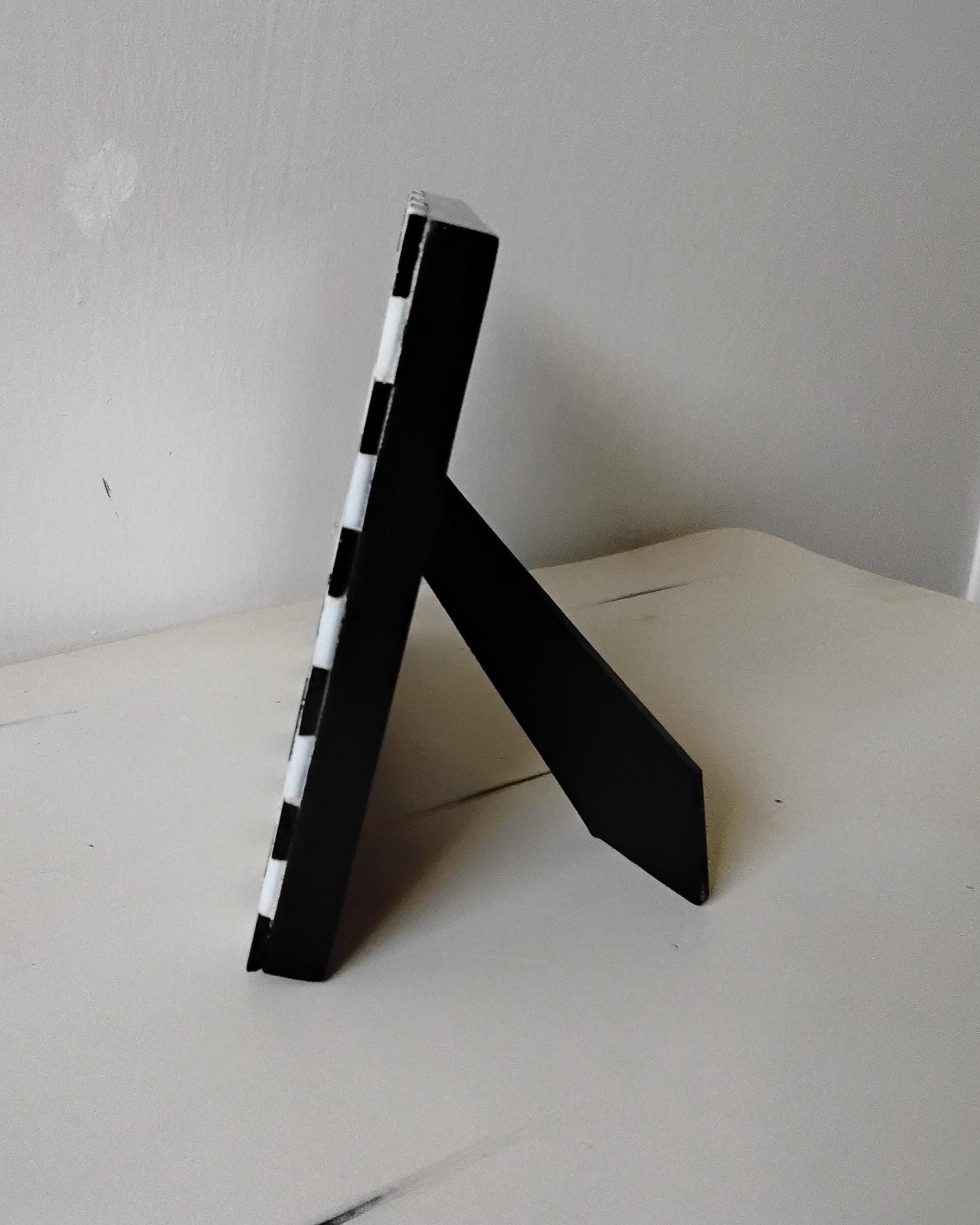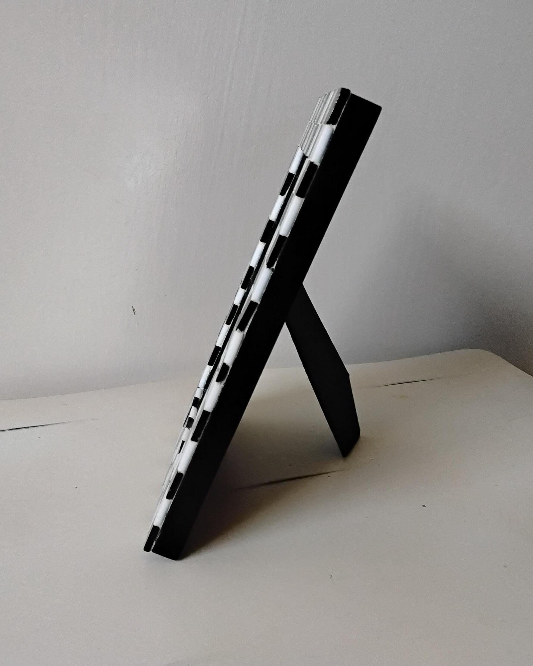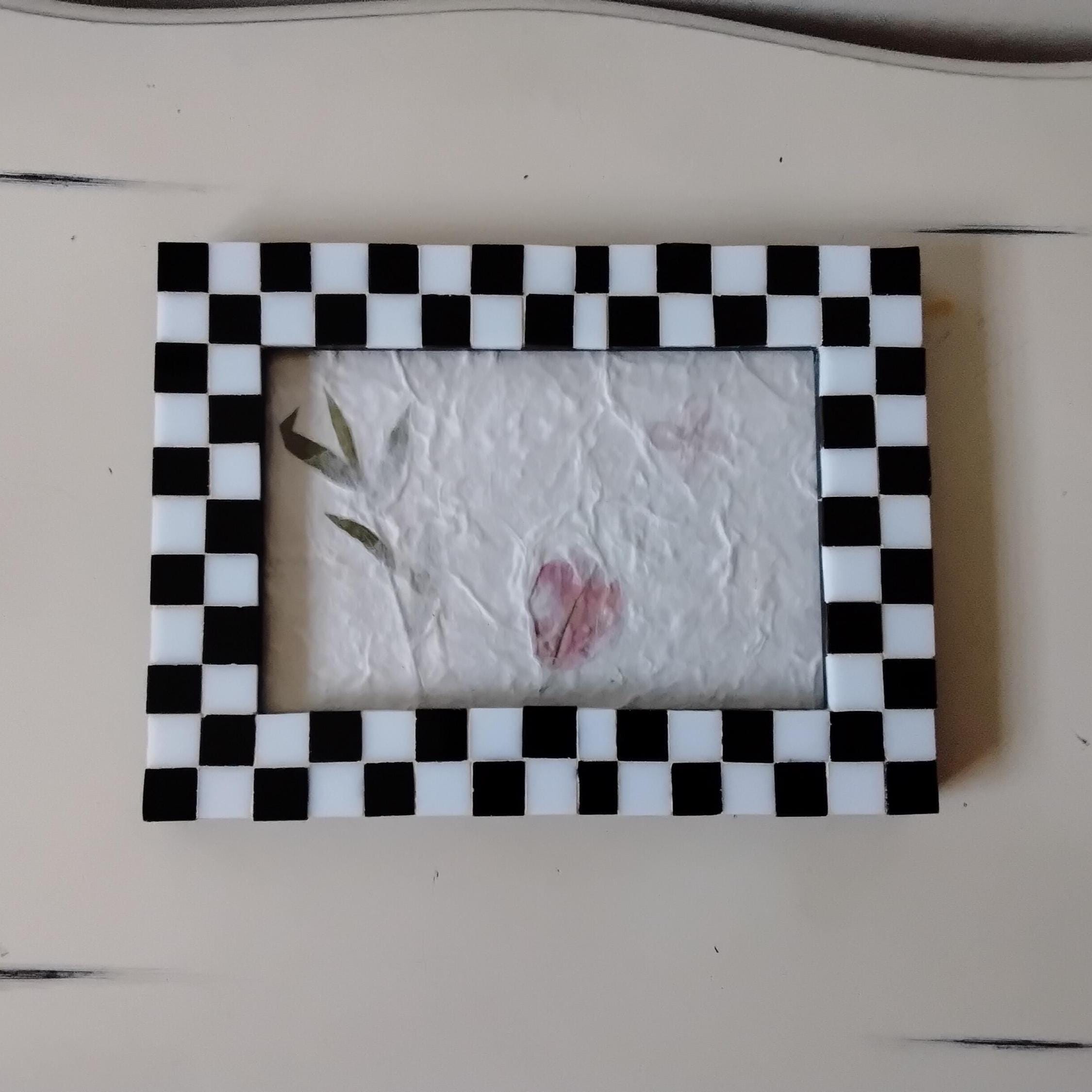Mosaic Stained Glass Black and White Checkerboard 4 x 6 Inch Hanging or Standing, Vertical or Horizontal Wood Frame with Glass