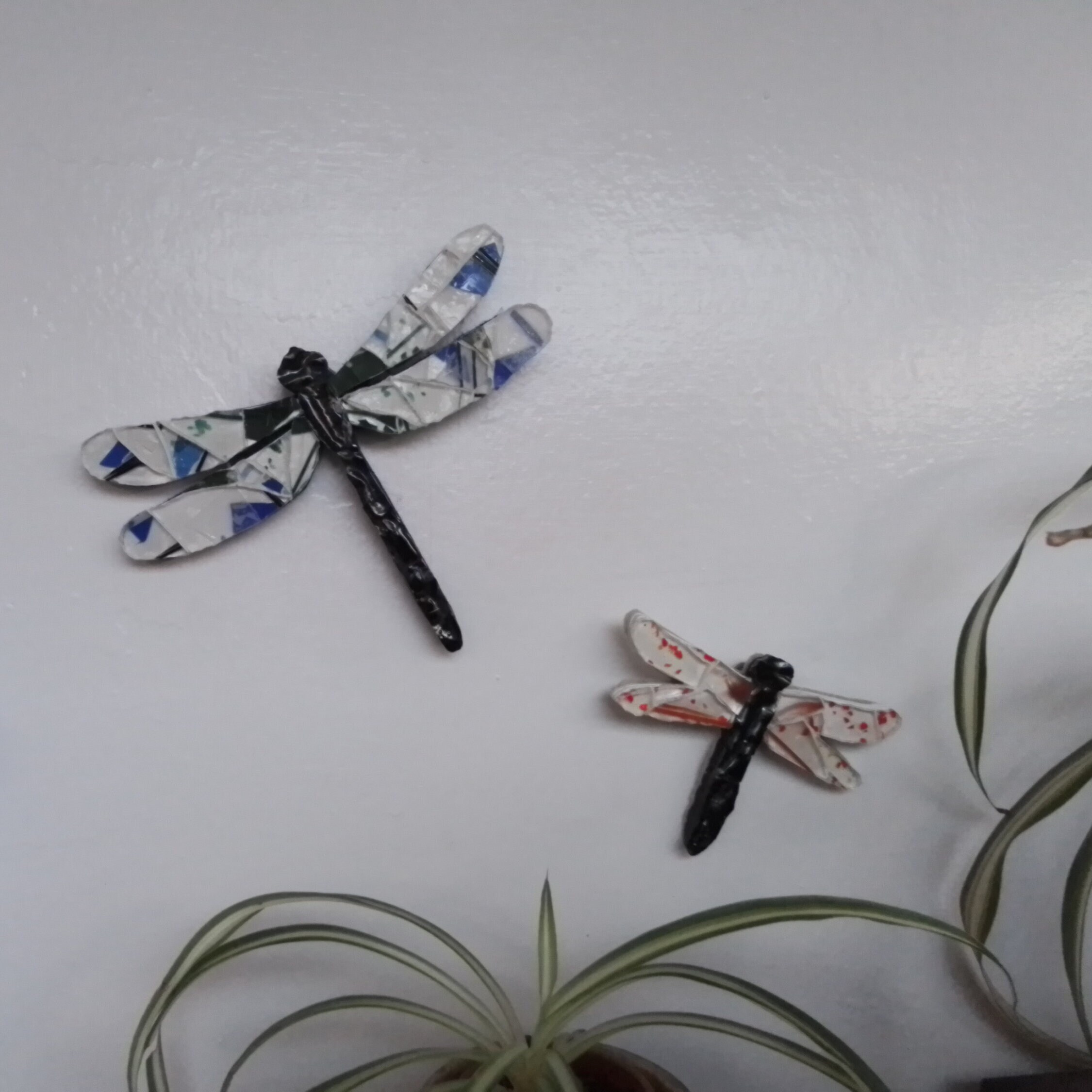 Small Mosaic Fused Stained and Art Glass Multi Position Hanging or Standing Dragonfly