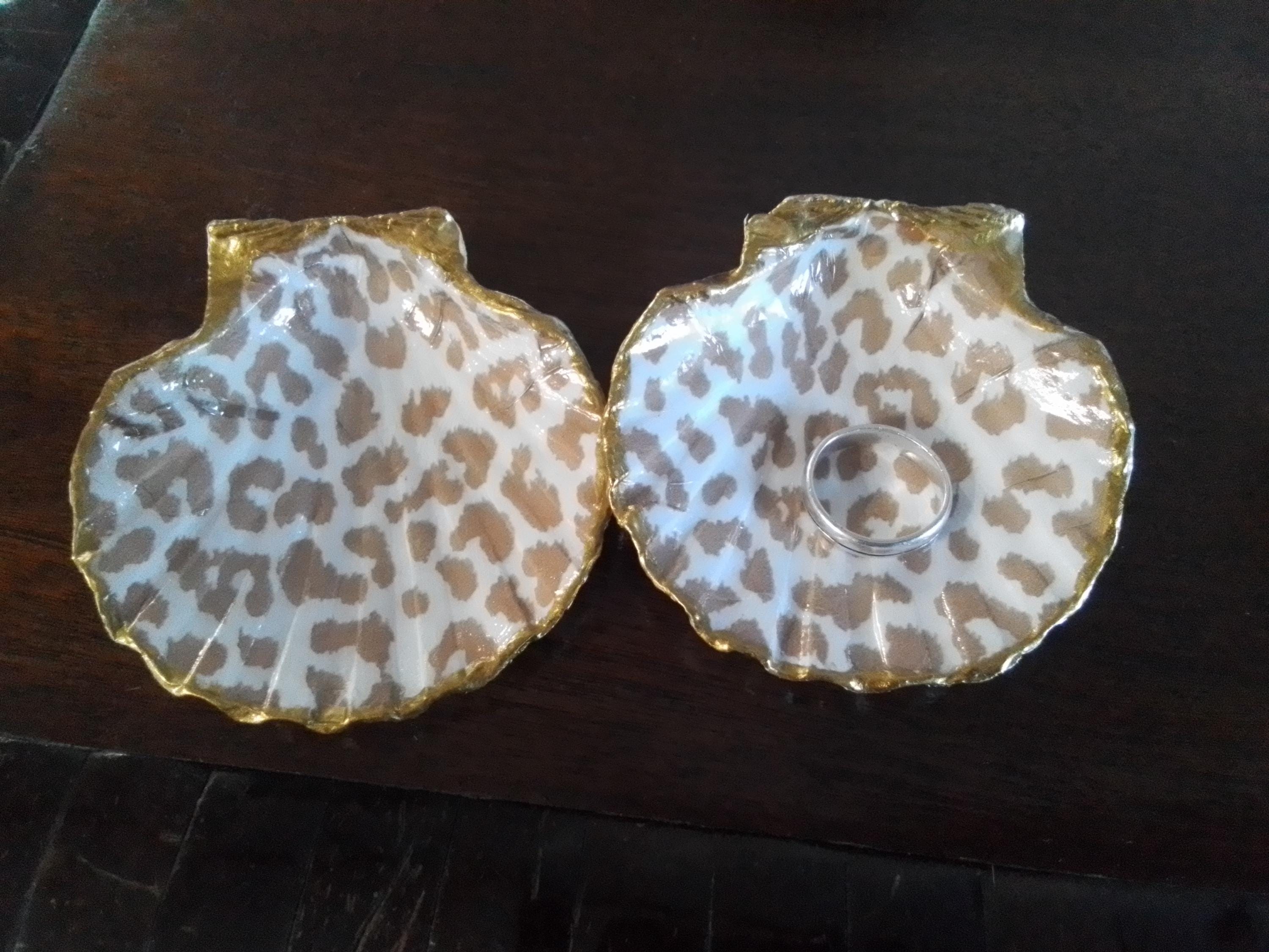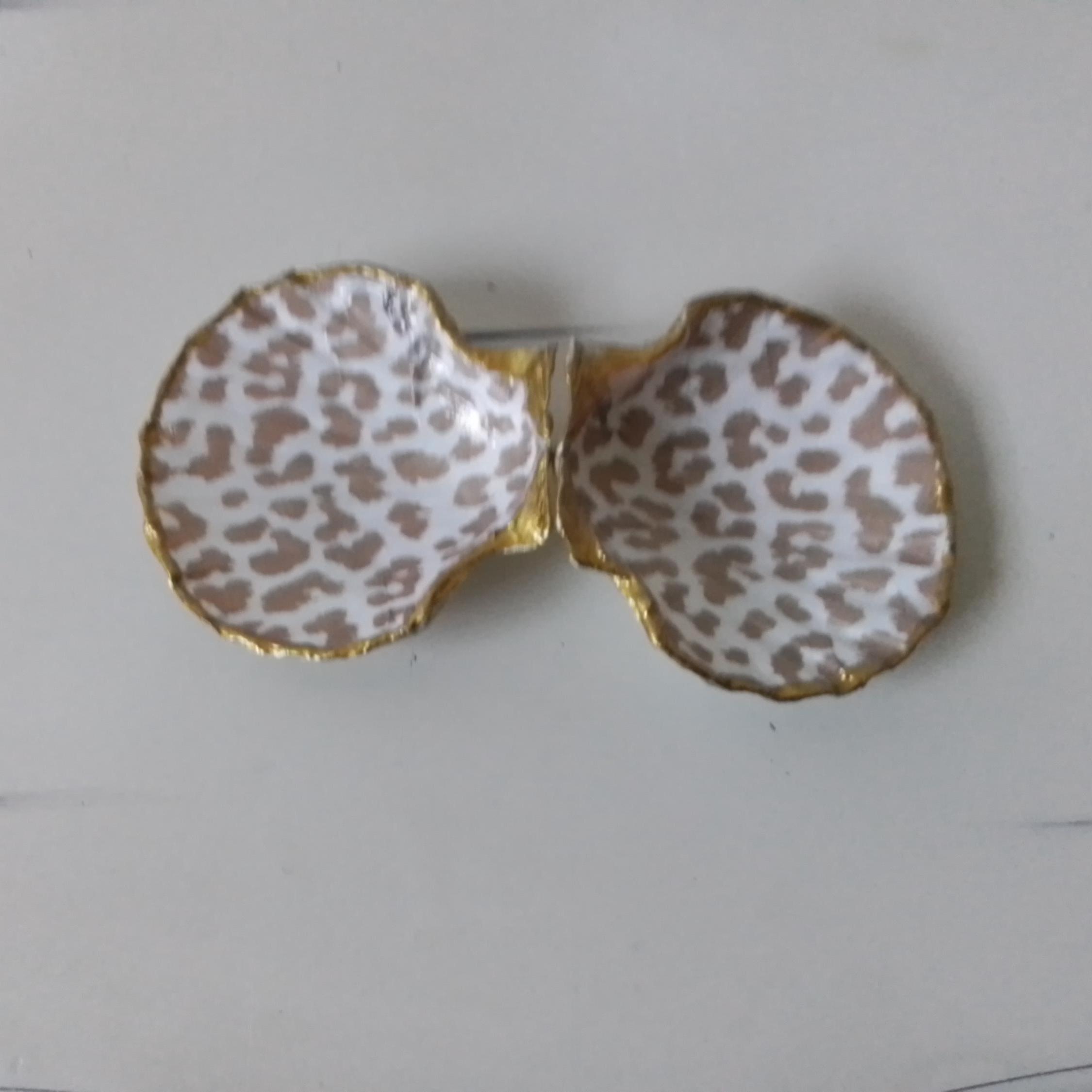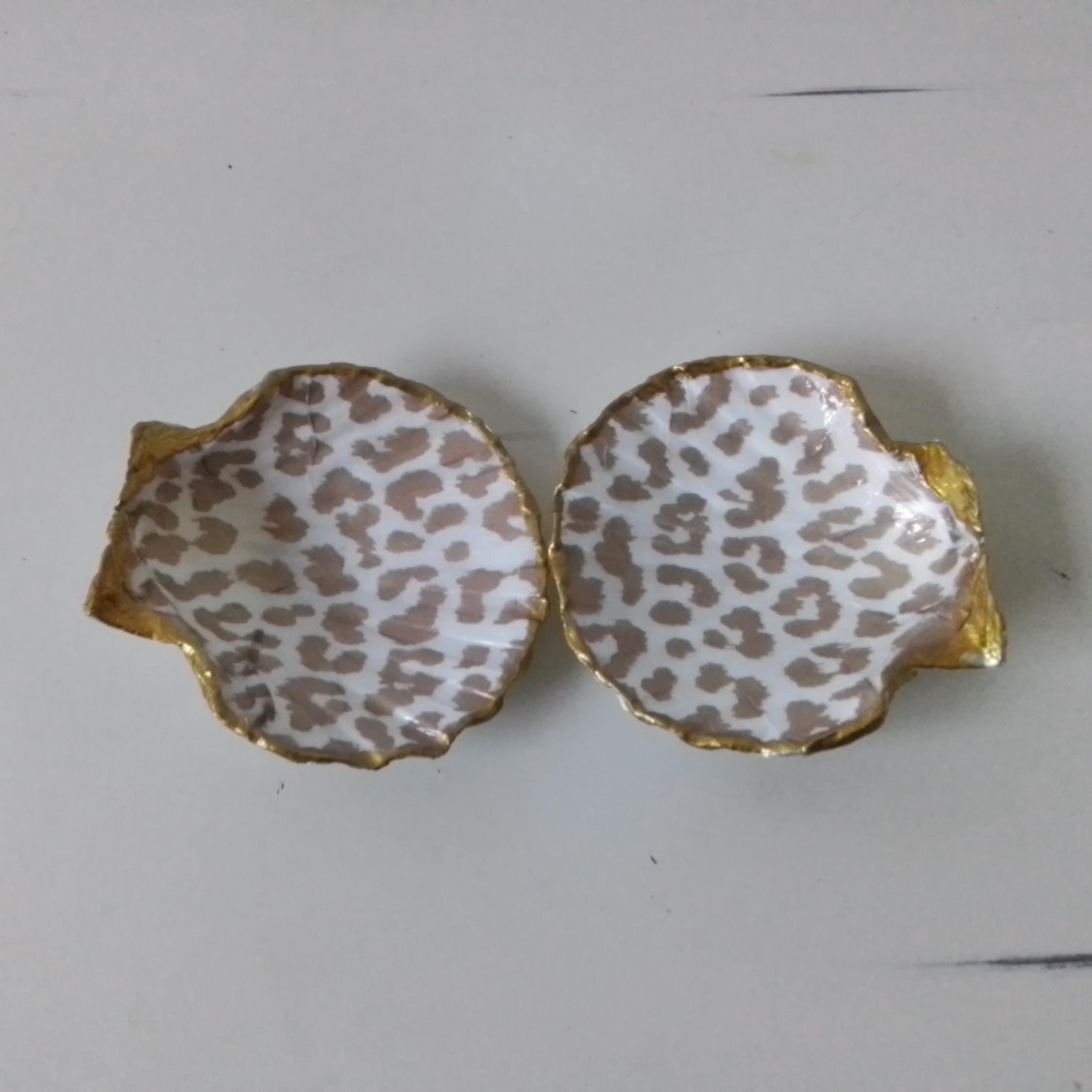 Two Light Leopard Laquered and Gold Leaf Matching Ring, Earring Jewelry Shells