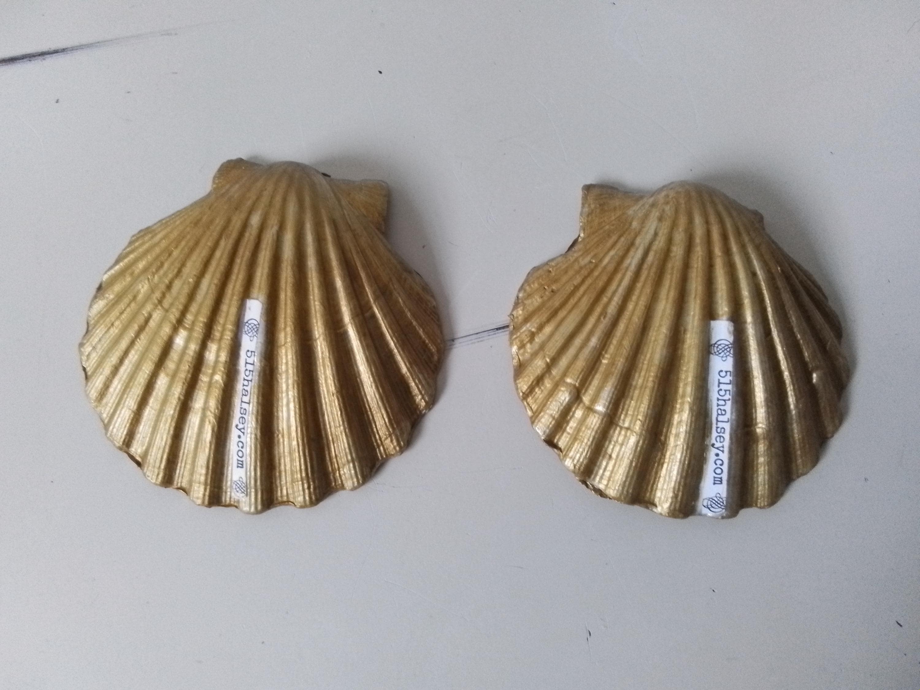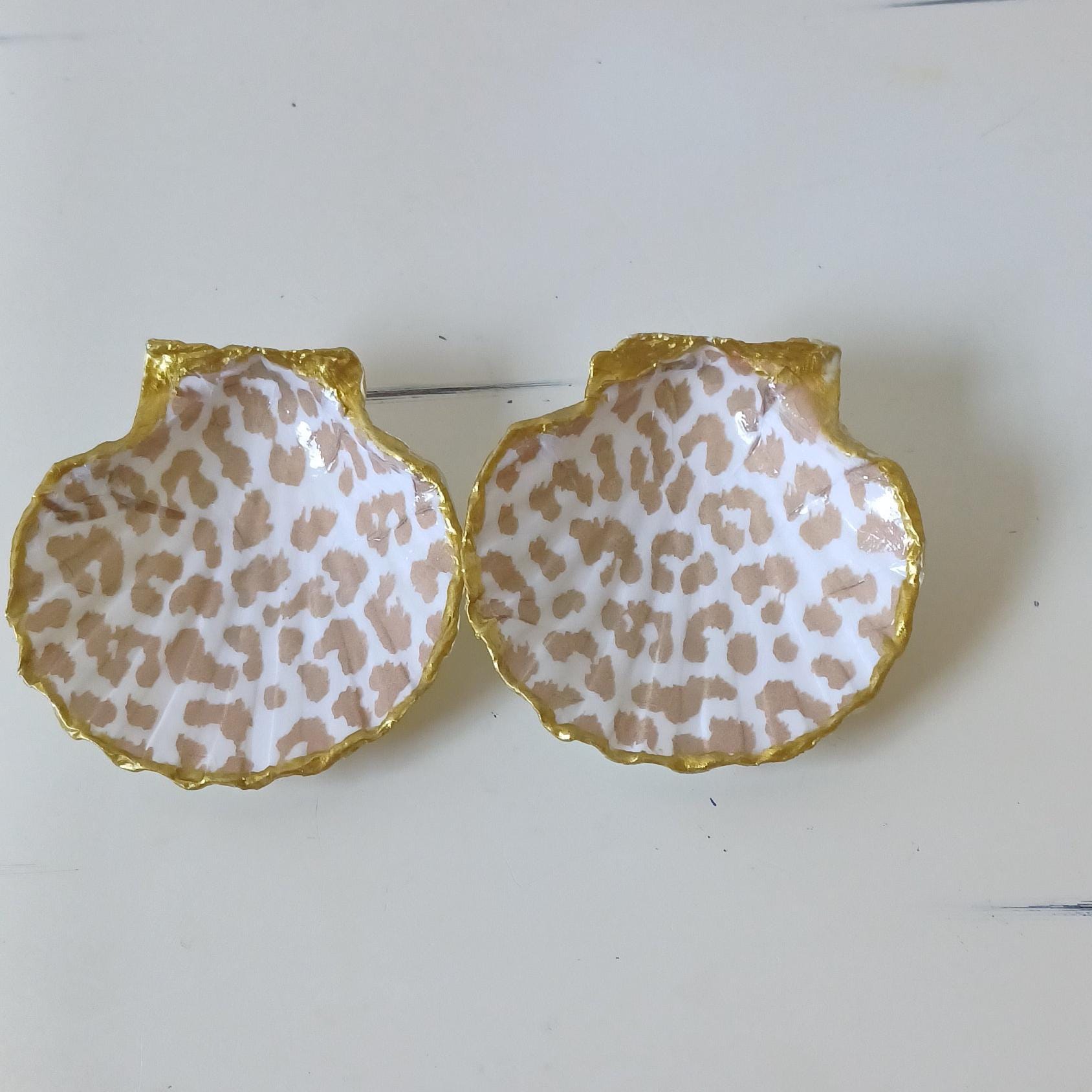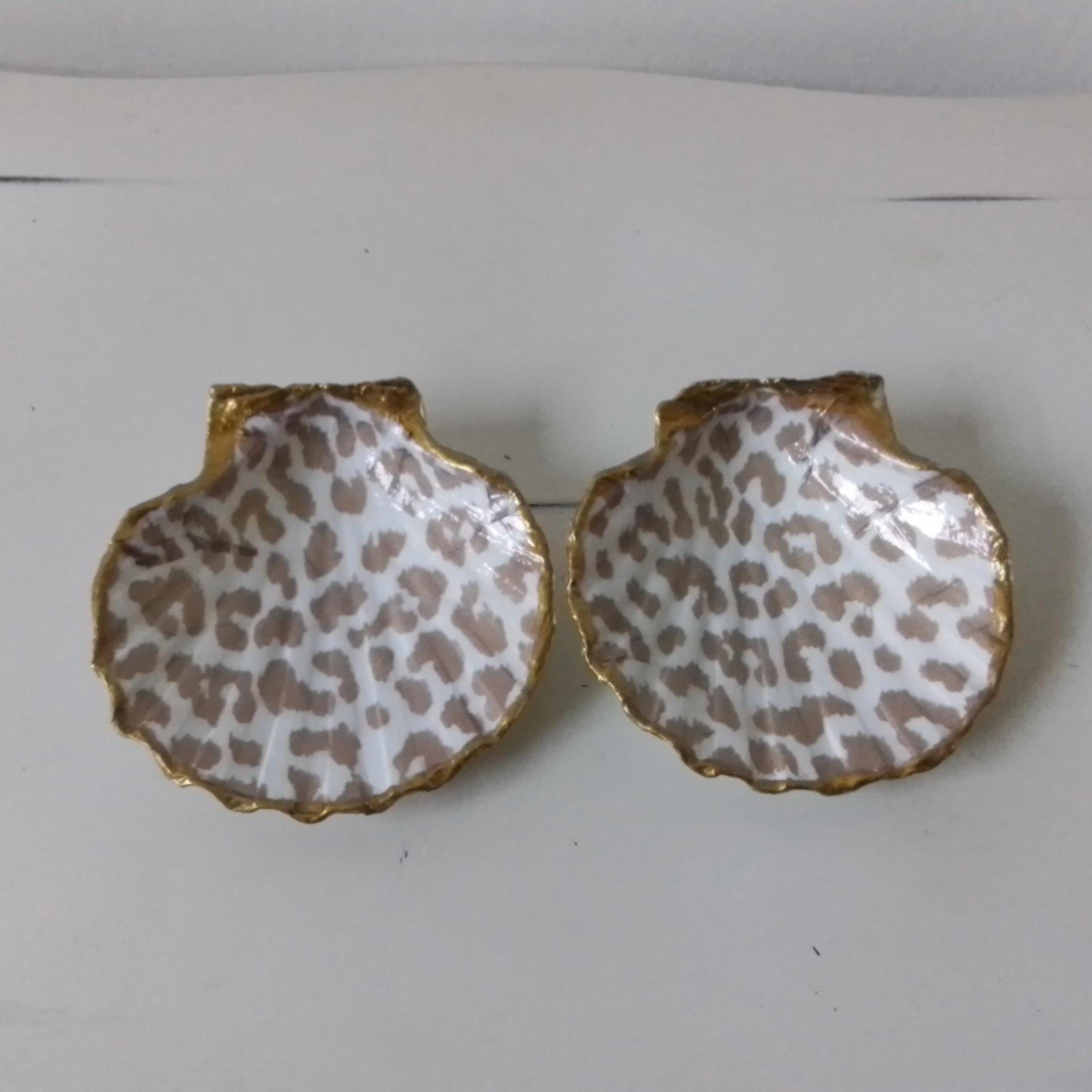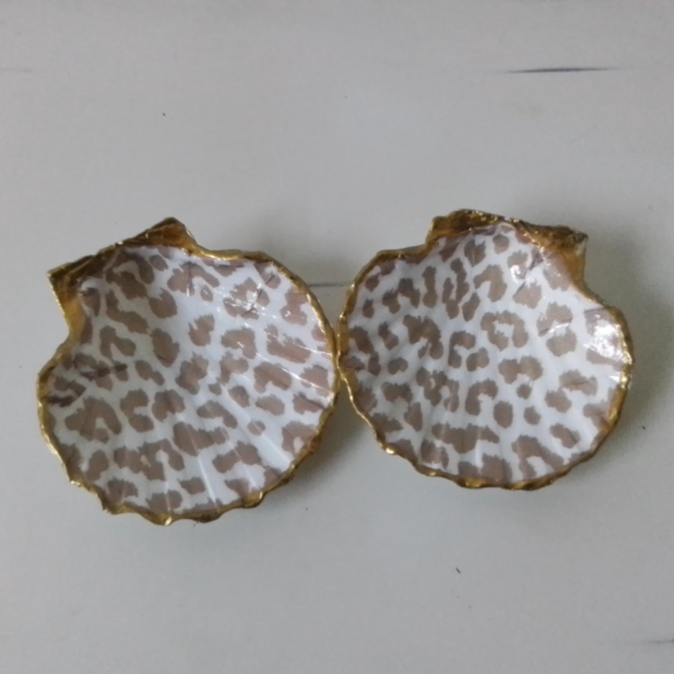 Two Light Leopard Laquered and Gold Leaf Matching Ring, Earring Jewelry Shells