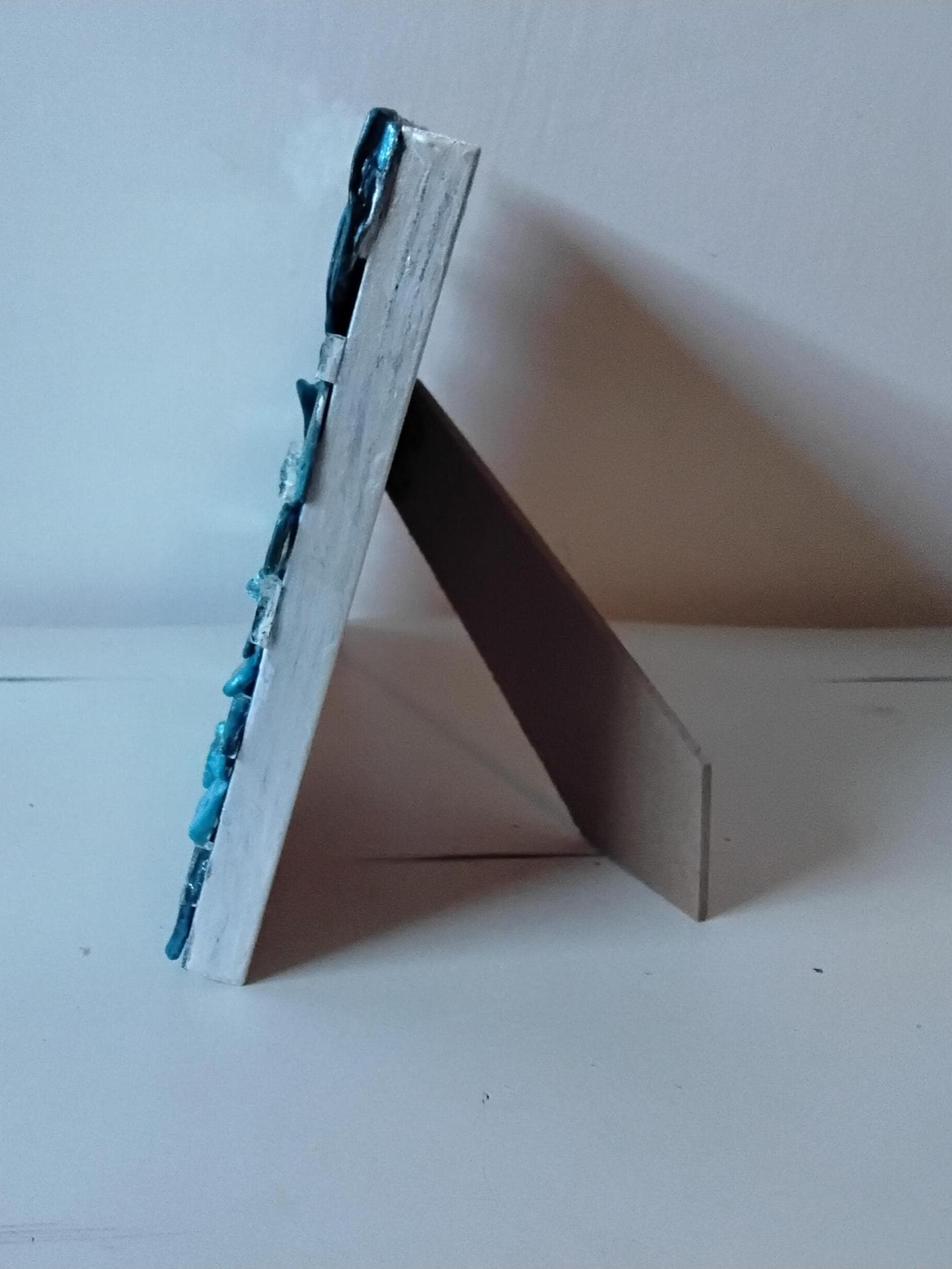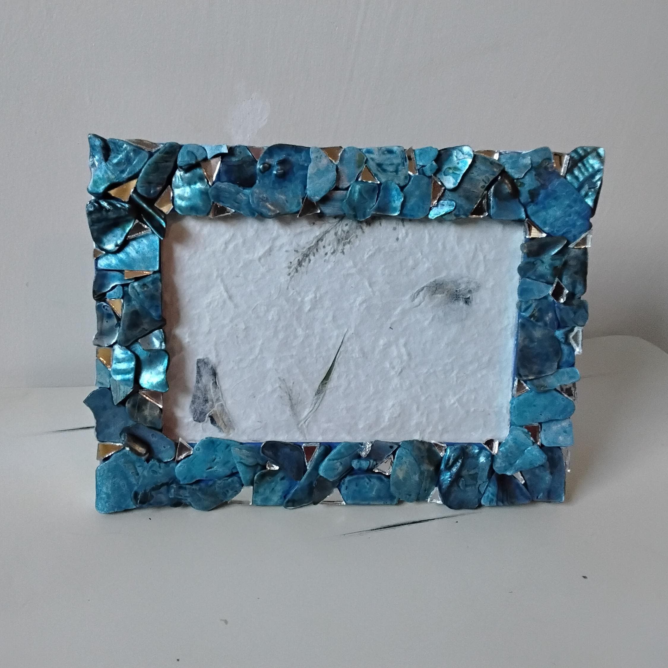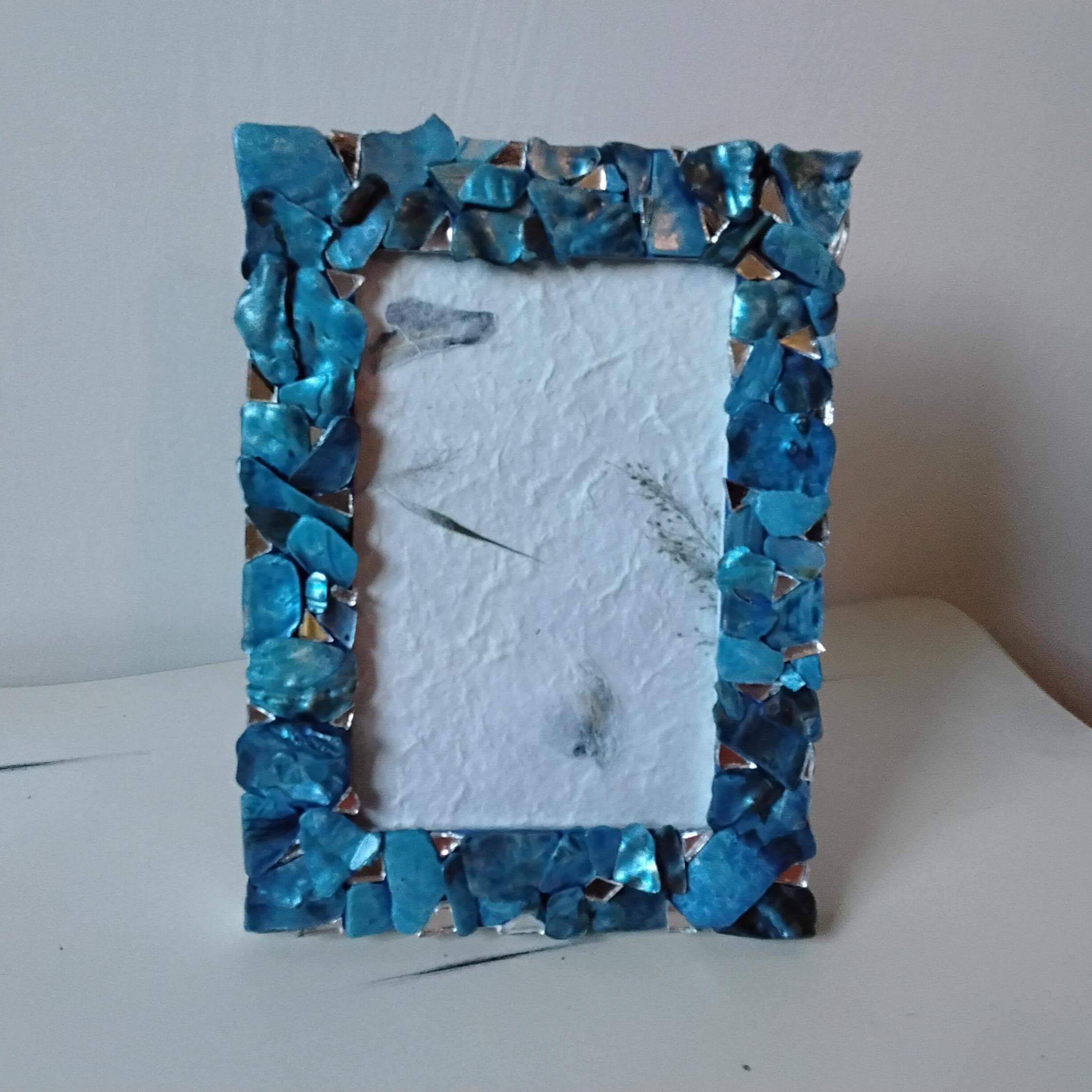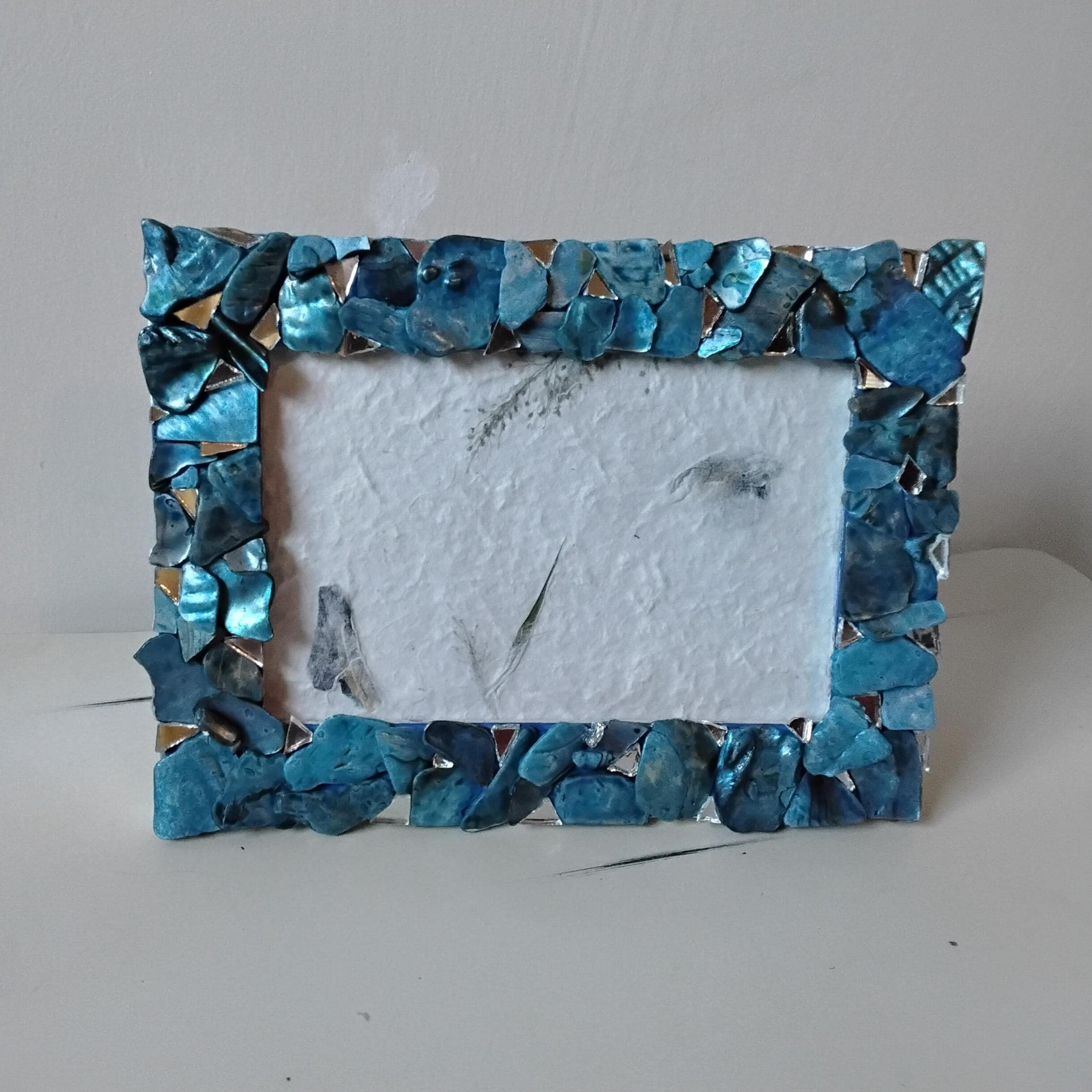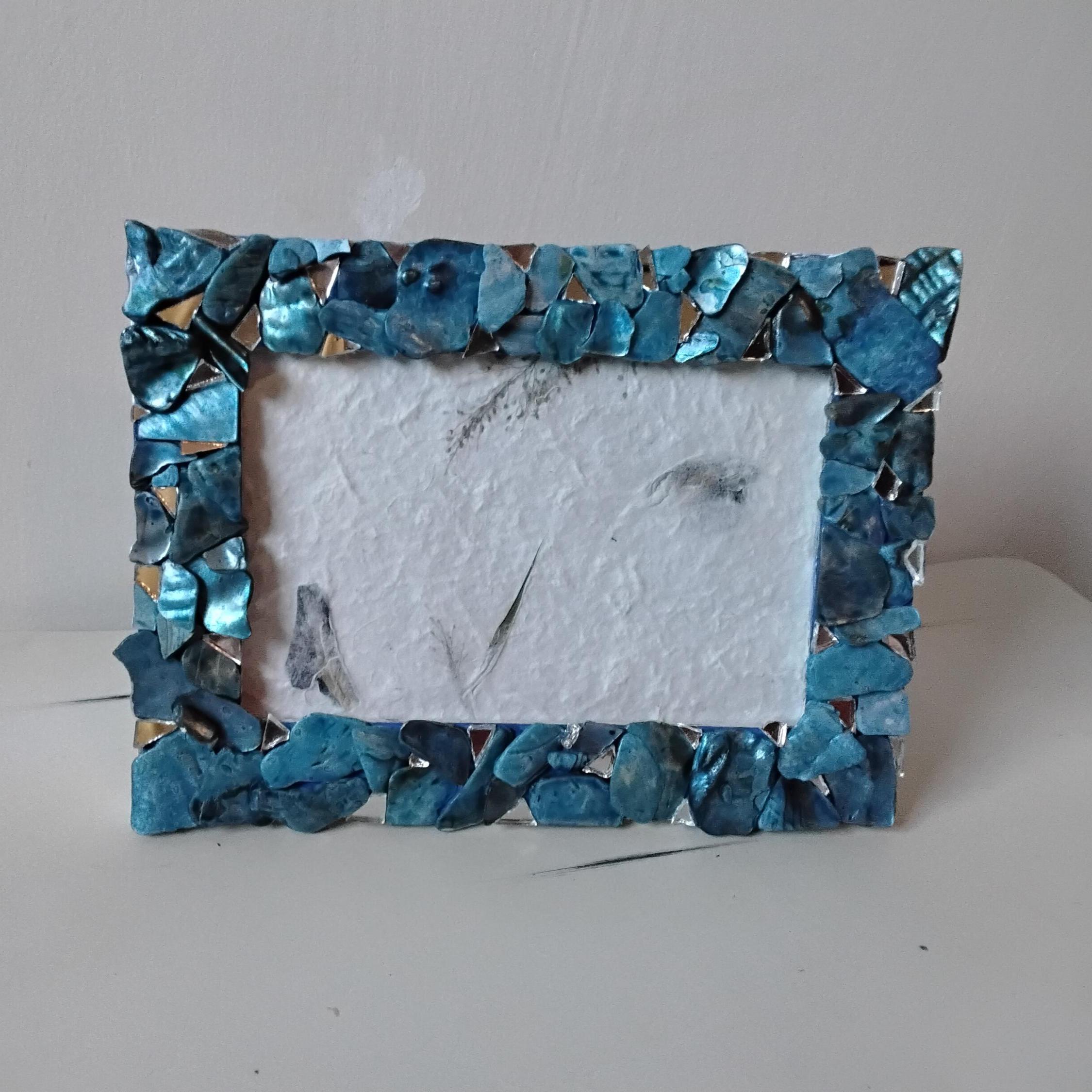 Stained Blue Abalone Shell and Mirror Vertical or Horizontal, Hanging or Tabletop, 4 x 6-inch Frame with Glass