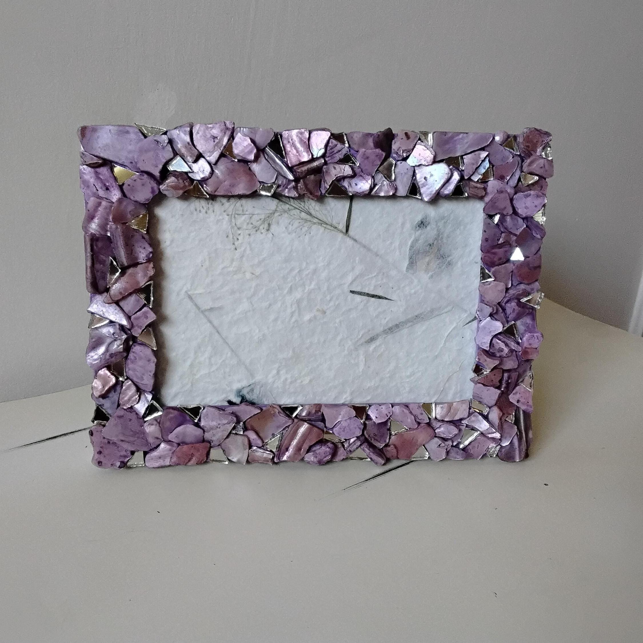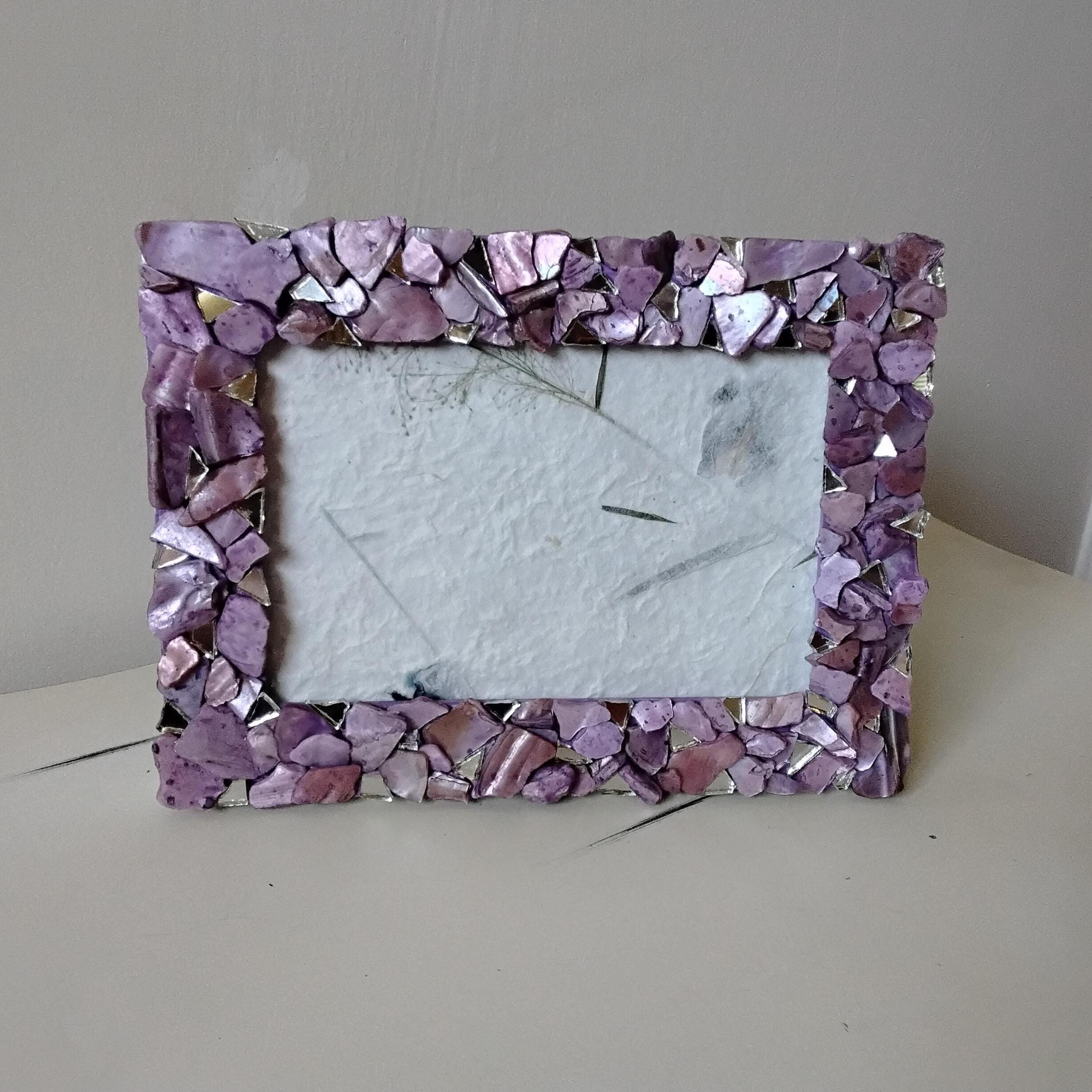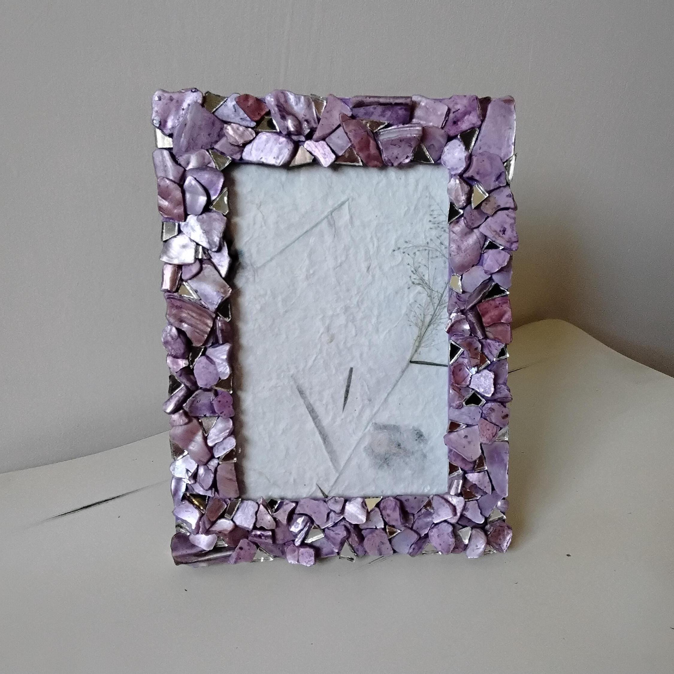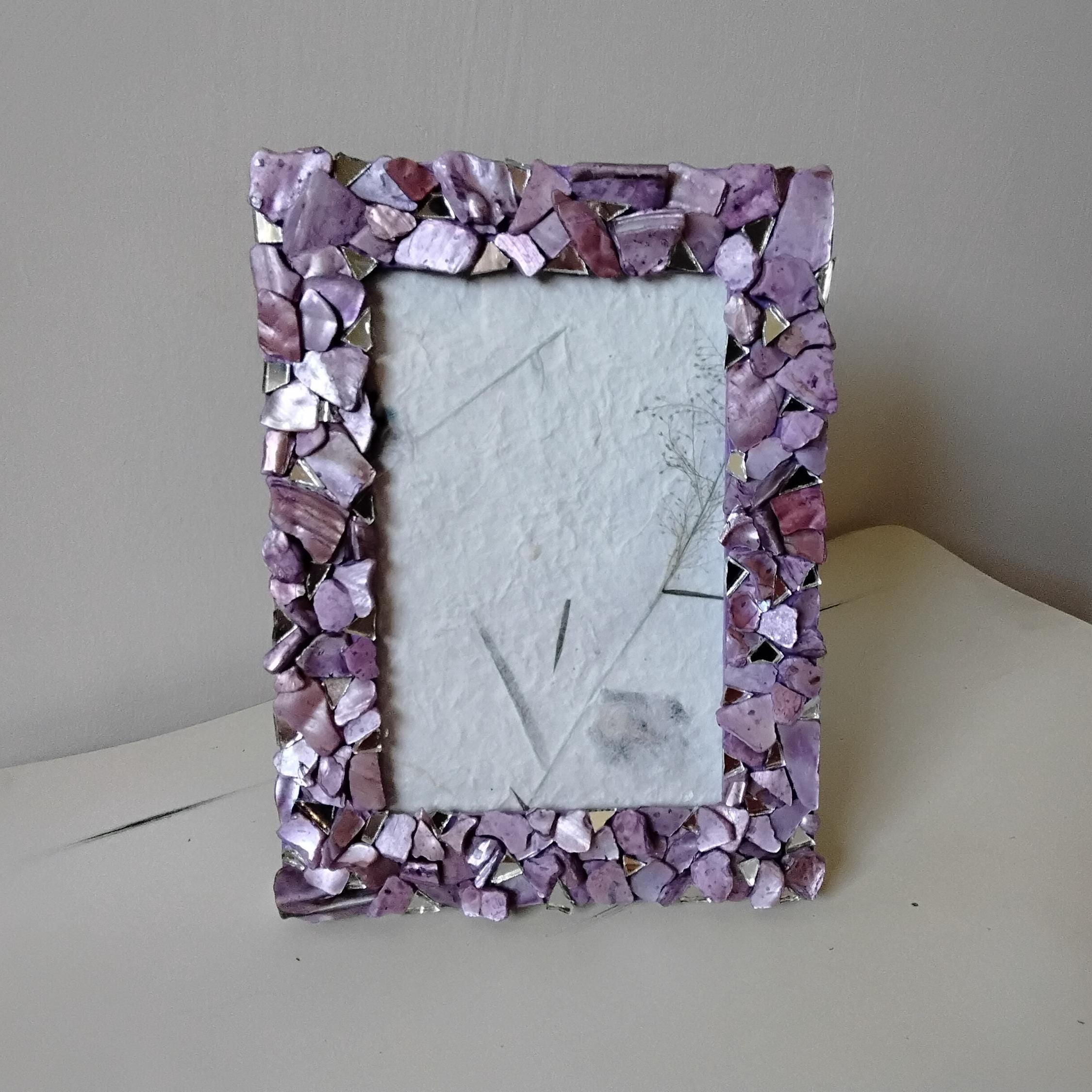 Purple Lavender-Stained Abalone Shell and Mirror Vertical or Horizontal, Hanging or Tabletop, 4 x 6-inch Frame with Glass