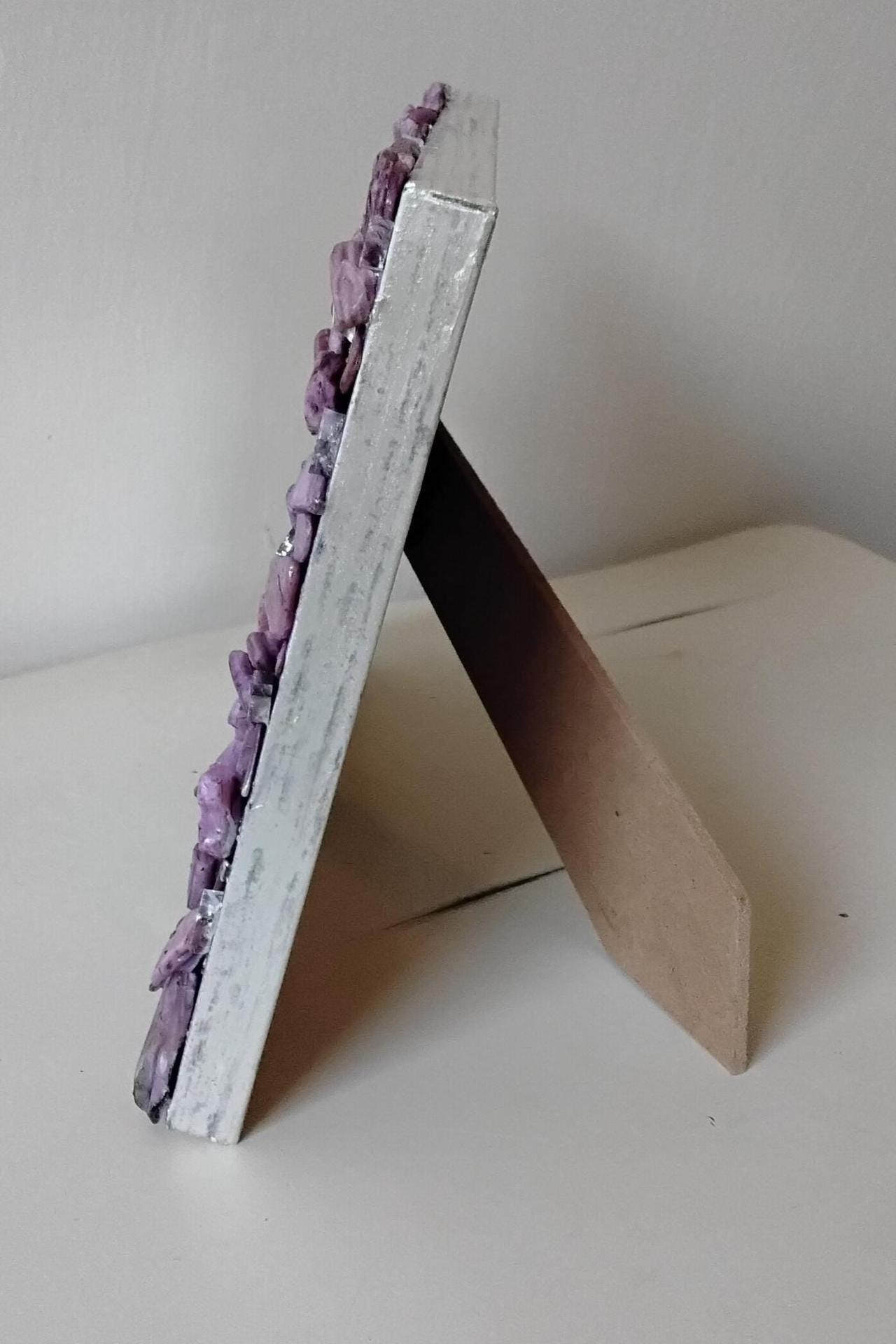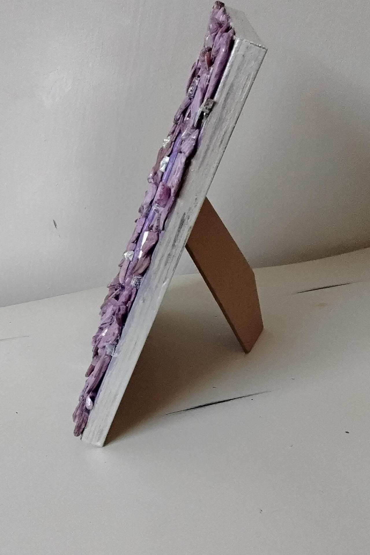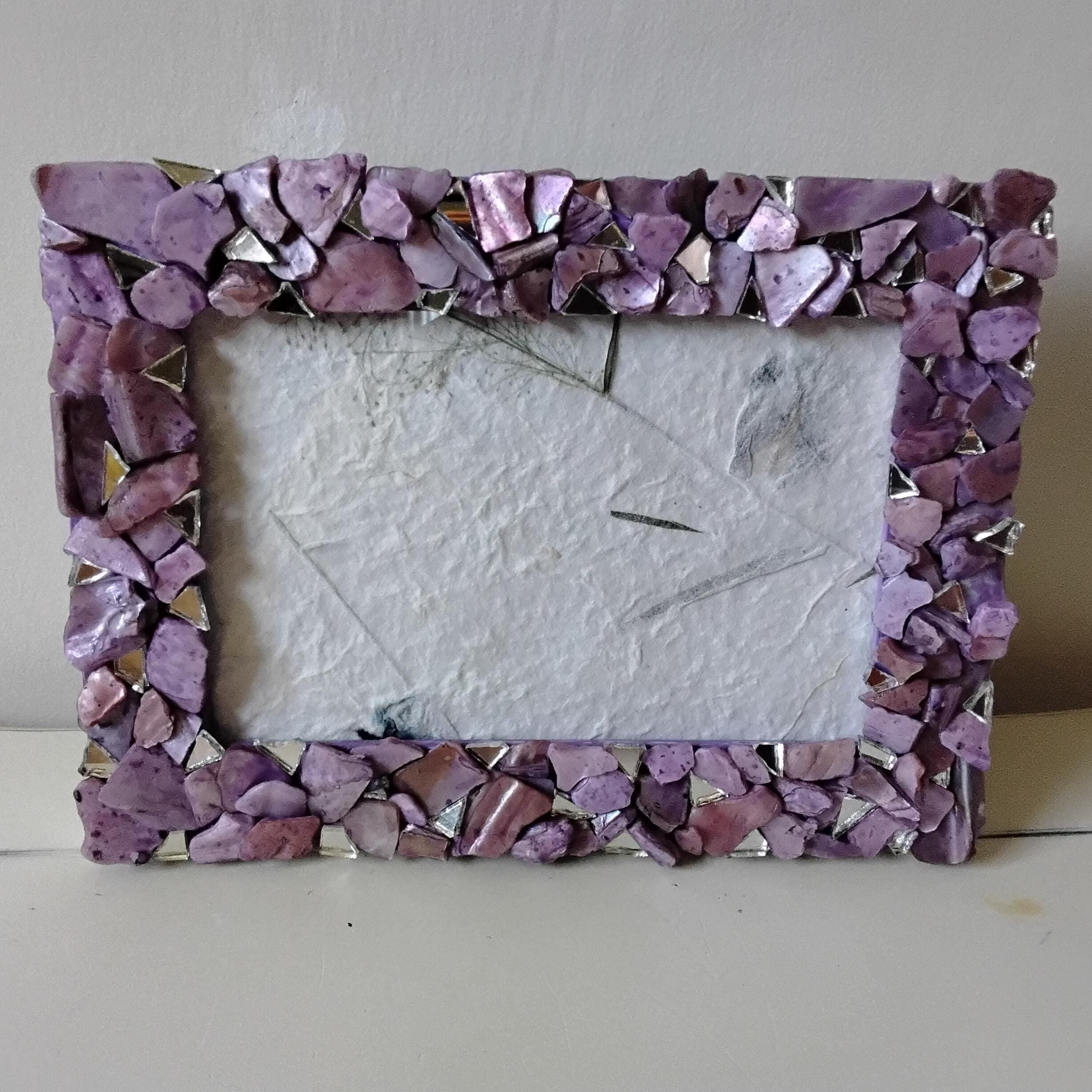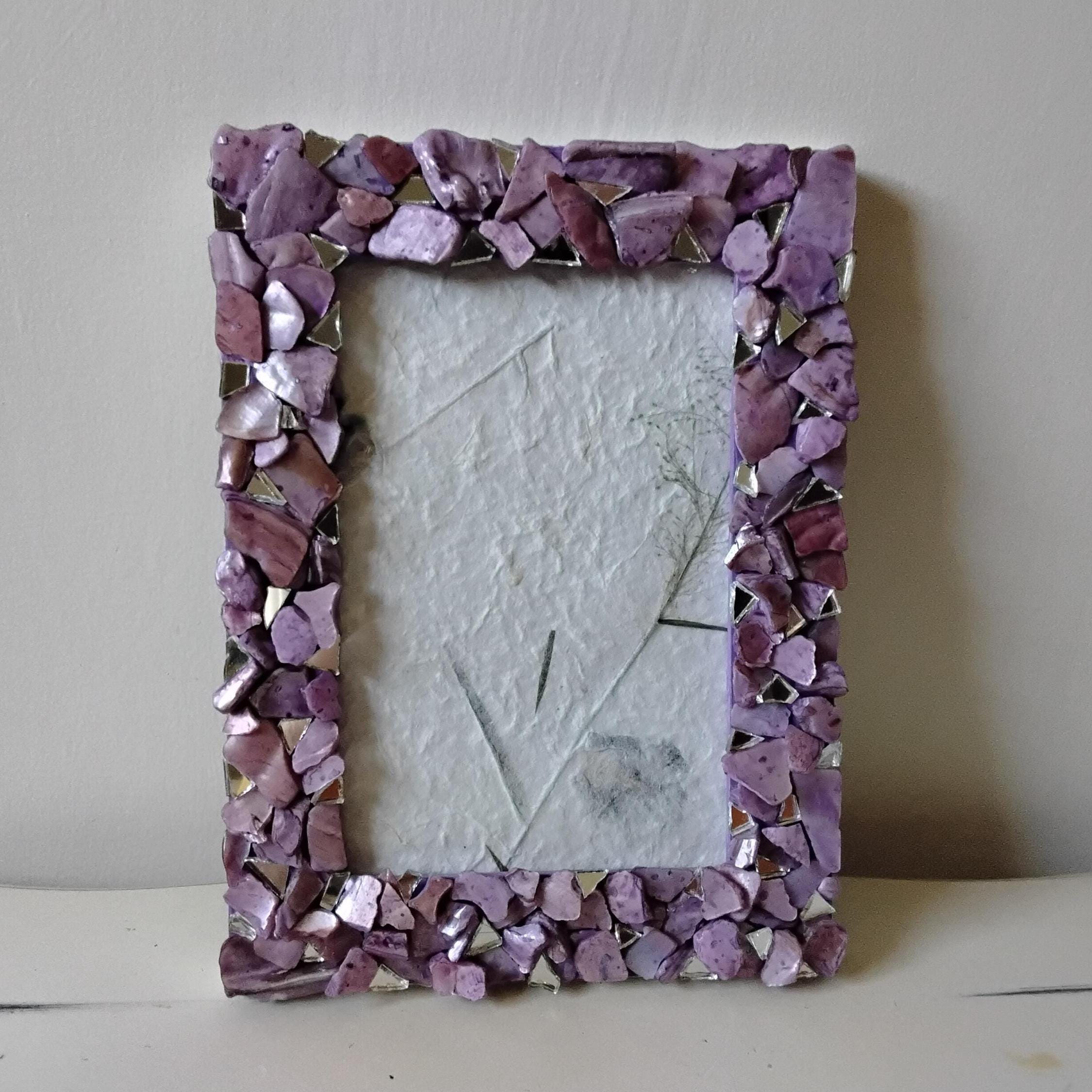 Purple Lavender-Stained Abalone Shell and Mirror Vertical or Horizontal, Hanging or Tabletop, 4 x 6-inch Frame with Glass
