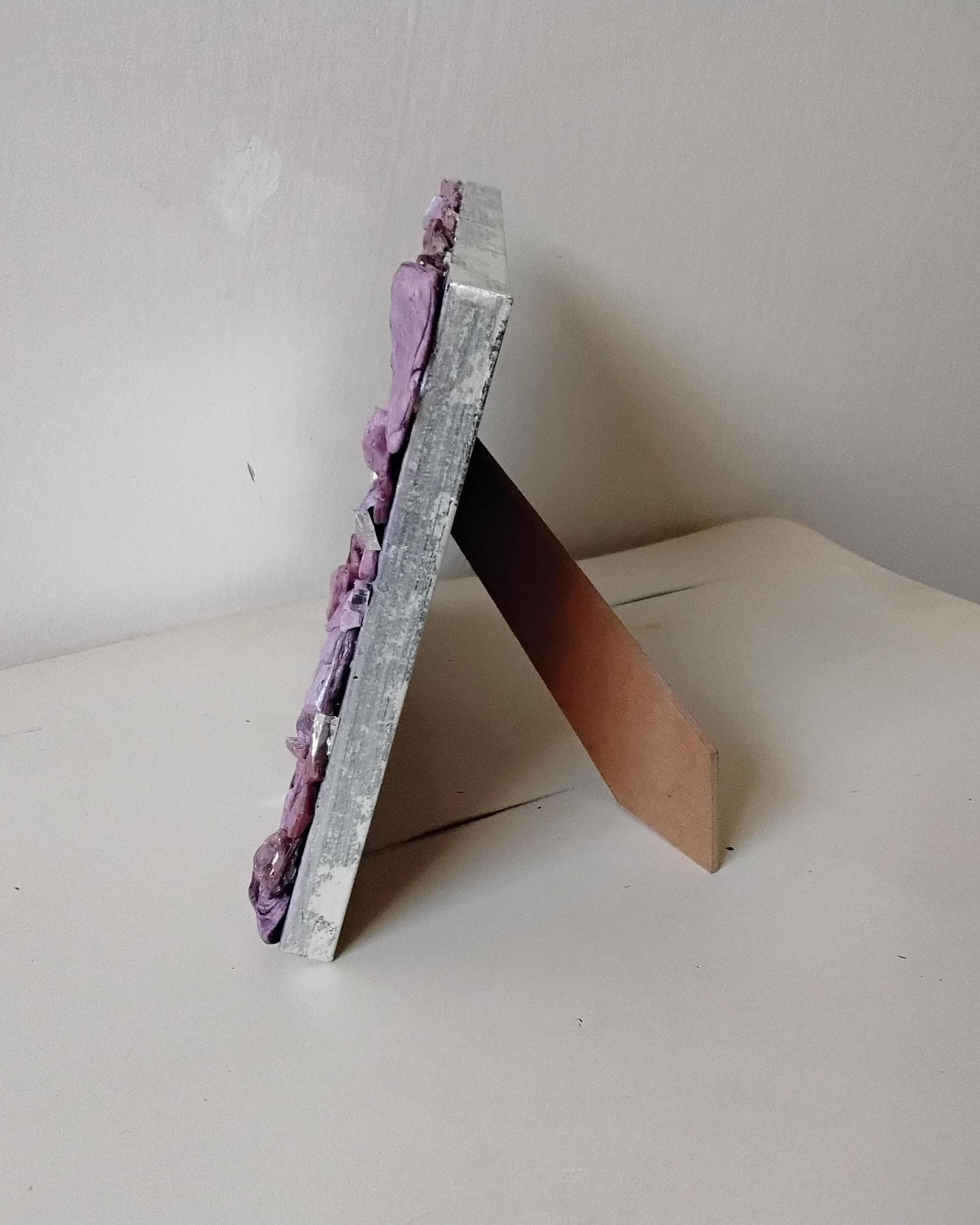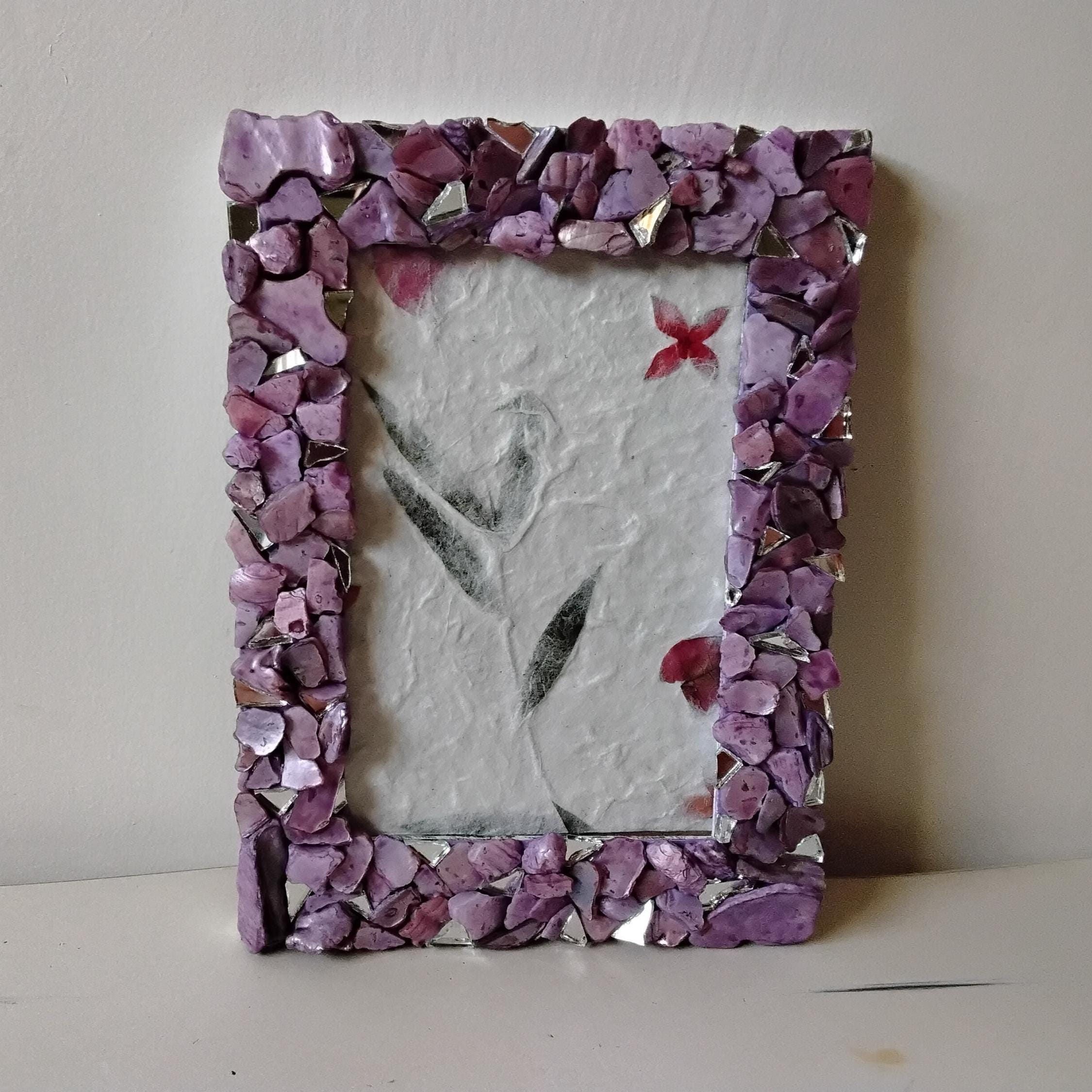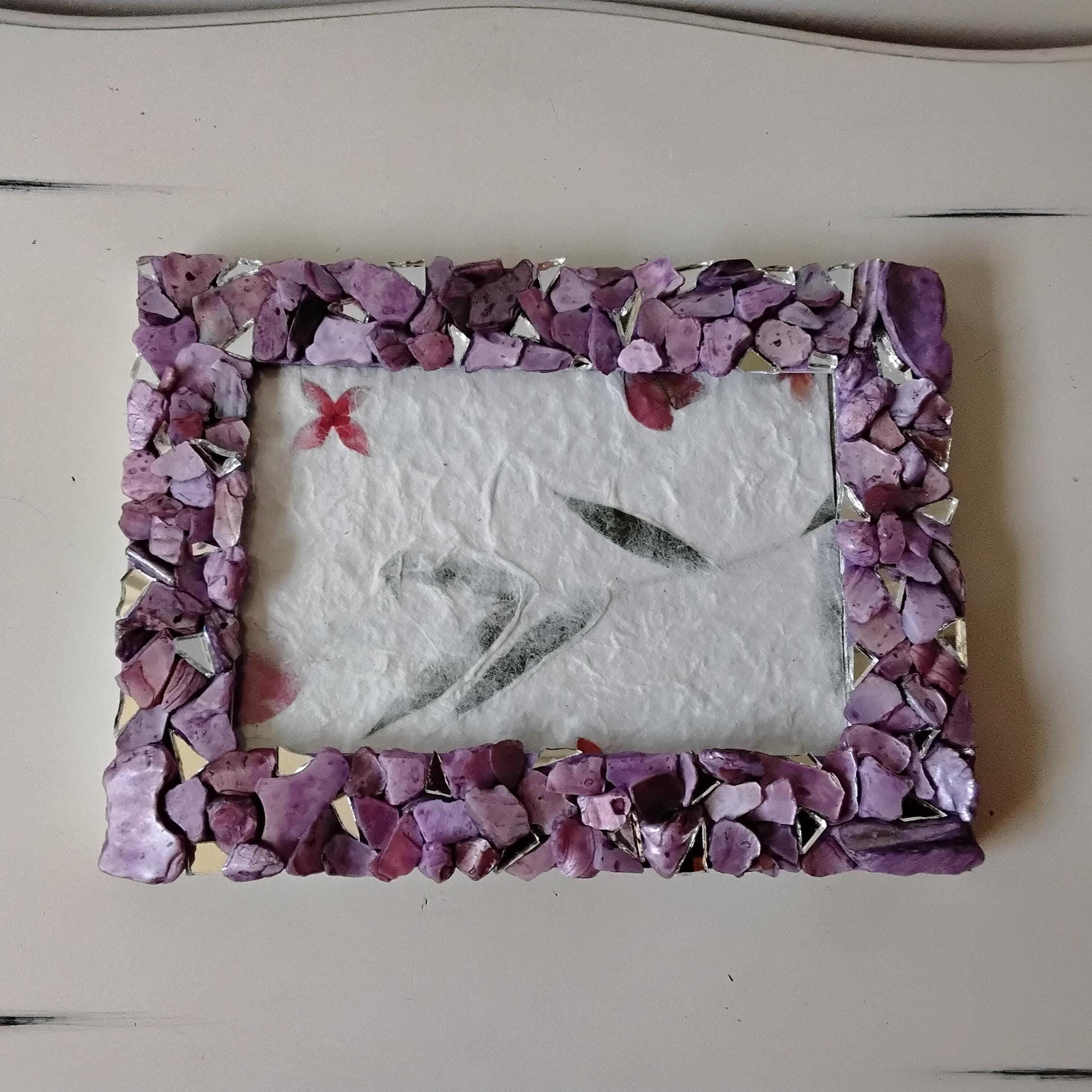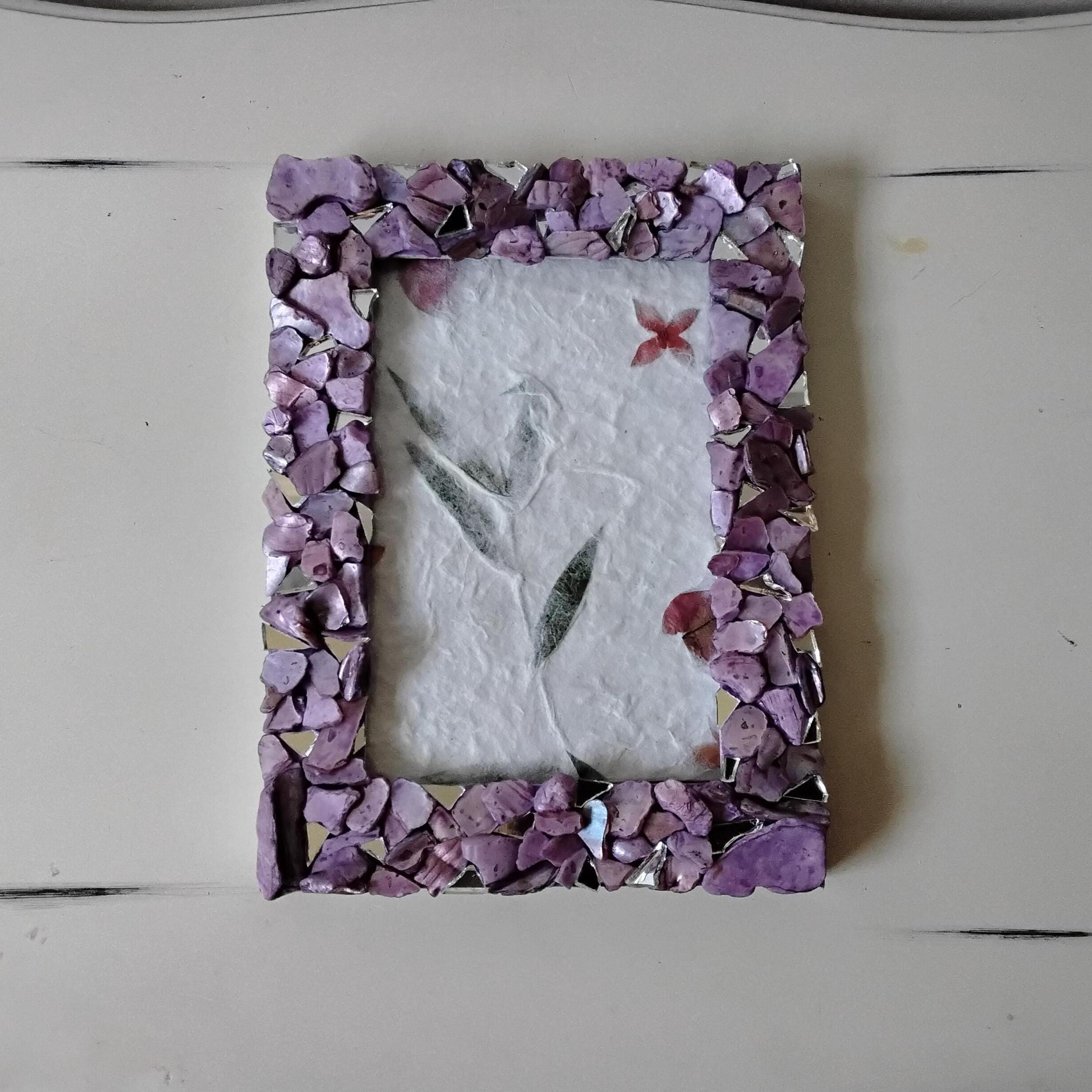 Purple Lavender-Stained Abalone Shell and Mirror Vertical or Horizontal, Hanging or Tabletop, 4 x 6-inch Wood Frame with Glass