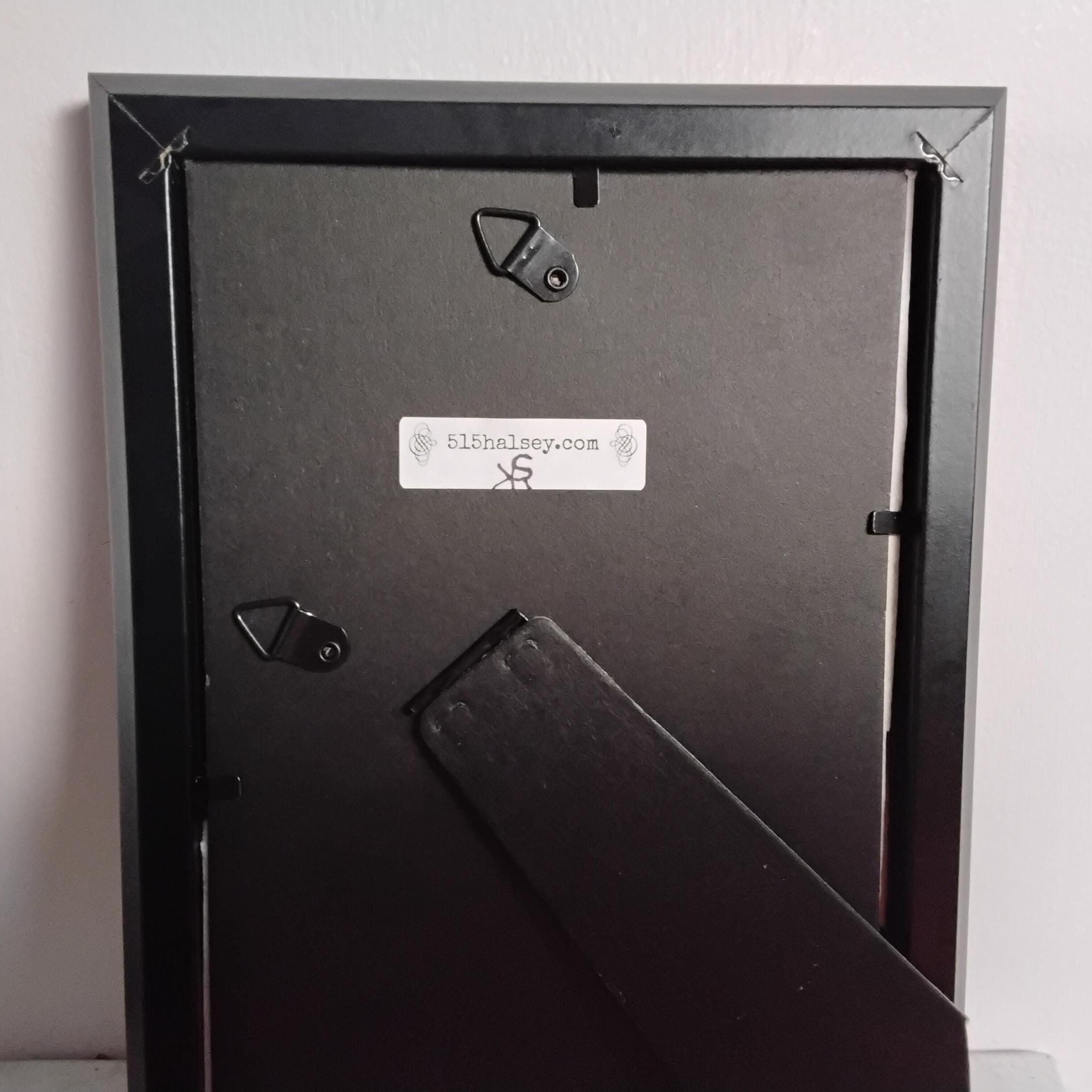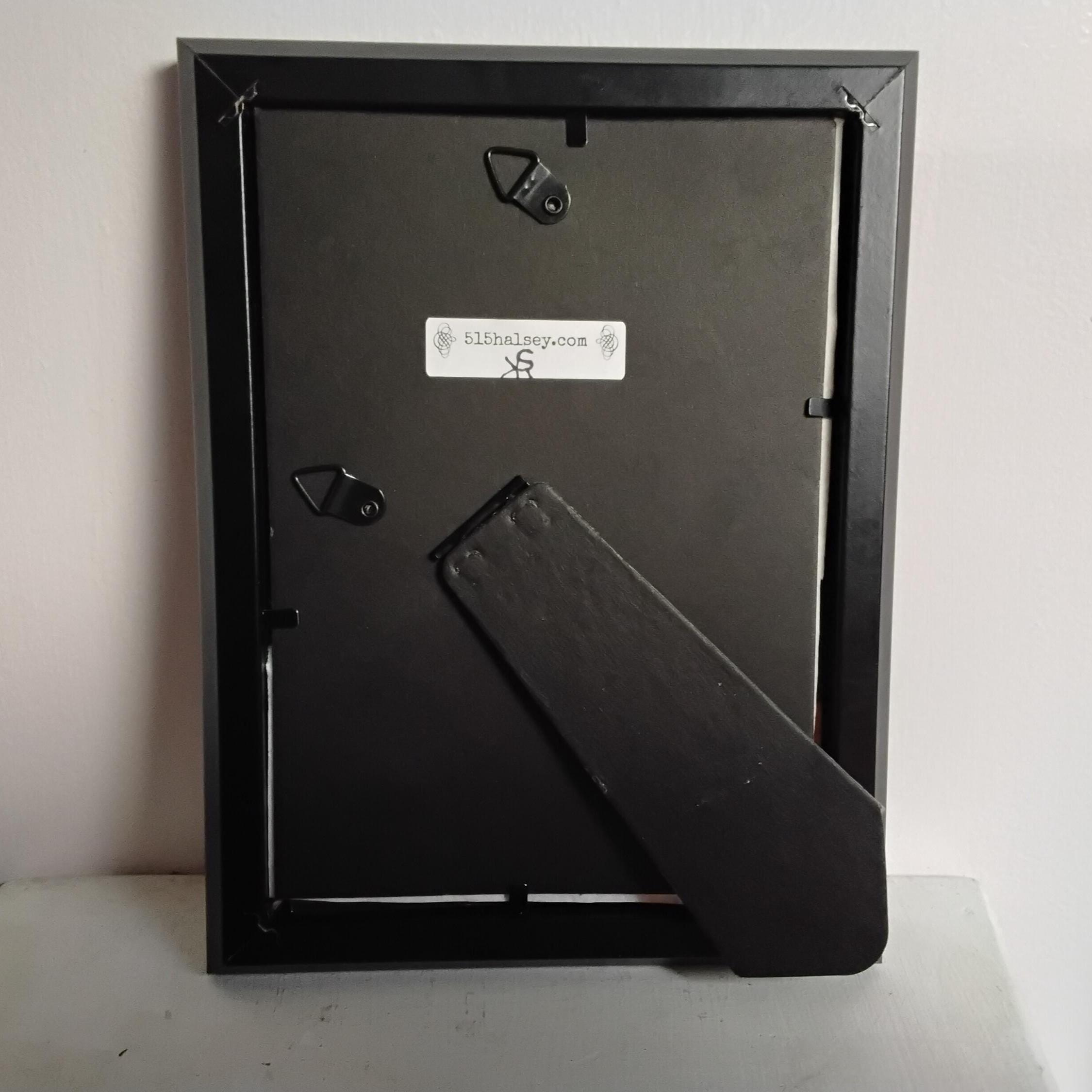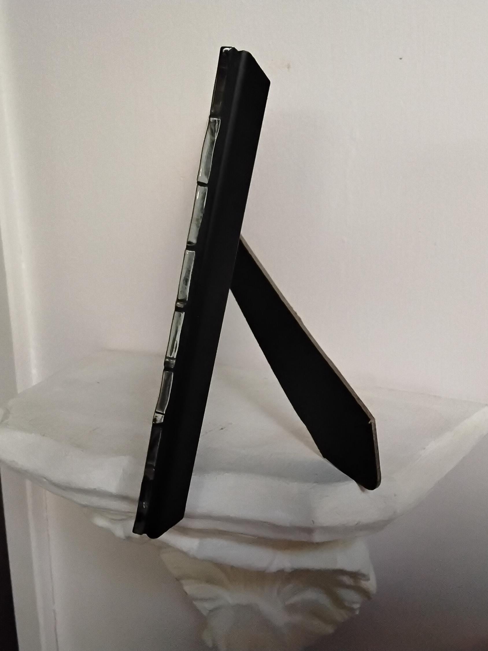 The back has a stand attached for horizontal or vertical tabletop/standing display