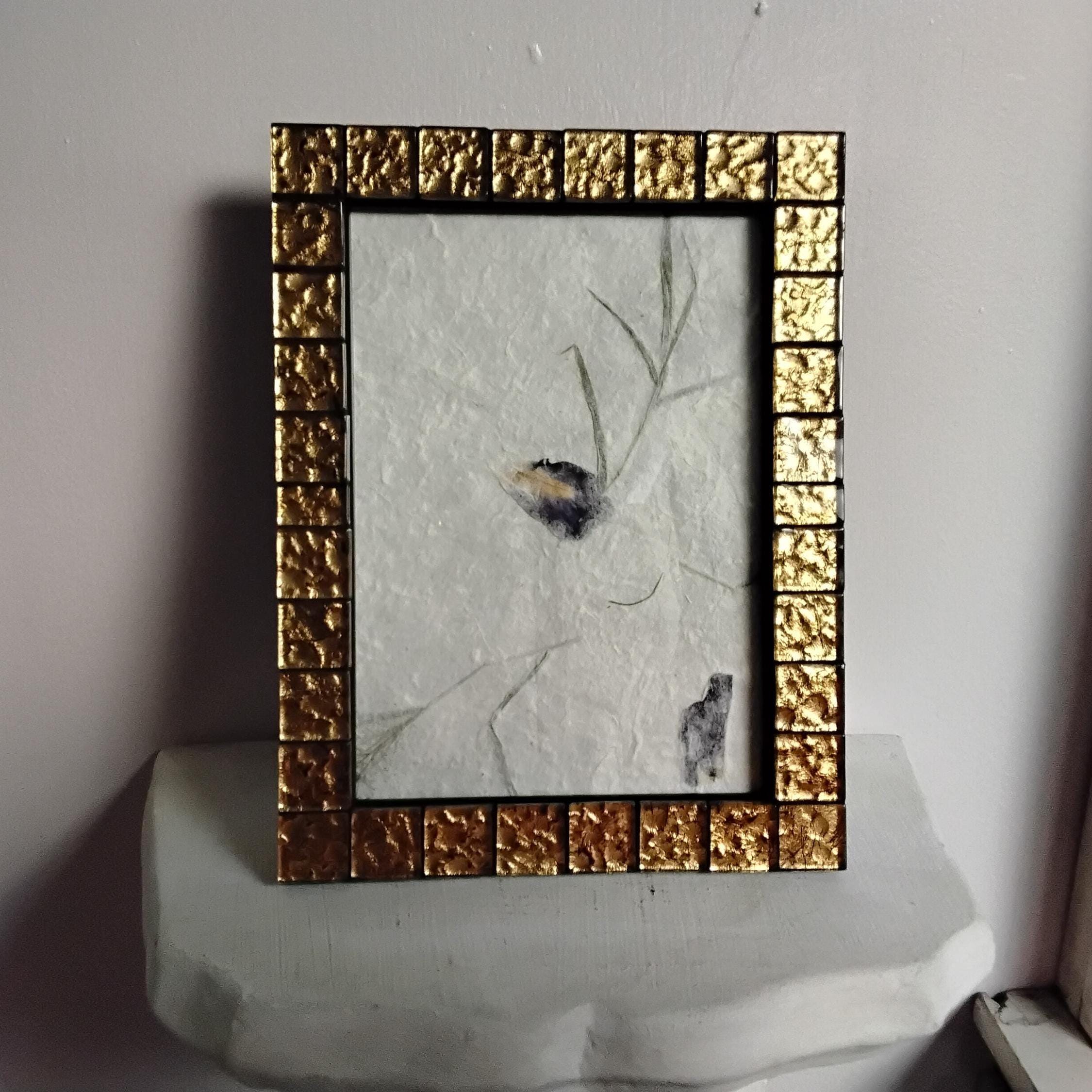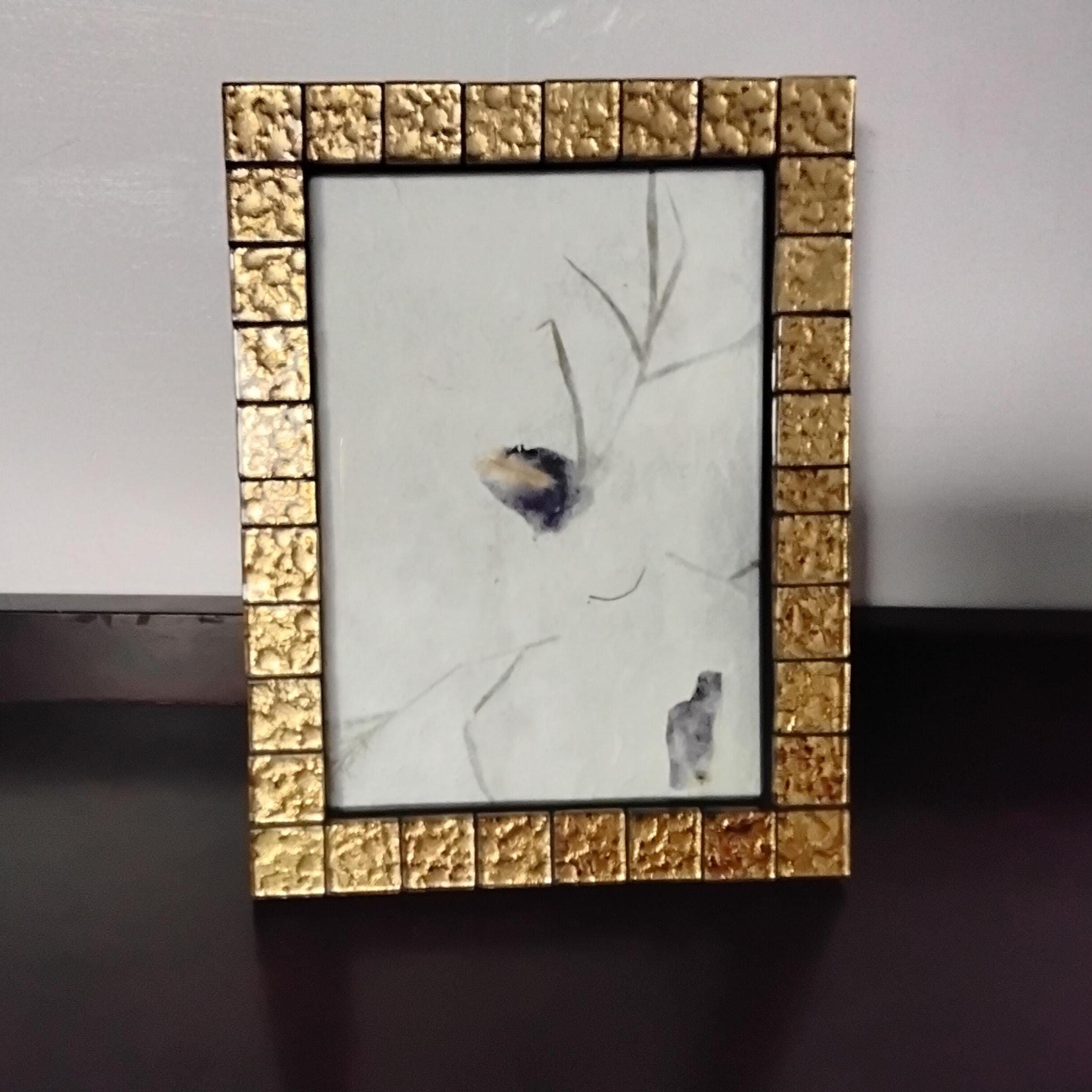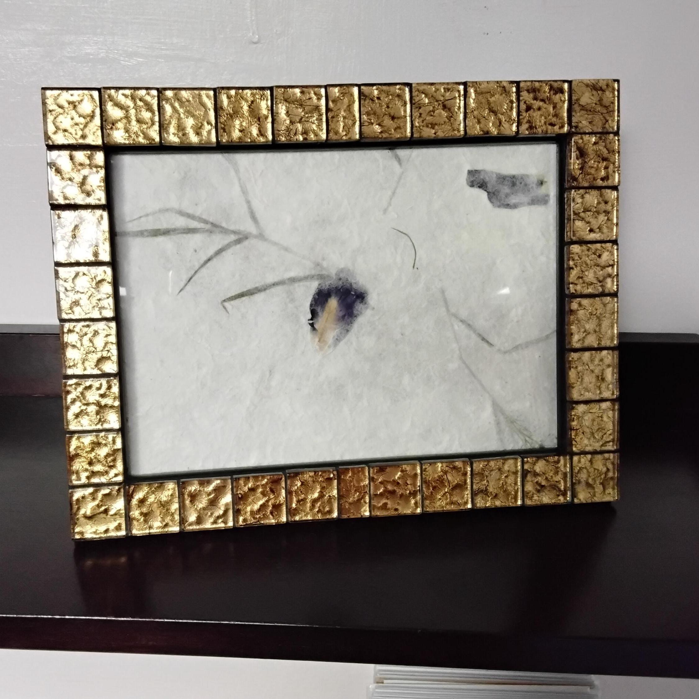 Mosaic Gold Leaf Backed Glass Tiled, Vertical or Horizontal, Tabletop or Hanging 5 x 7 Inch Frame with Glass
