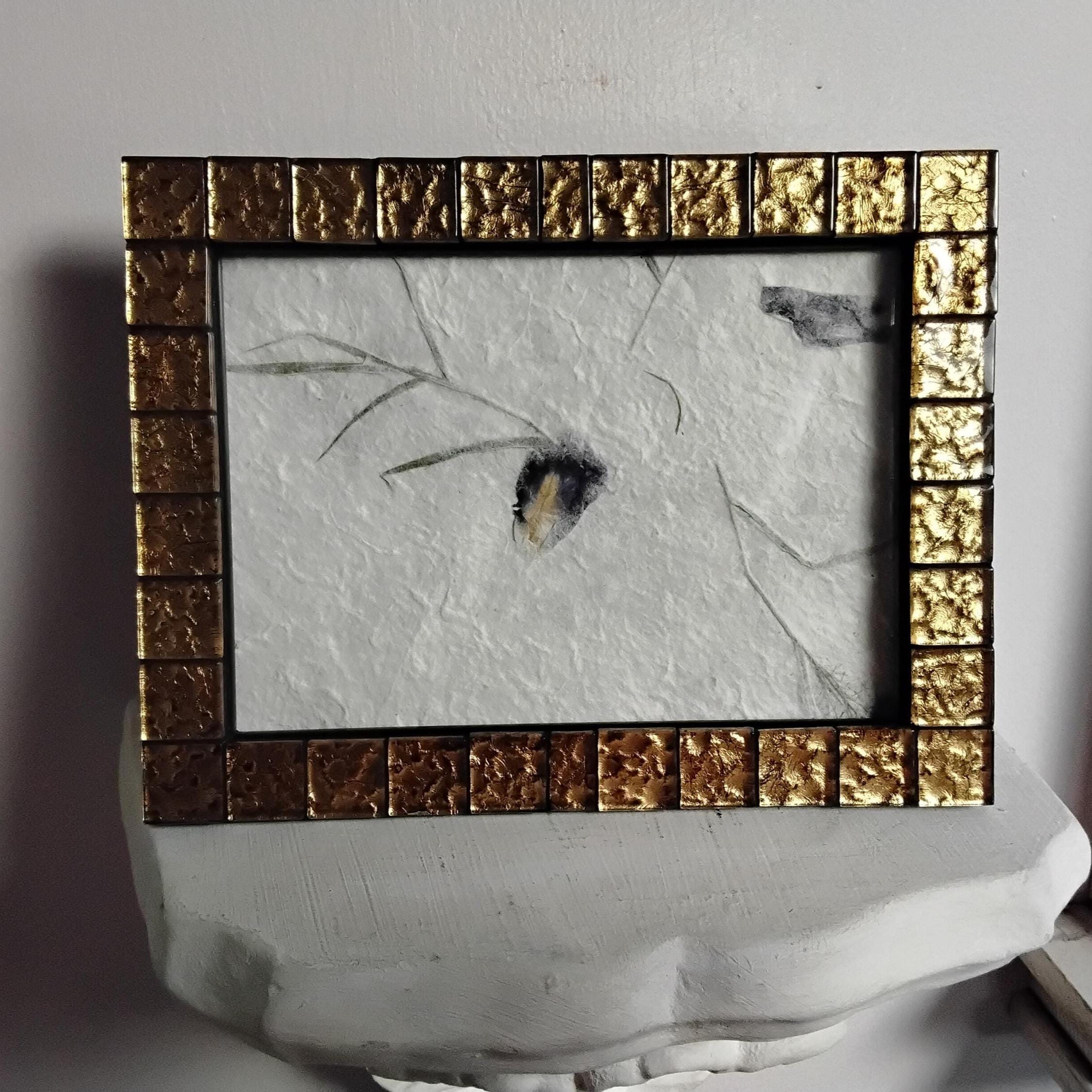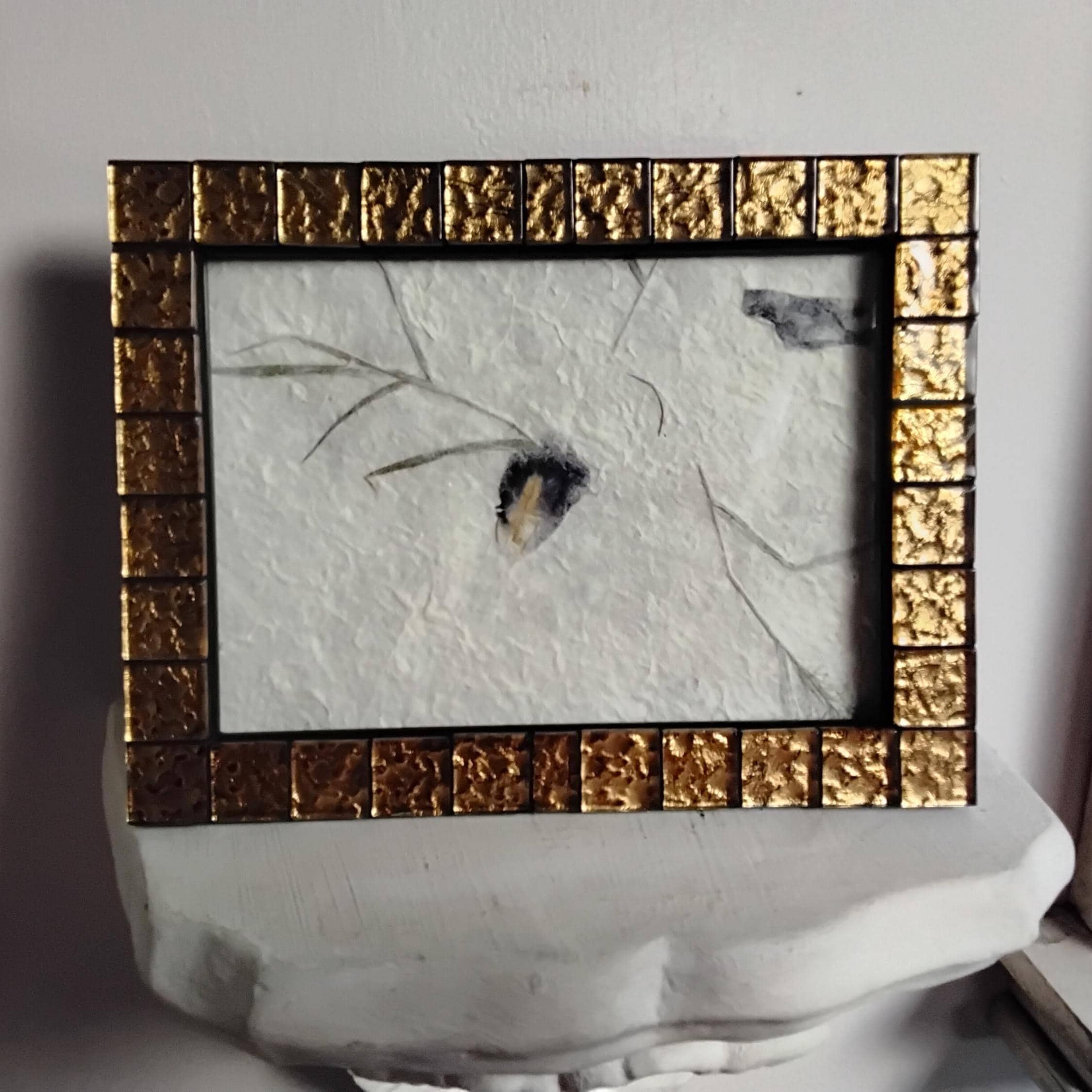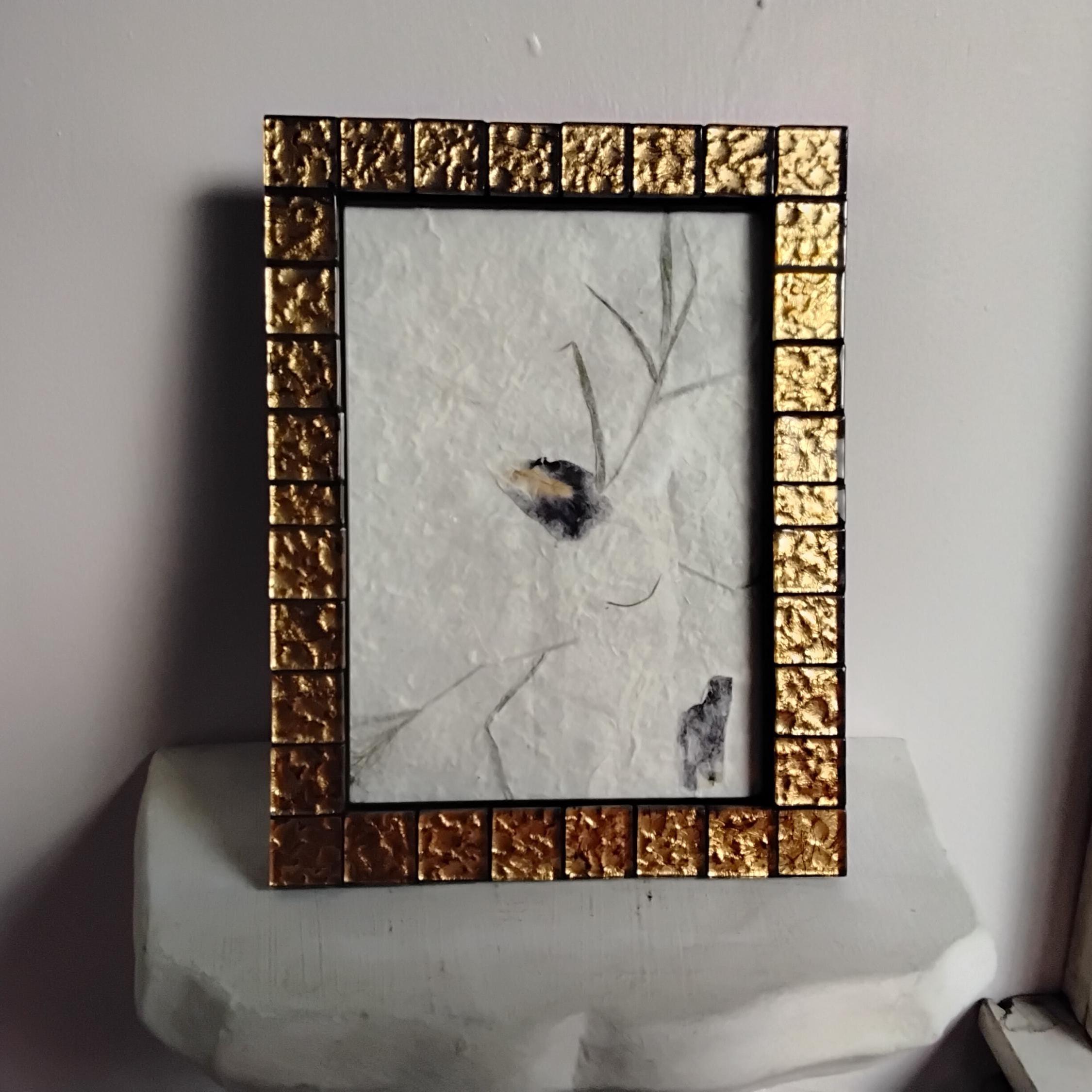 Mosaic Gold Leaf Backed Glass Tiled, Vertical or Horizontal, Tabletop or Hanging 5 x 7 Inch Frame with Glass
