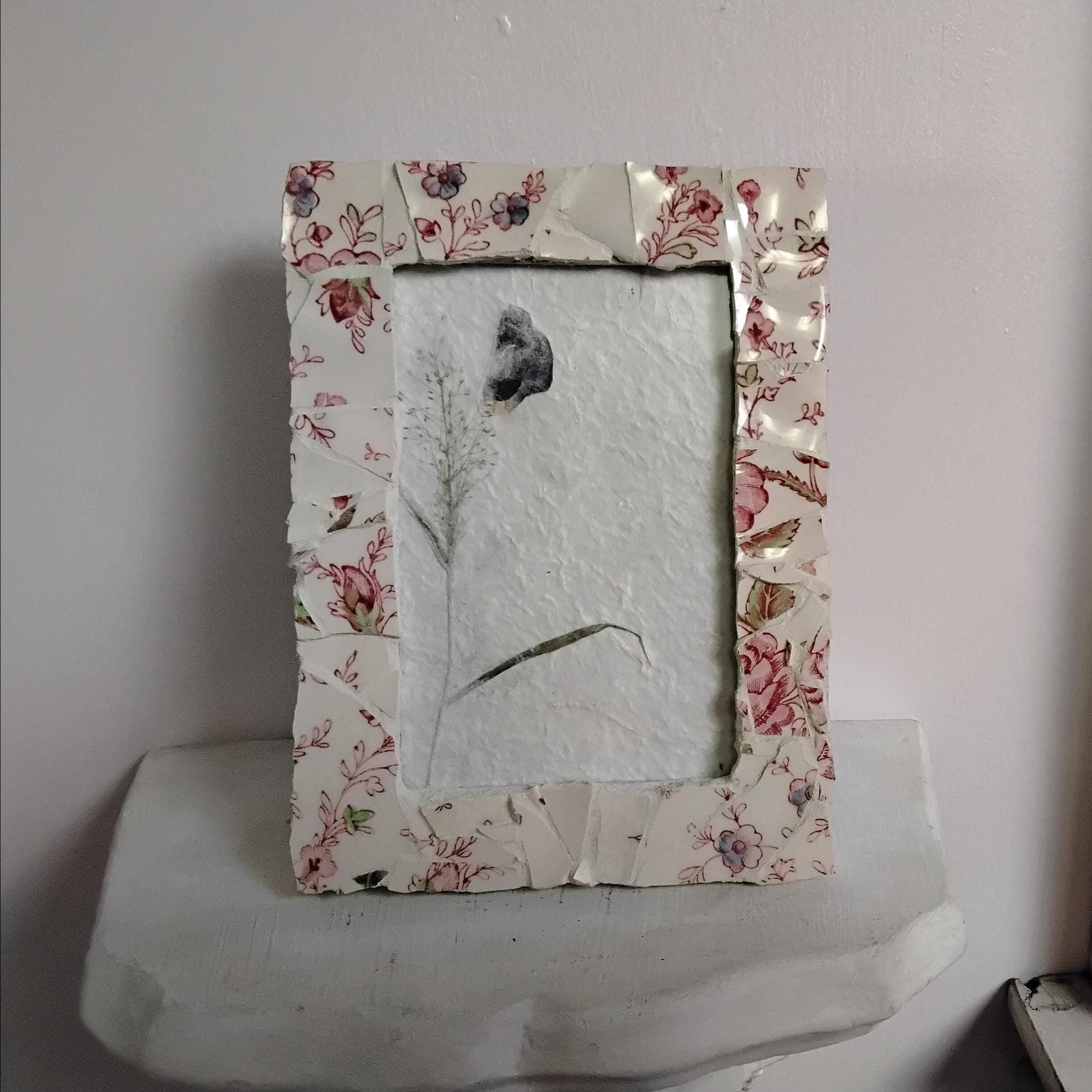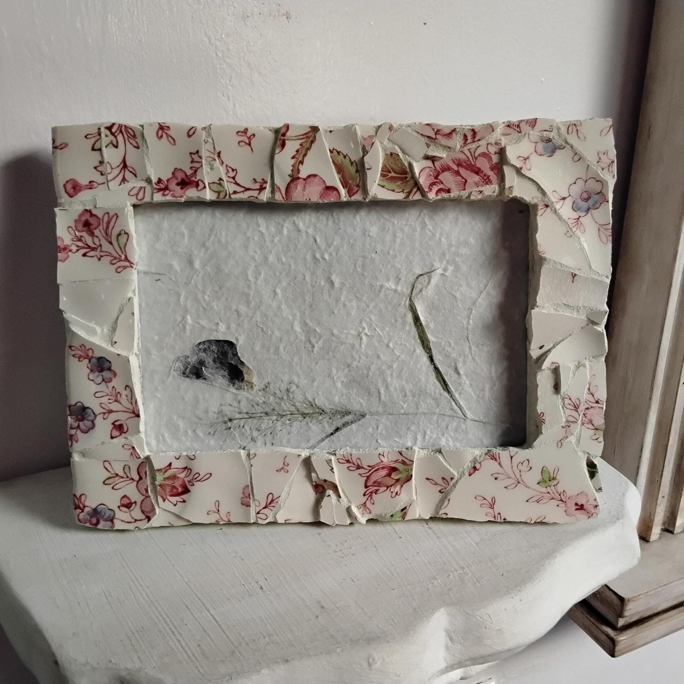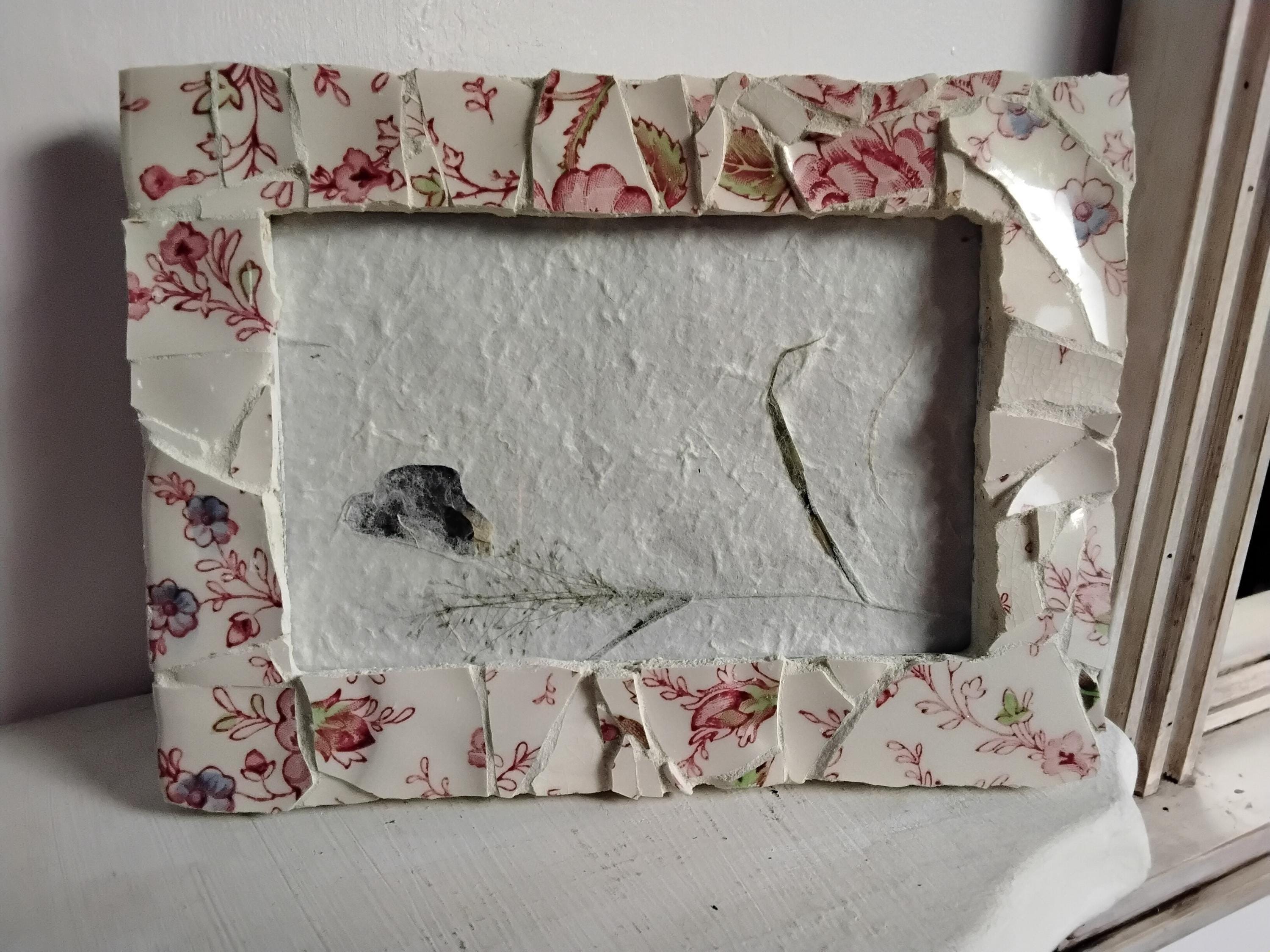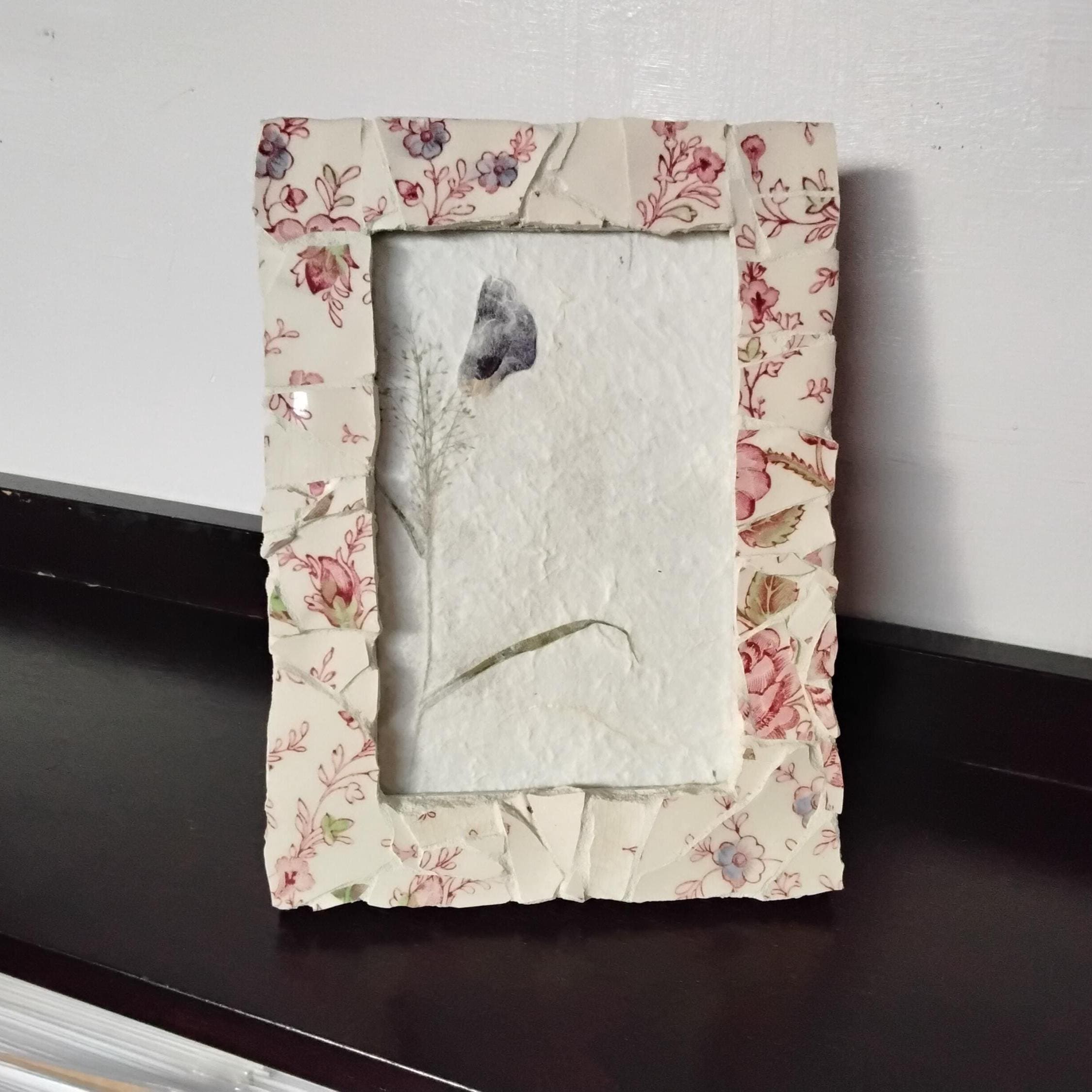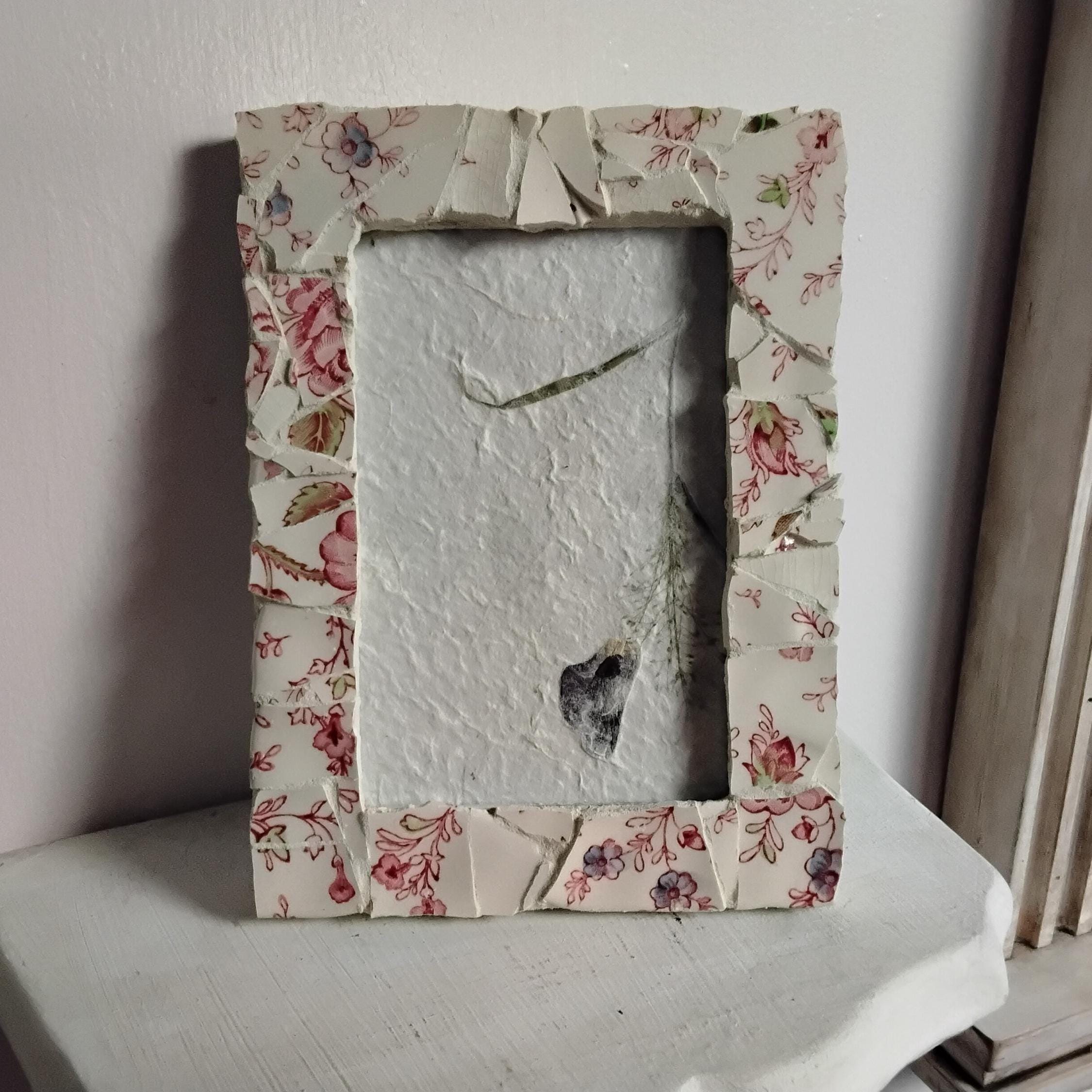 Mosaic Antique Rose Chintz China 4 x 6-inch Vertical or Horizontal, Hanging or Tabletop/Standing Frame with Glass