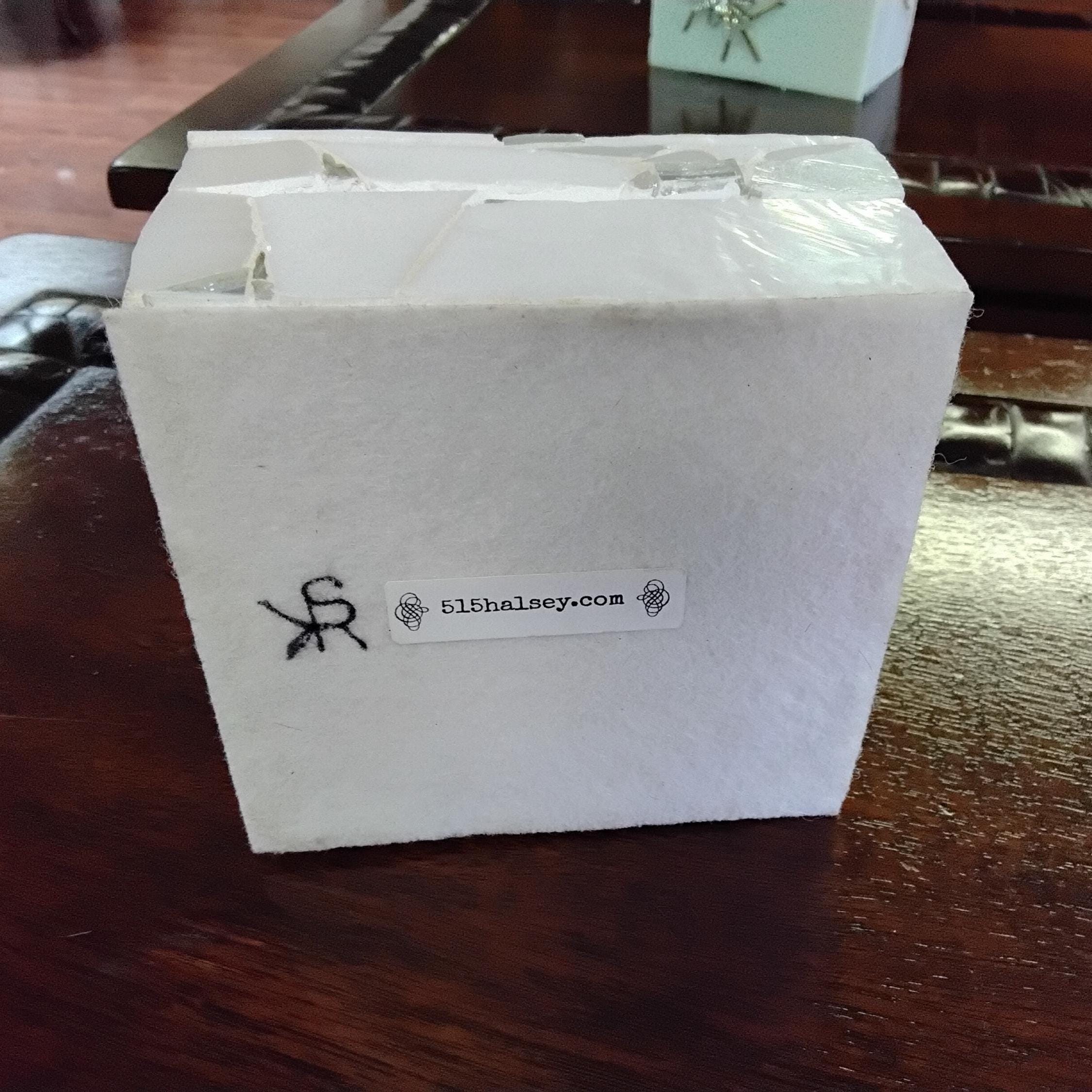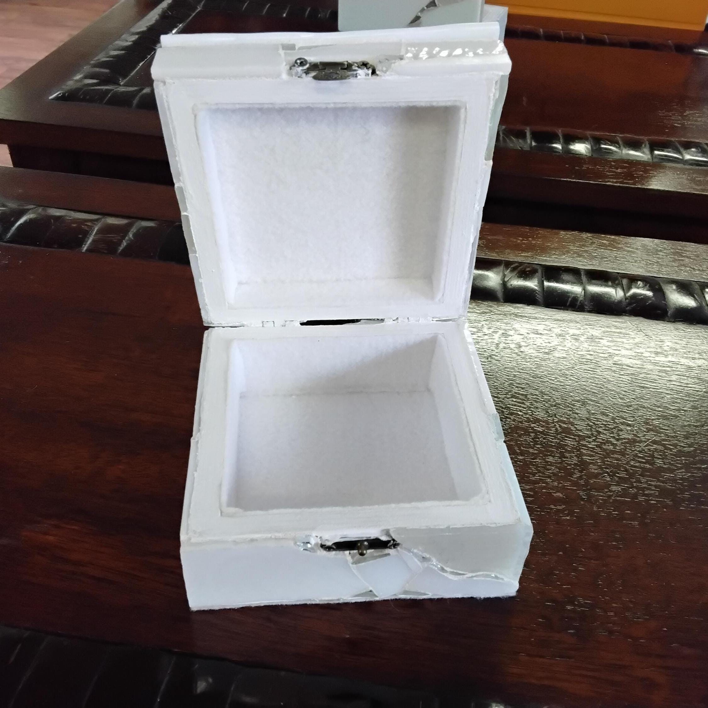 The inside of the box, sides, top and bottom is completely lined in white felt