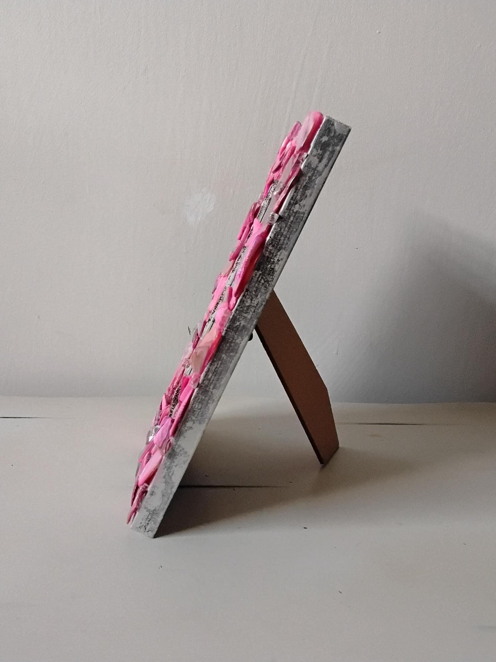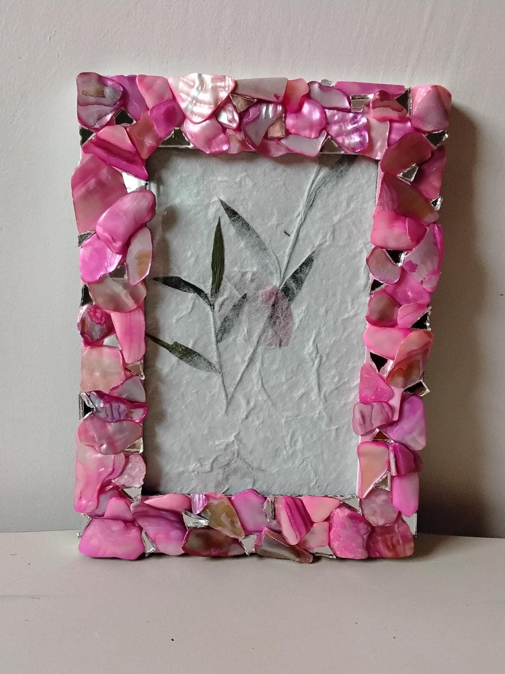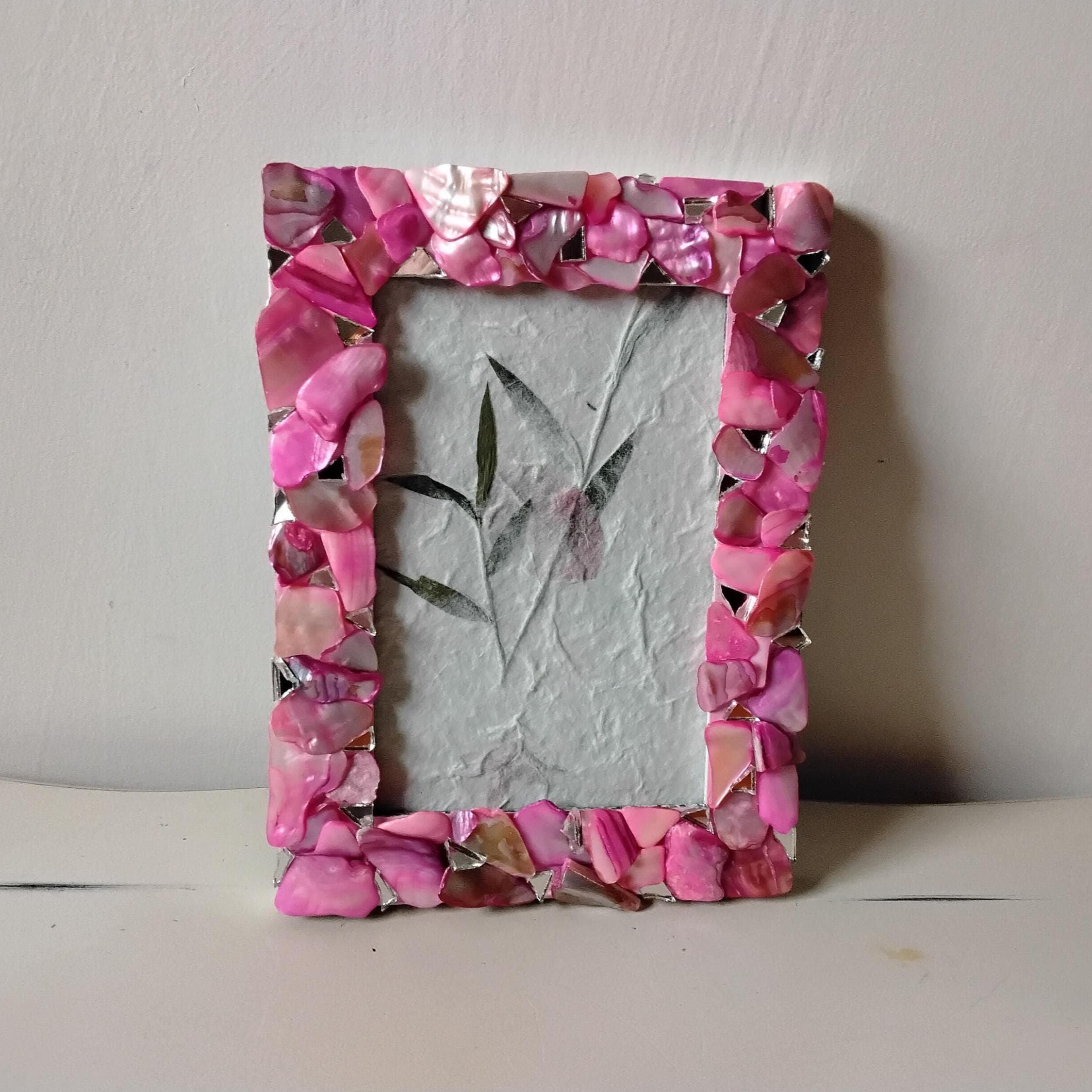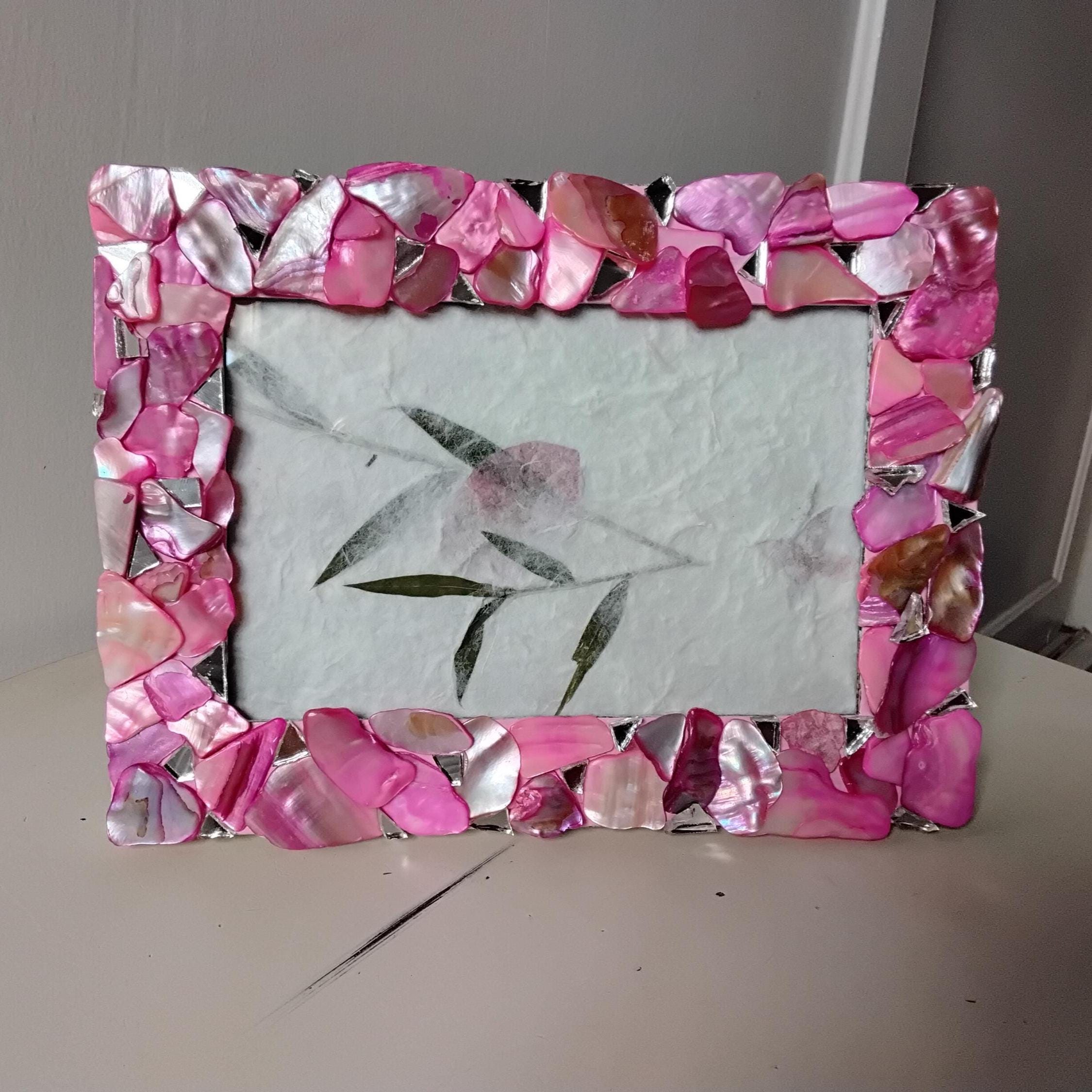 Mosaic Pink abalone Shell and Mirror 4-inch x 6-inch, Vertical or Horizontal, Hanging or Standing Frame with Glass