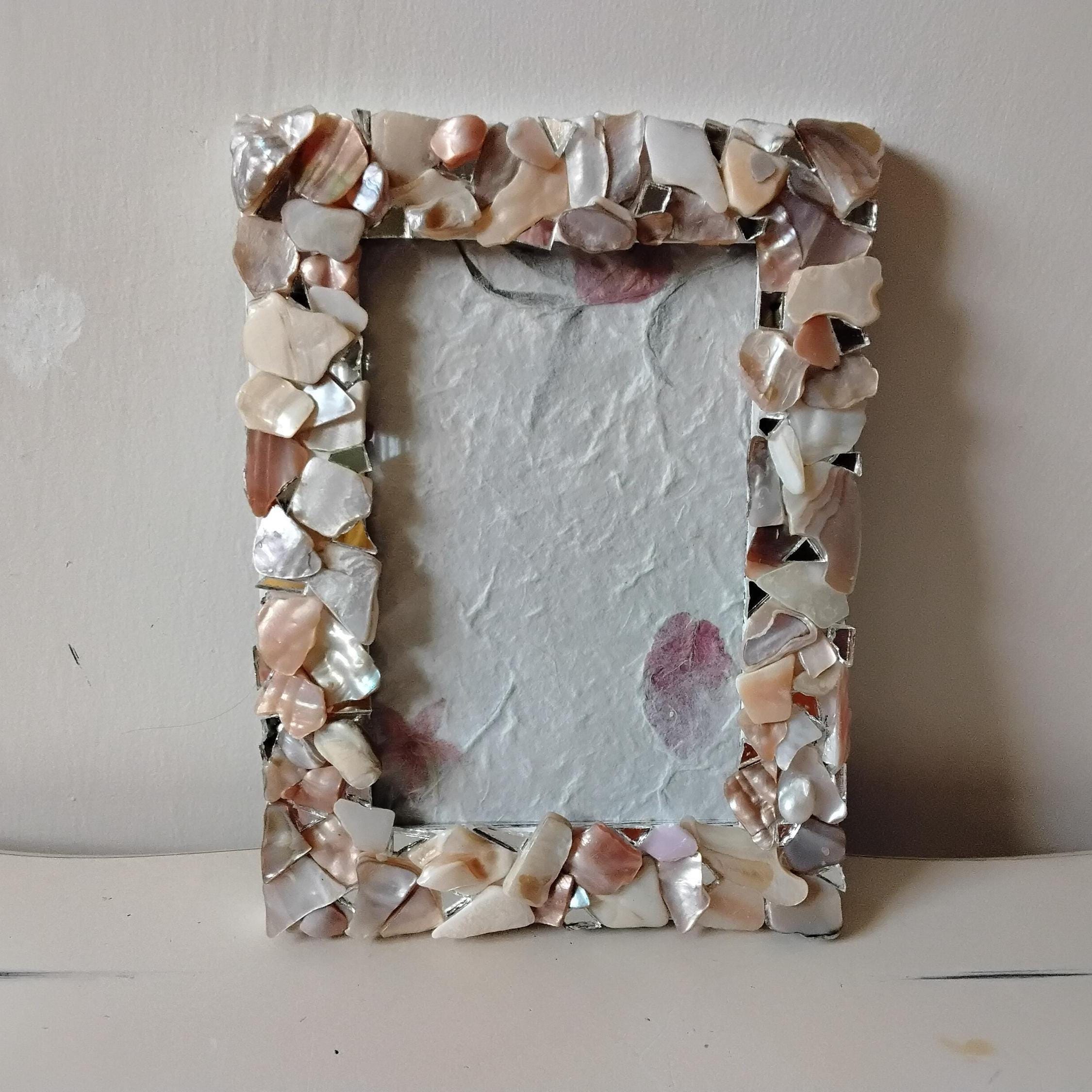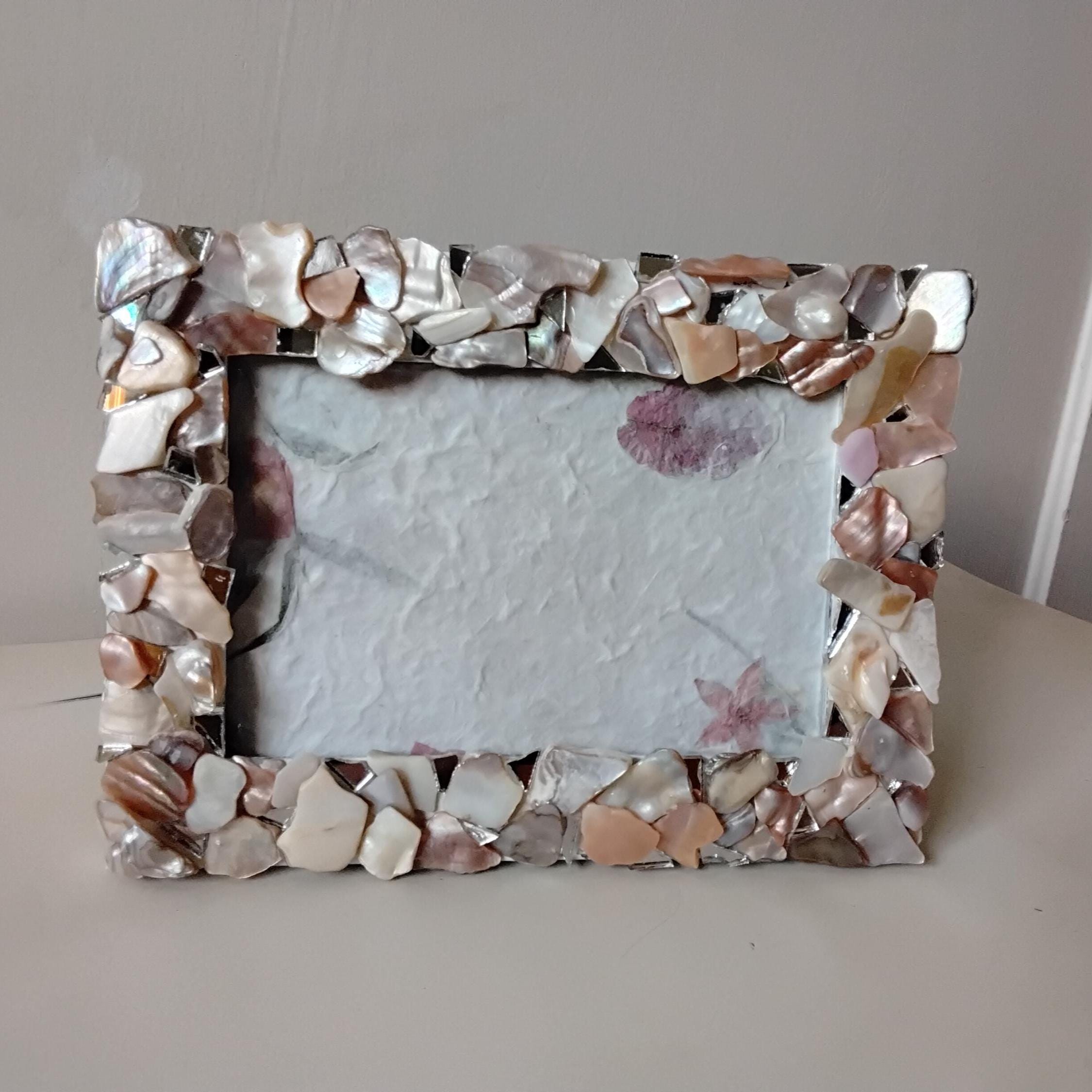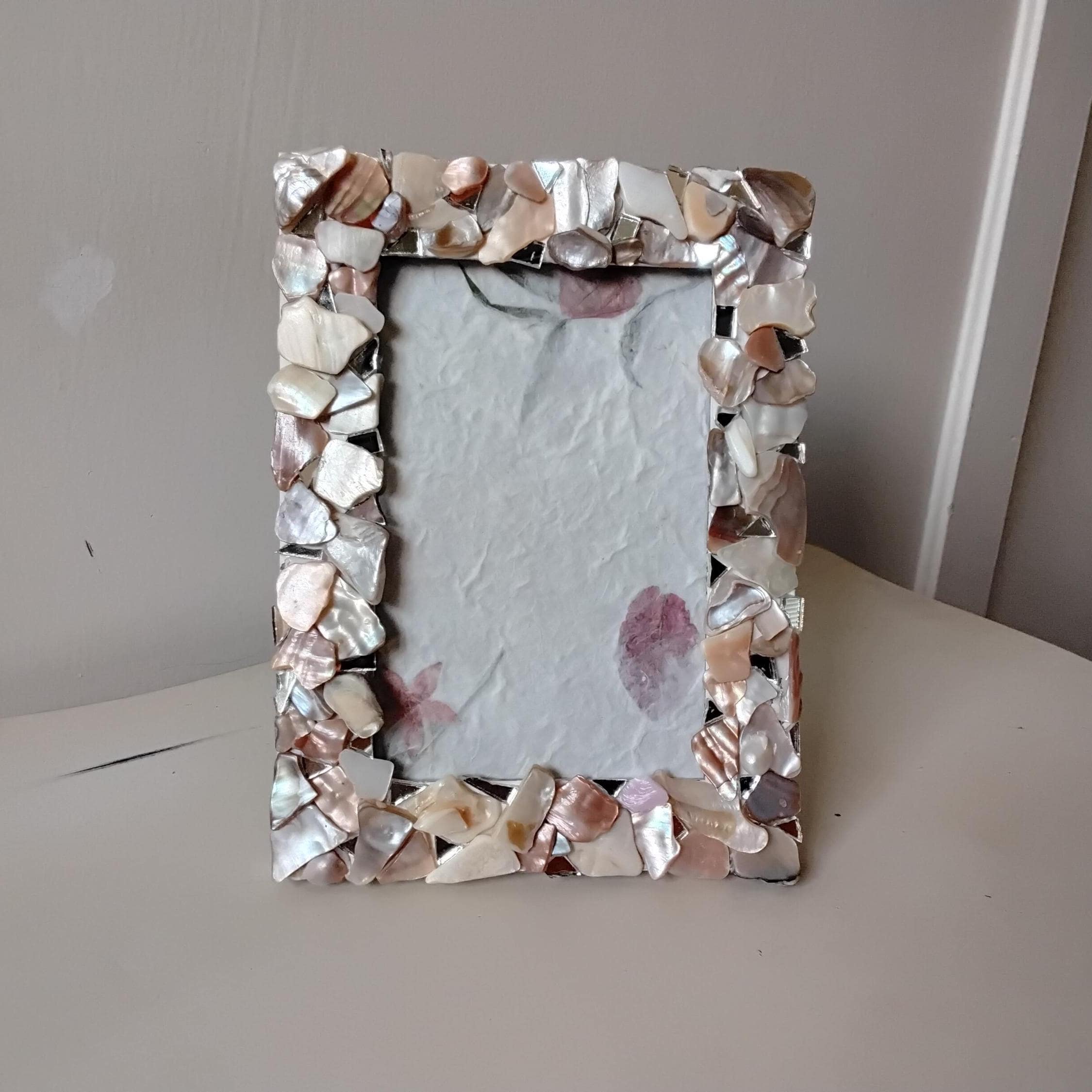 Mosaic Natural Abalone Shell and Mirror Vertical or Horizontal, Hanging or Standing 4-inch x 6-inch Frame with Glass