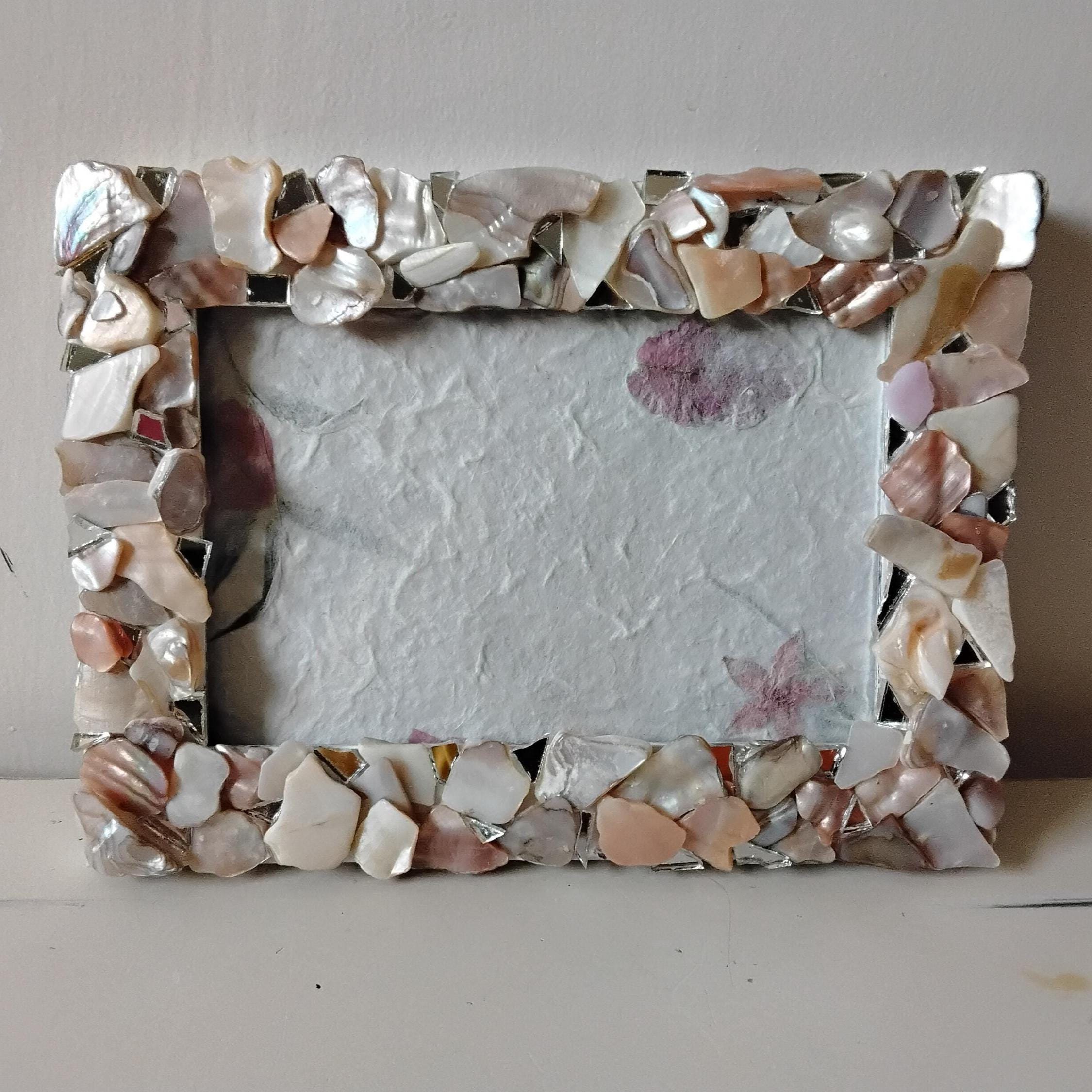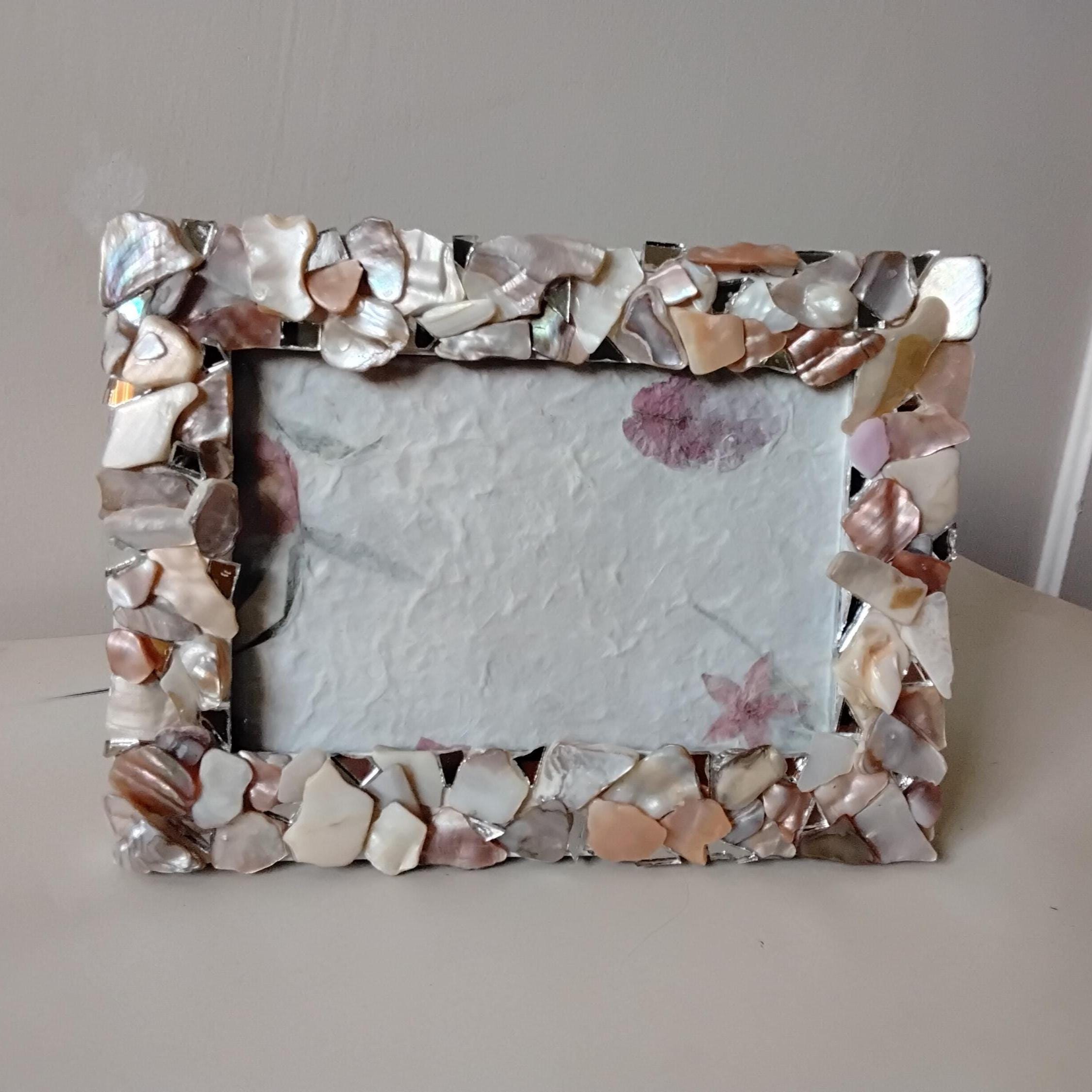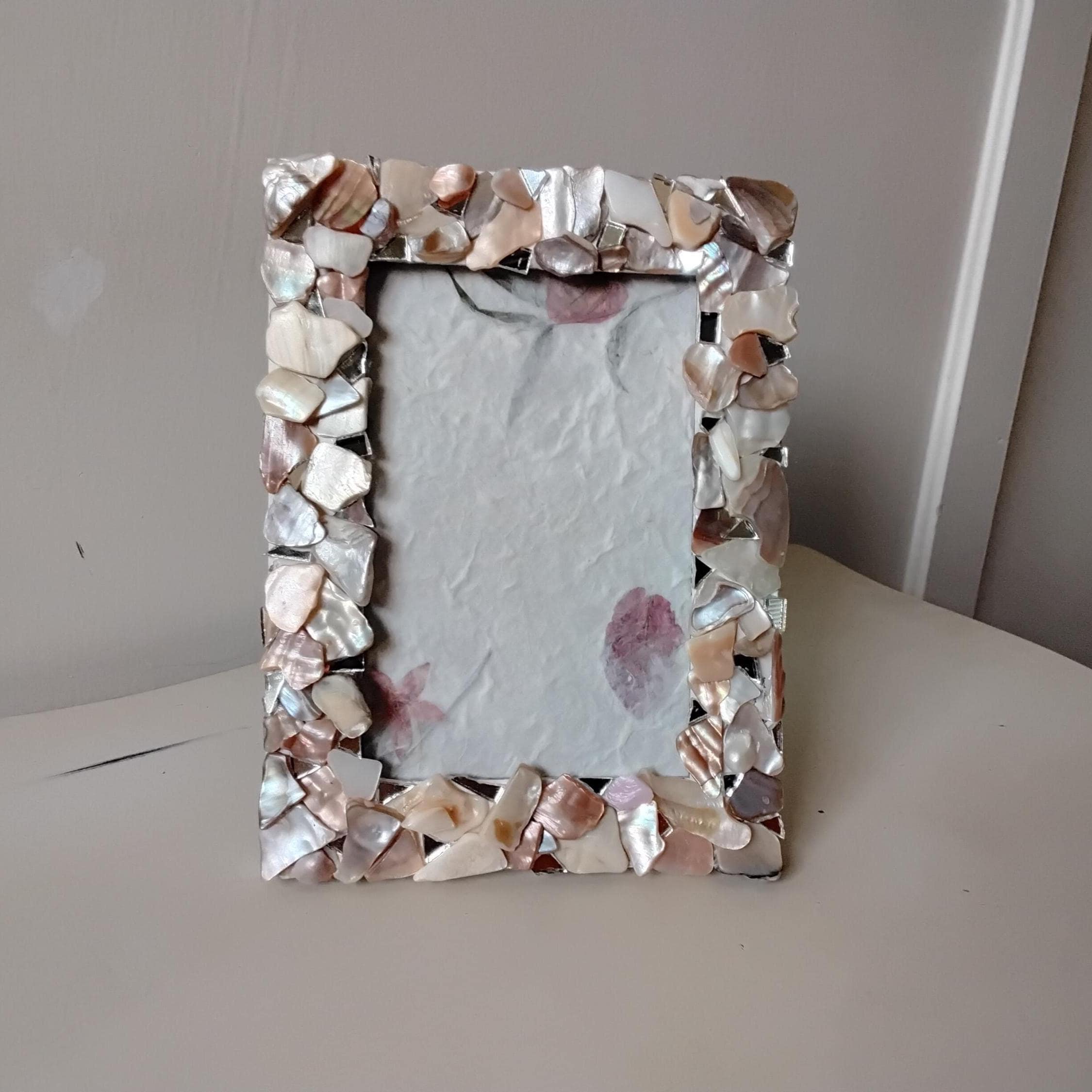 Mosaic Natural Abalone Shell and Mirror Vertical or Horizontal, Hanging or Standing 4-inch x 6-inch Frame with Glass