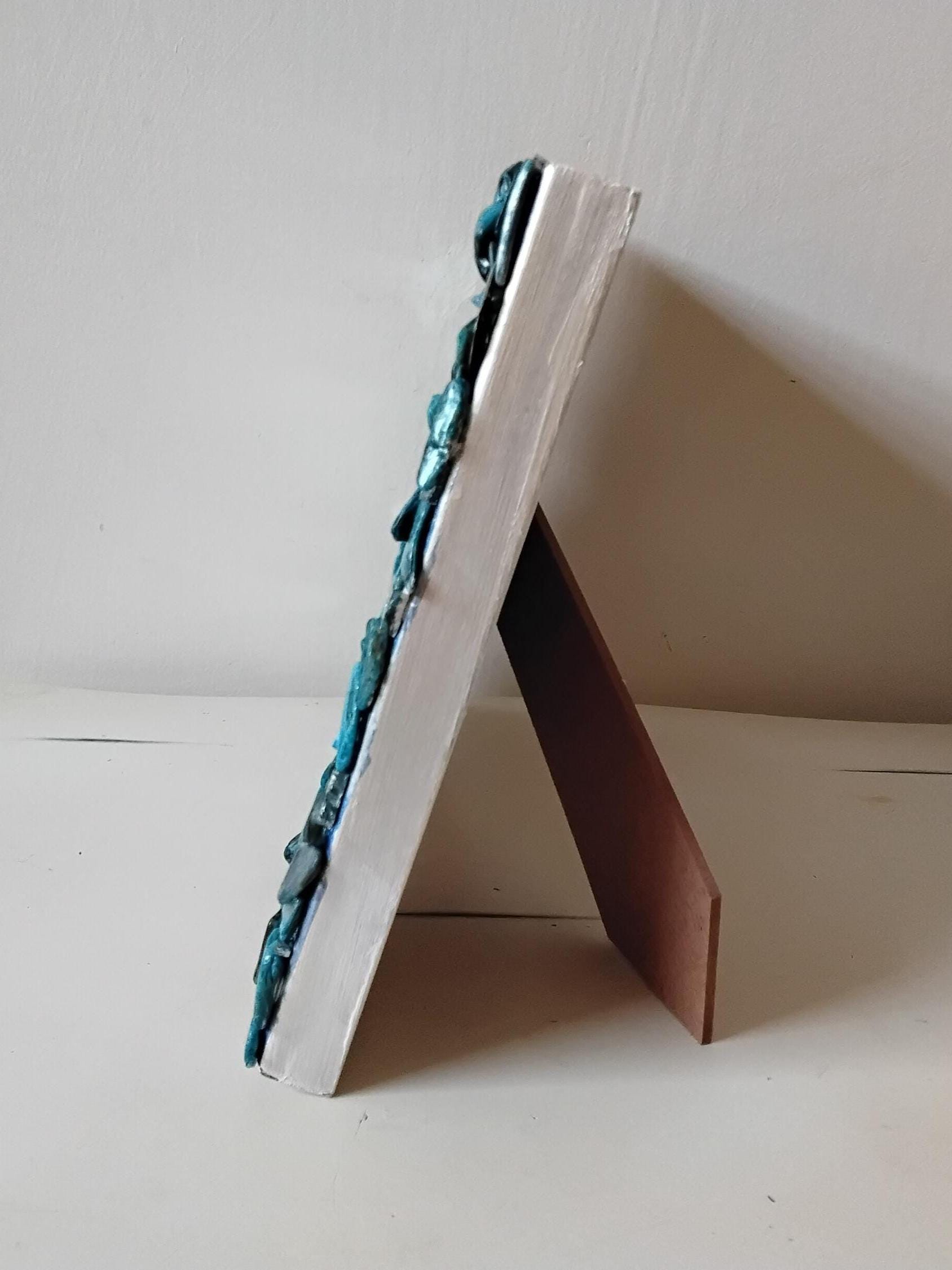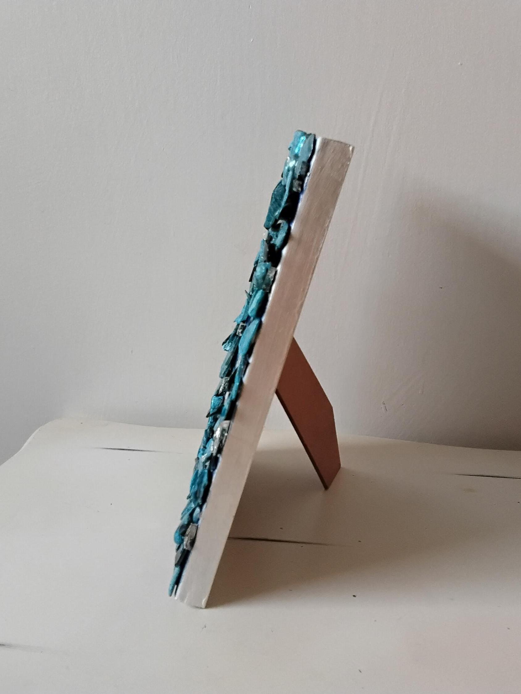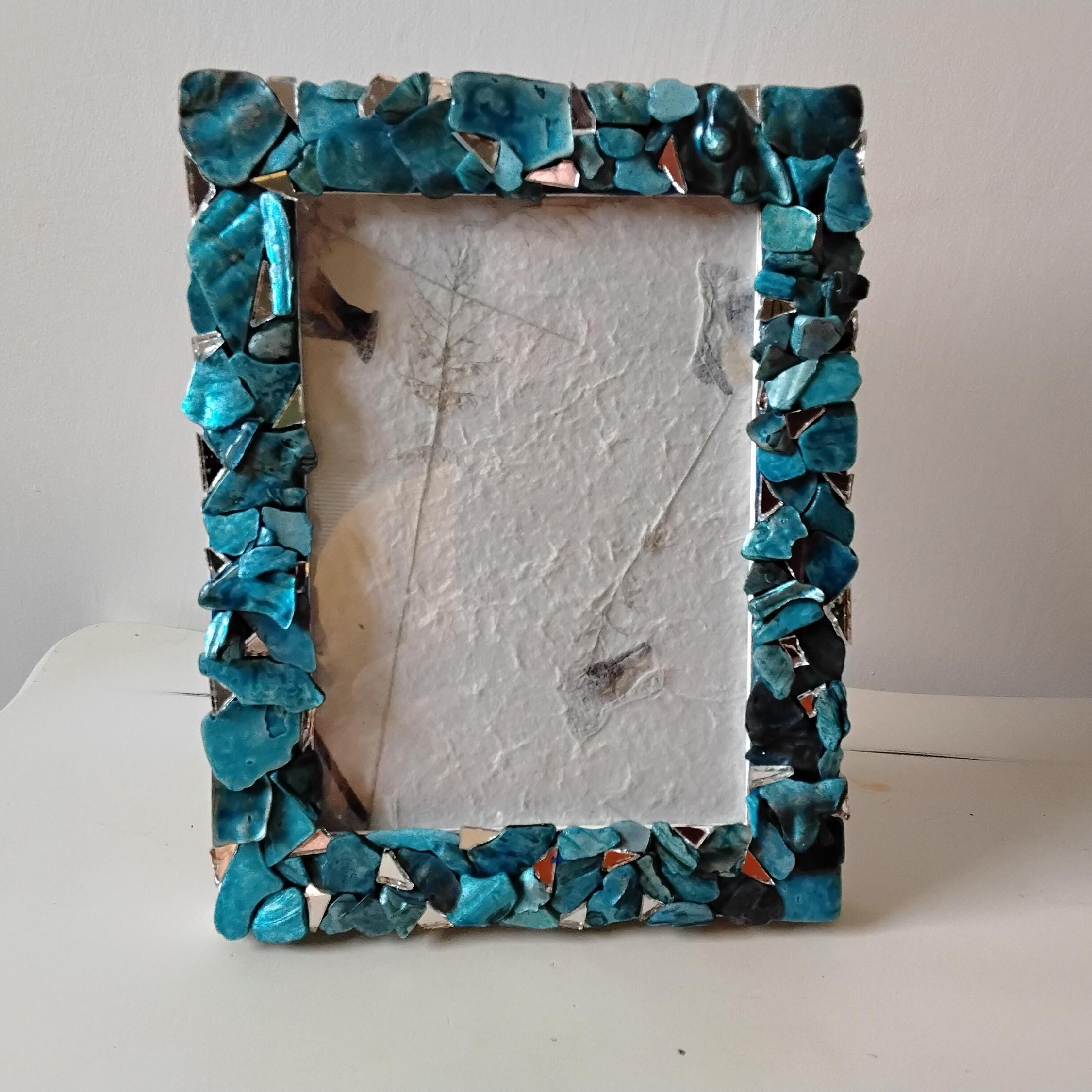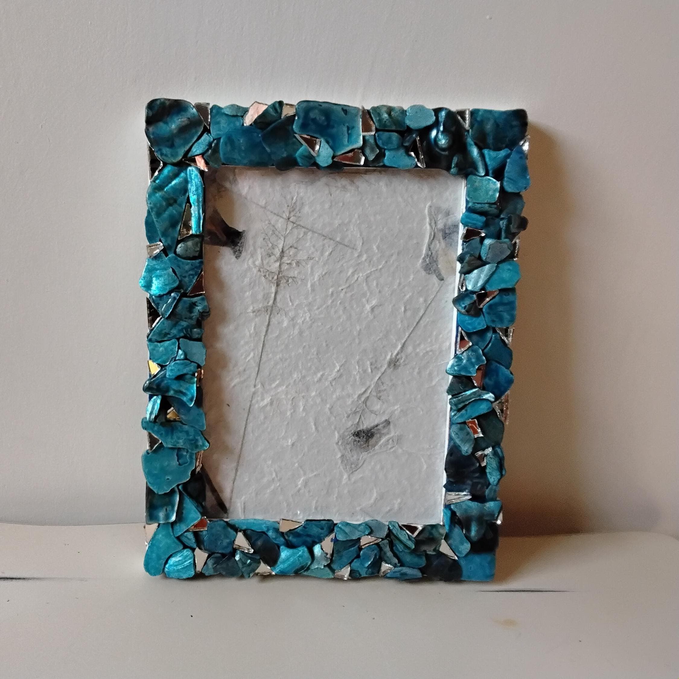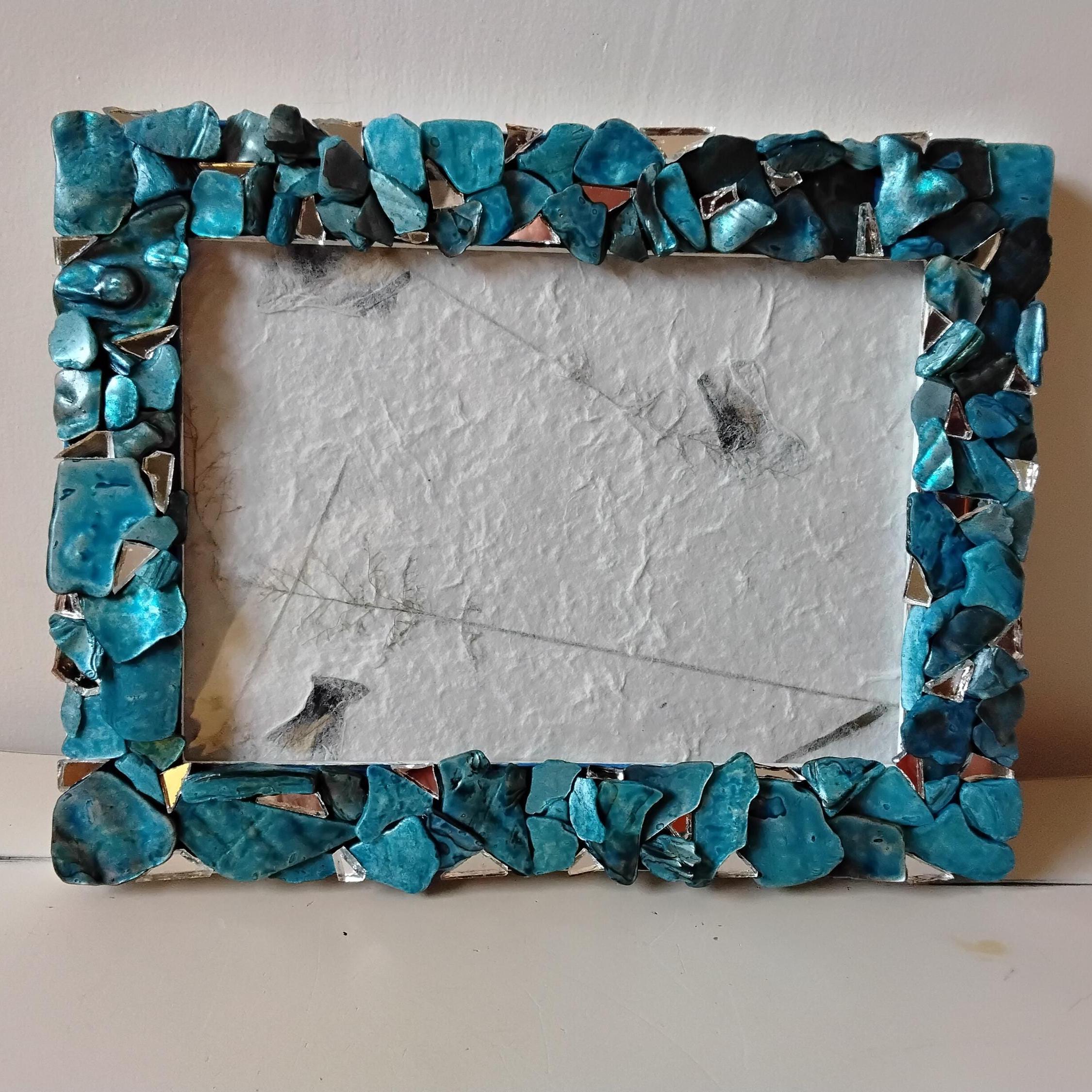 5 x 7-inch Mosaic Ocean Blue Stained Abalone Shell and Mirror Vertical or Horizontal, Hanging or Tabletop, Frame with Glass