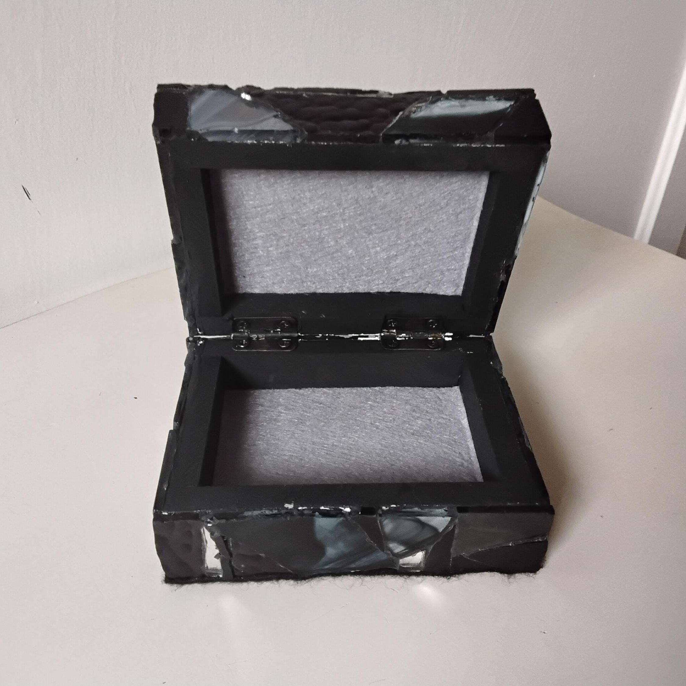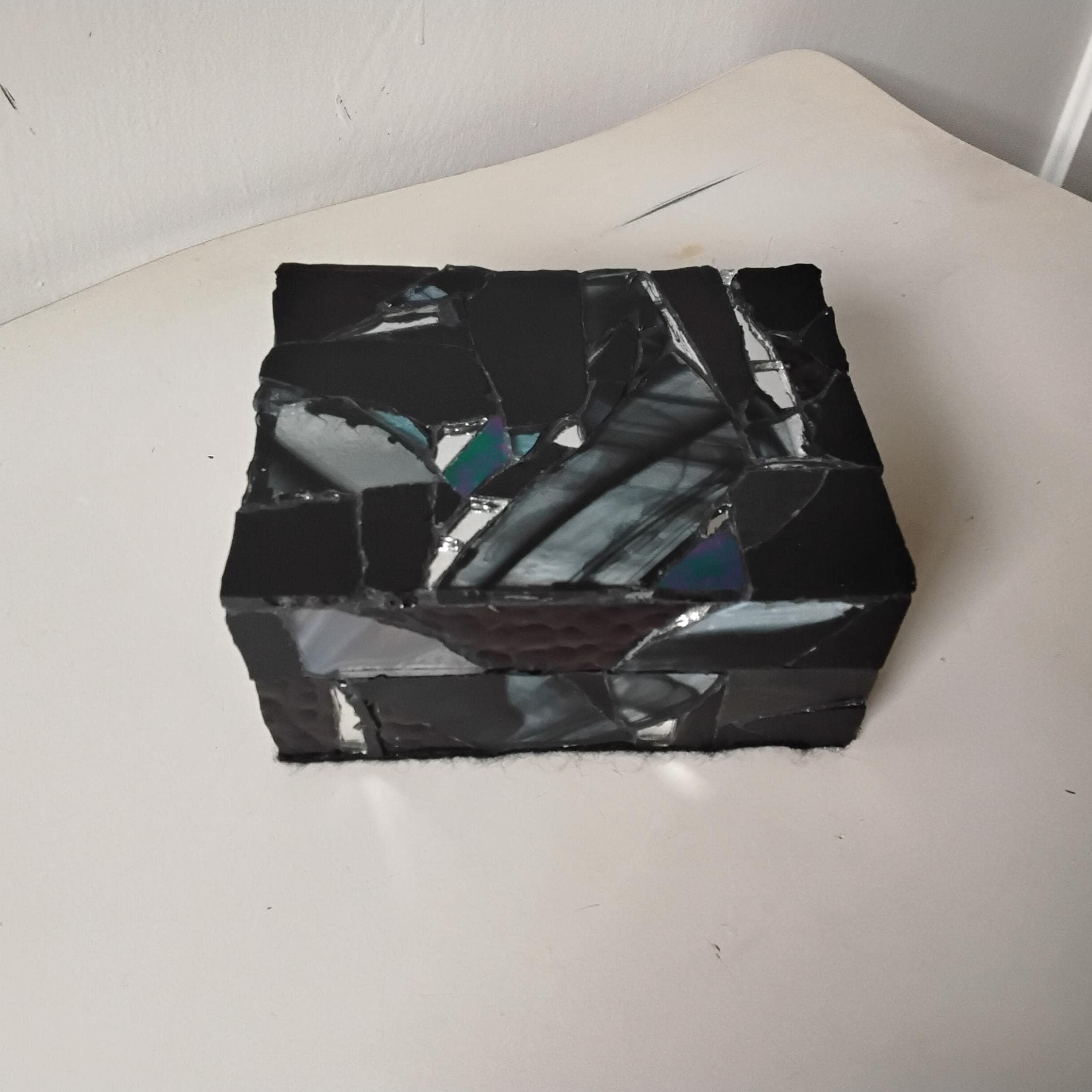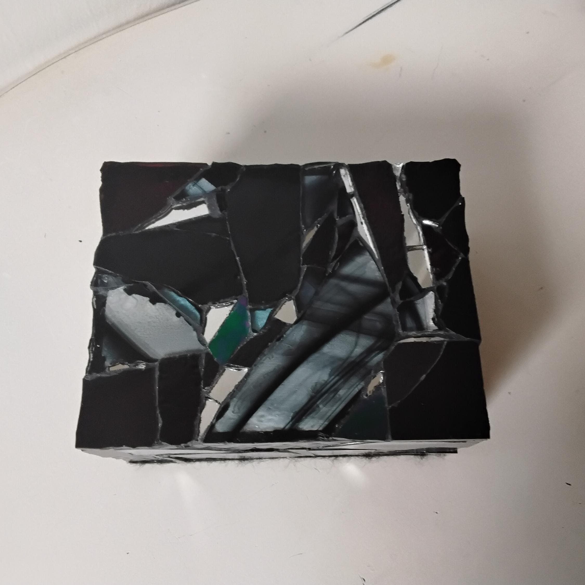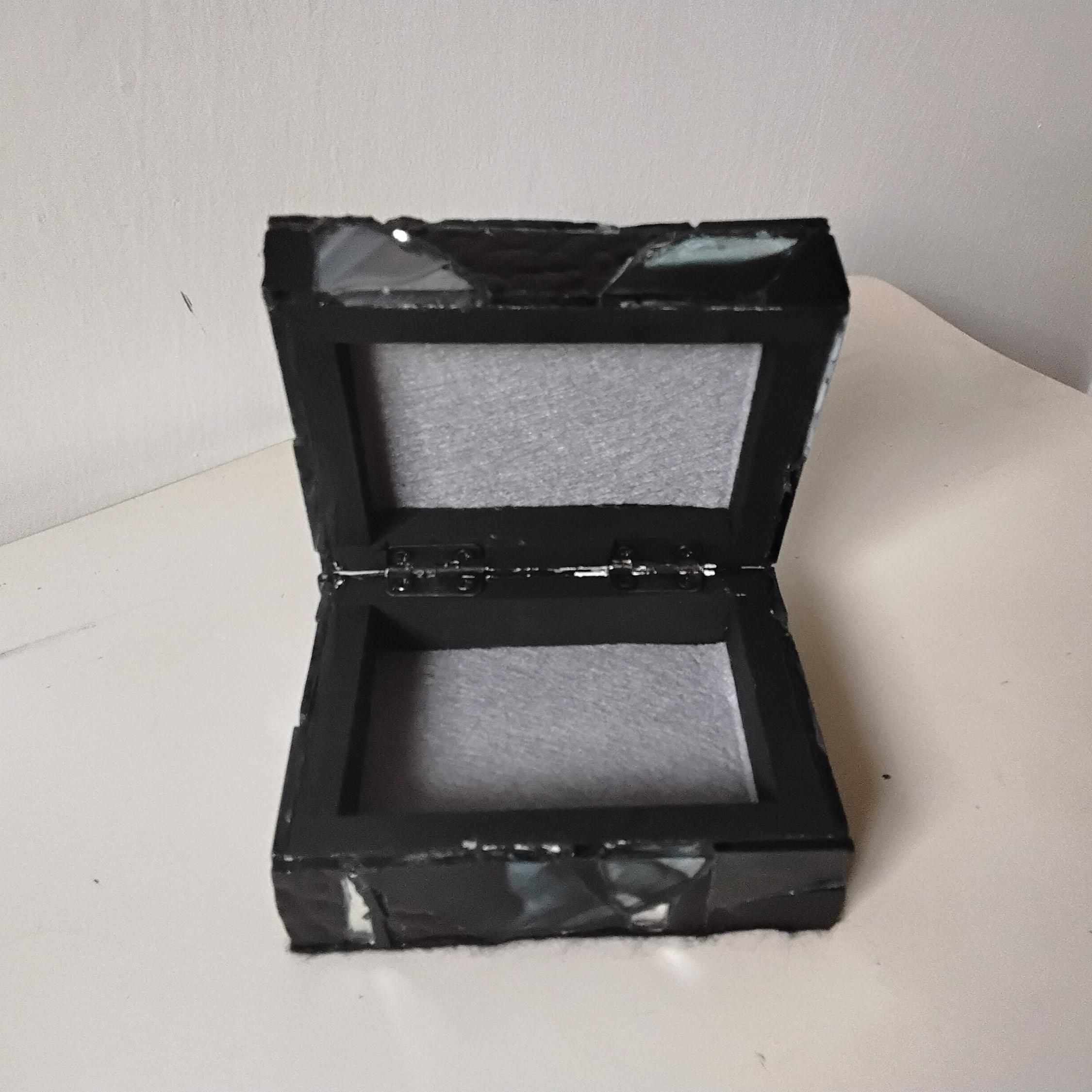 Black Stained Glass and Mirror Mosaic Jewelry, Trinket, Keepsake, Hinged, Ring Box