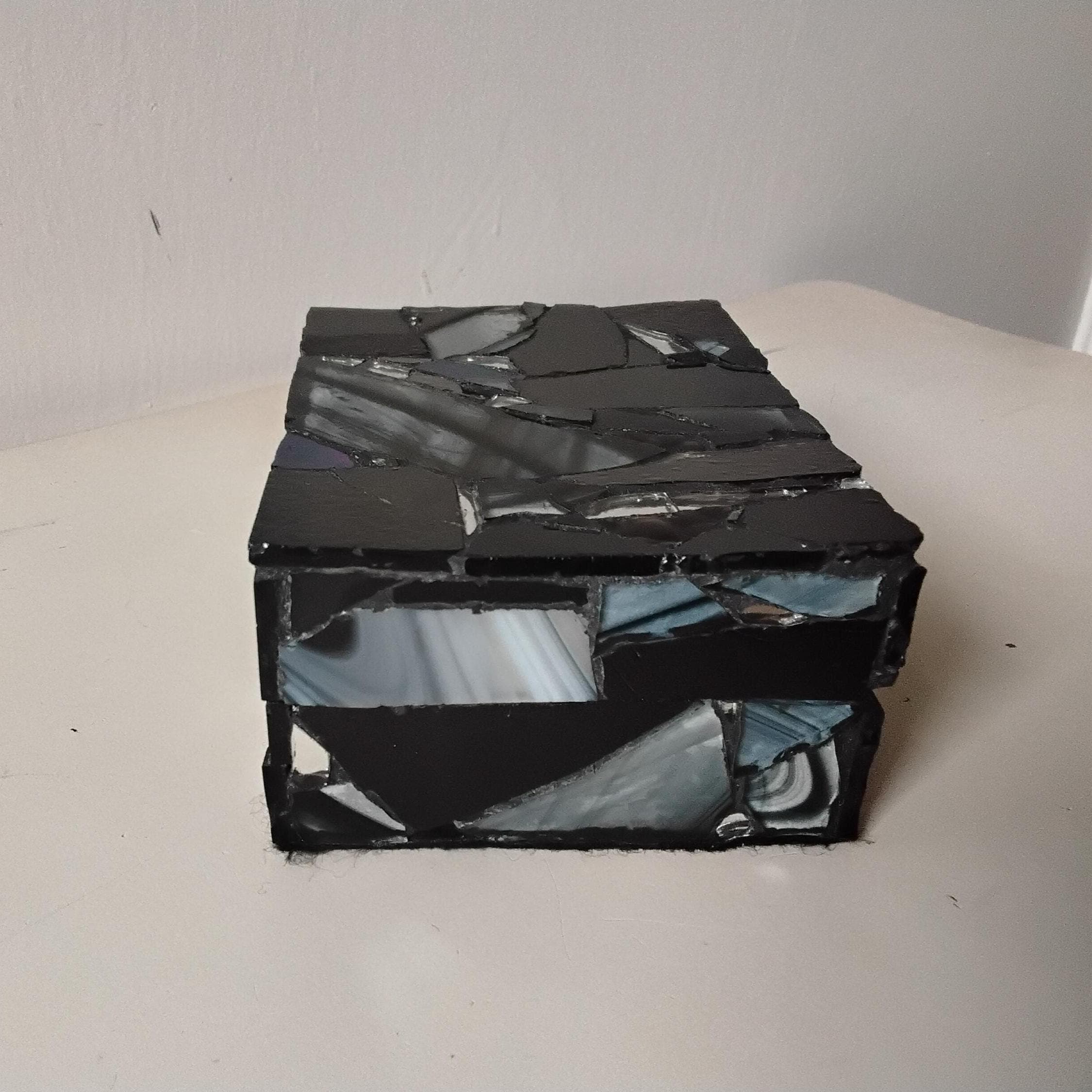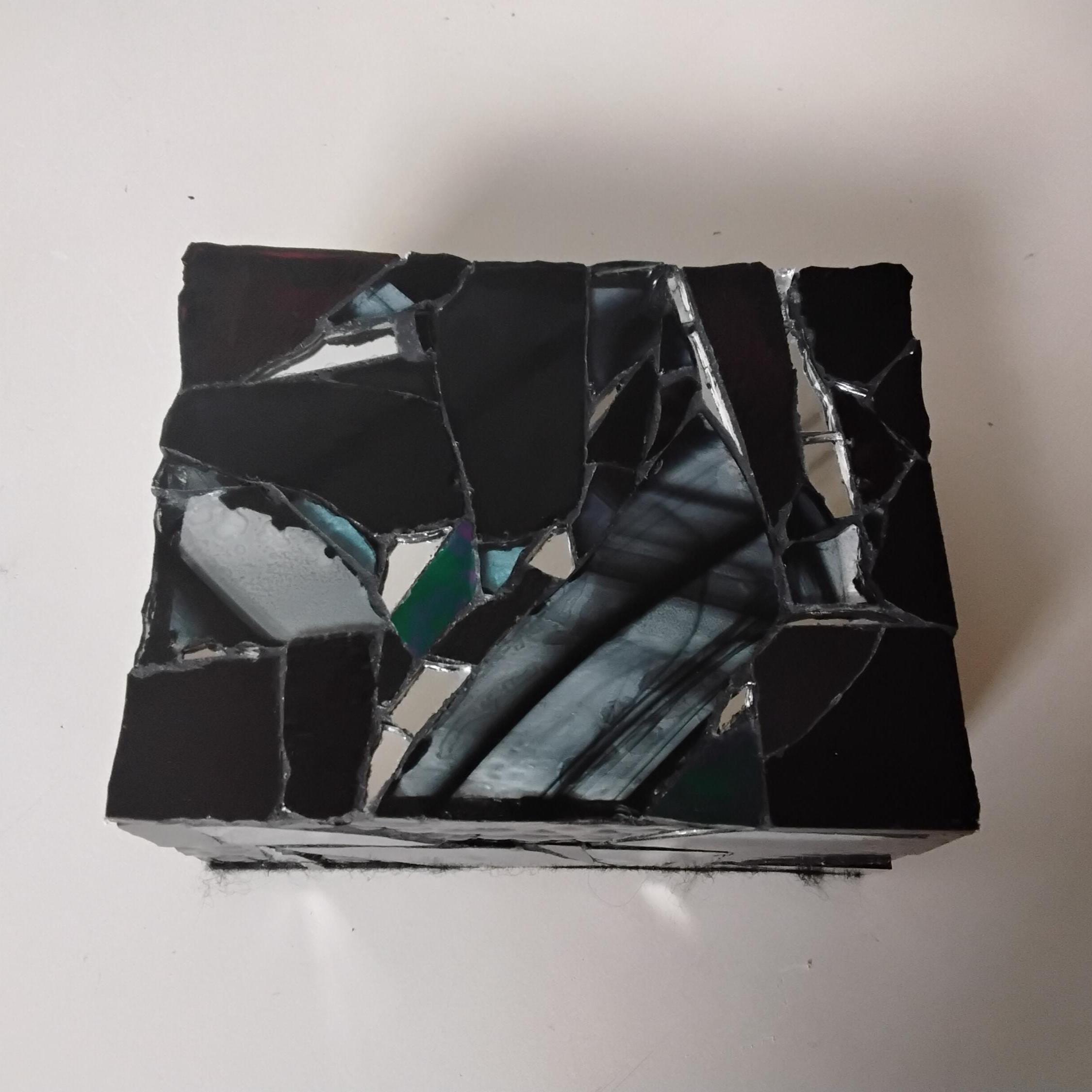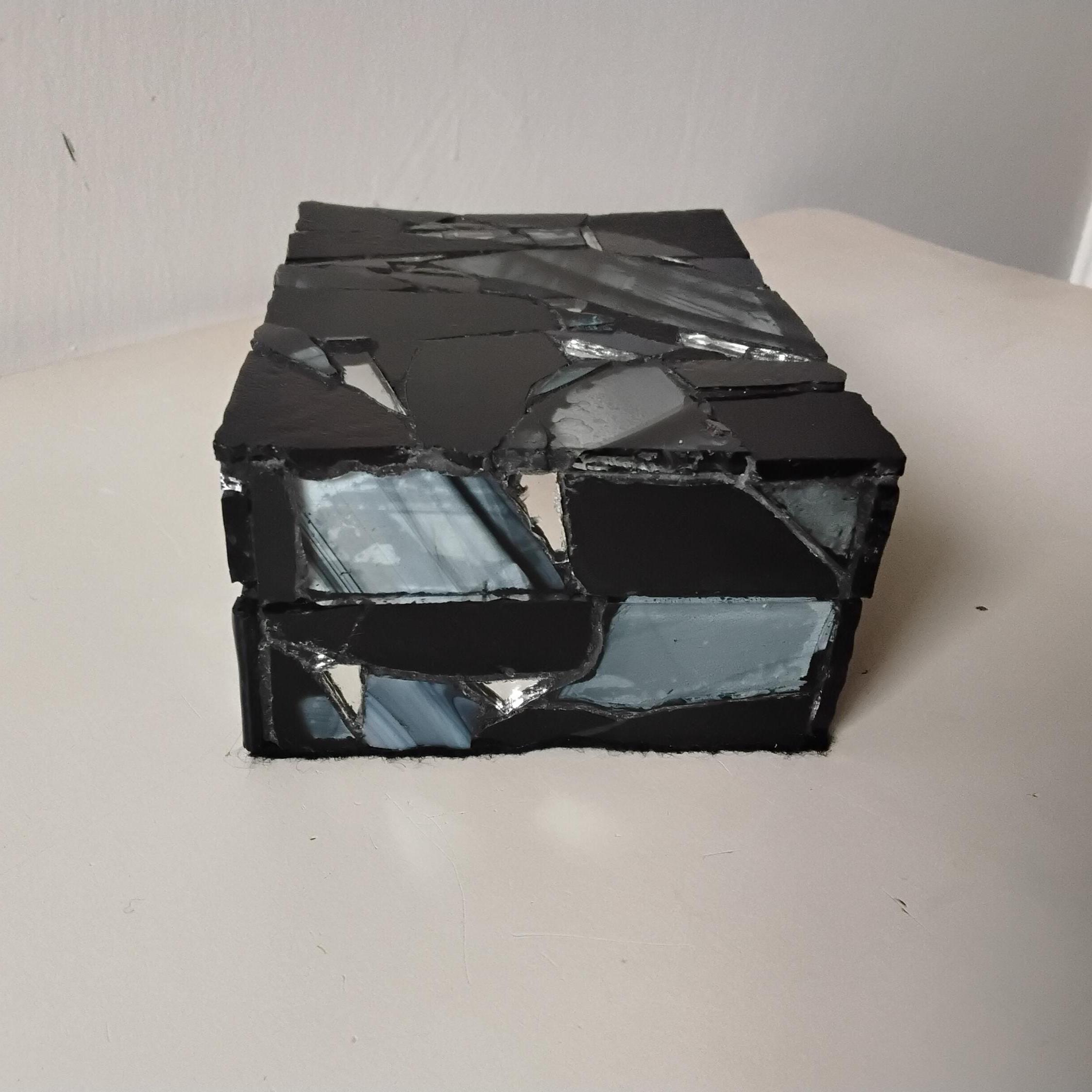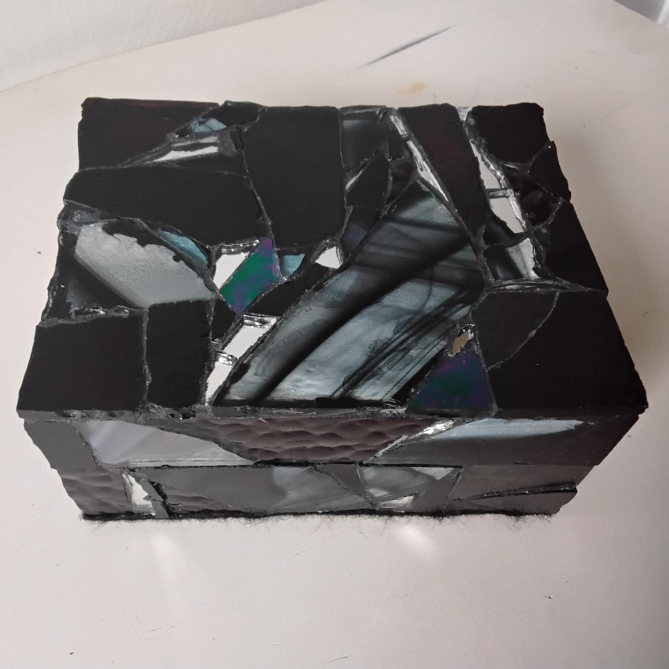 Black Stained Glass and Mirror Mosaic Jewelry, Trinket, Keepsake, Hinged, Ring Box