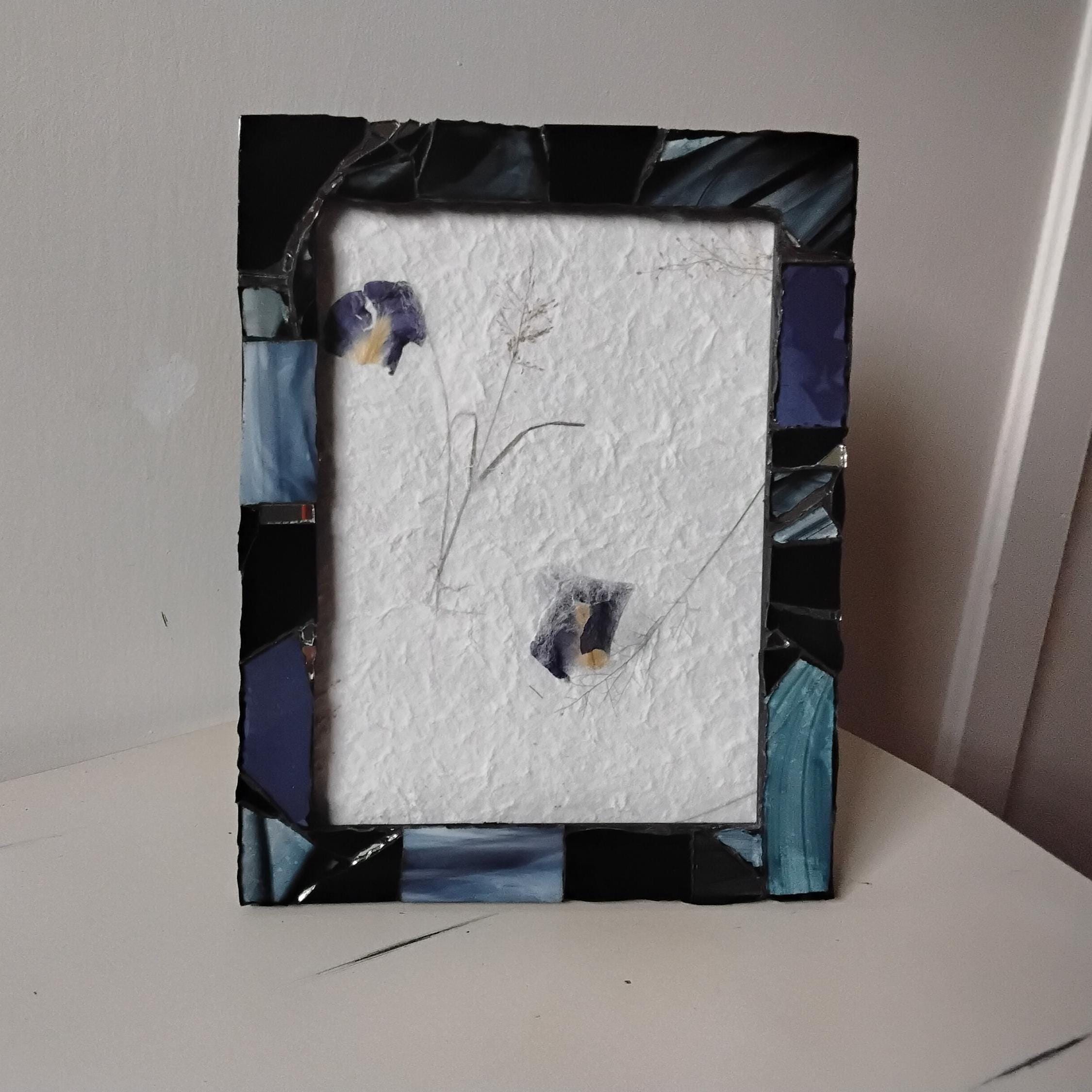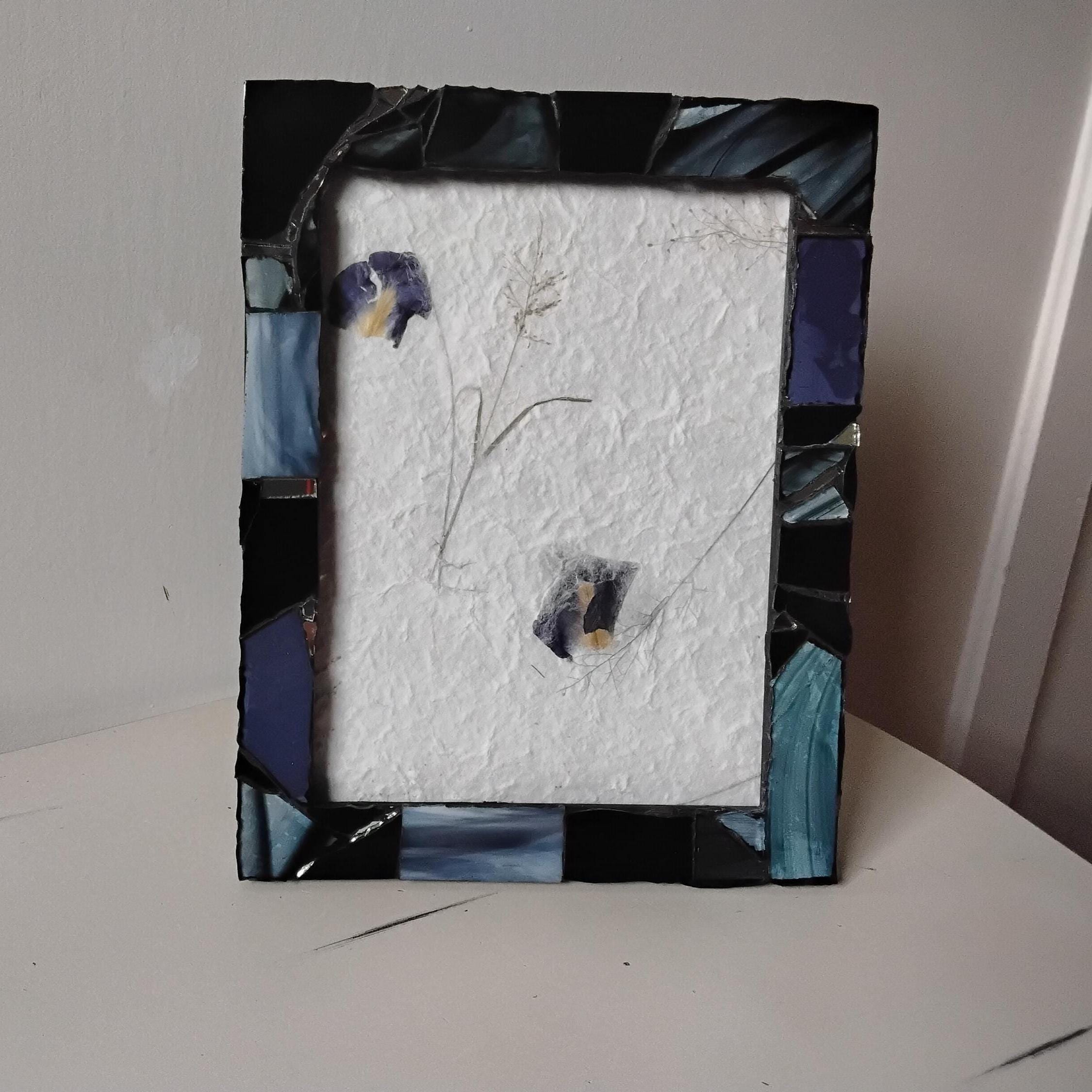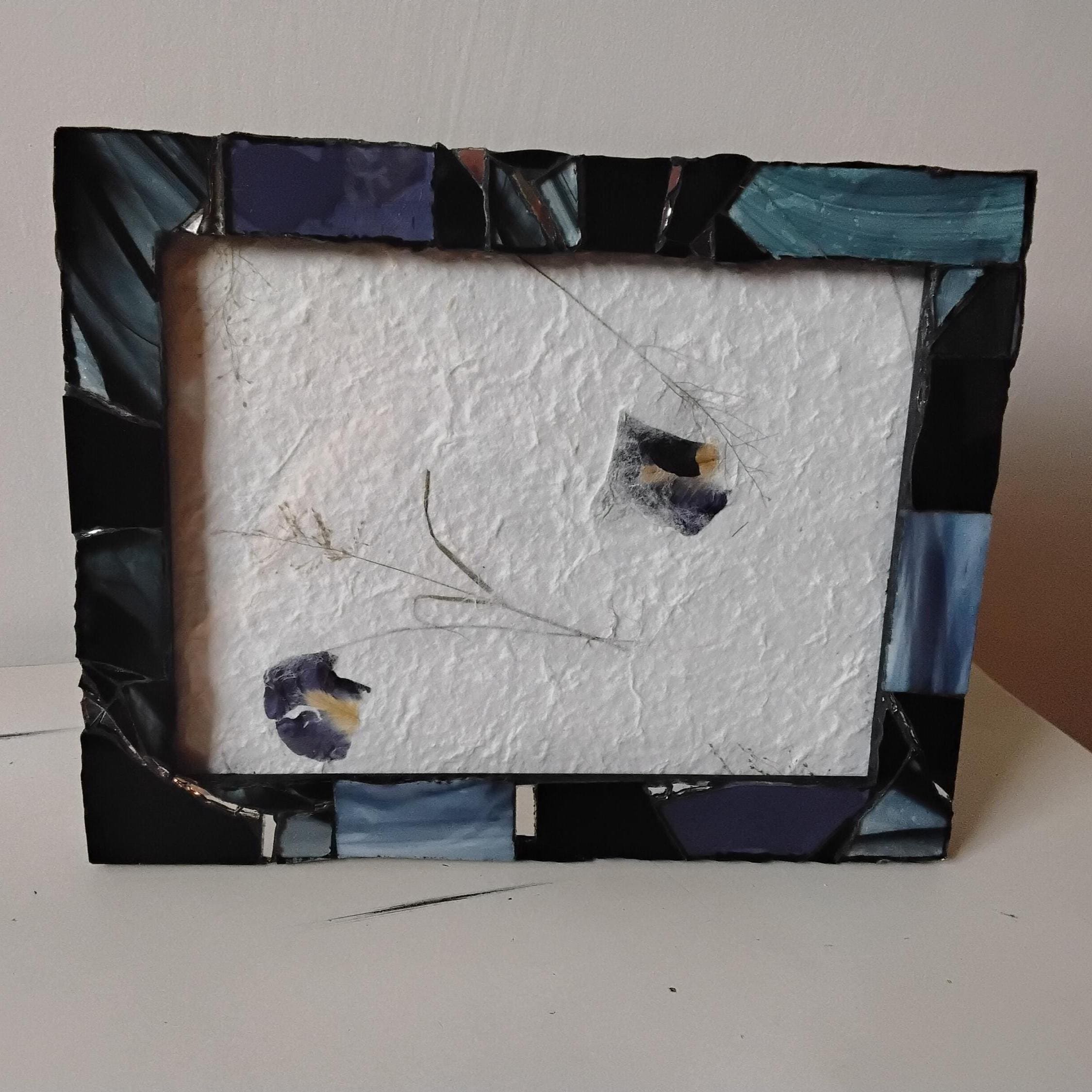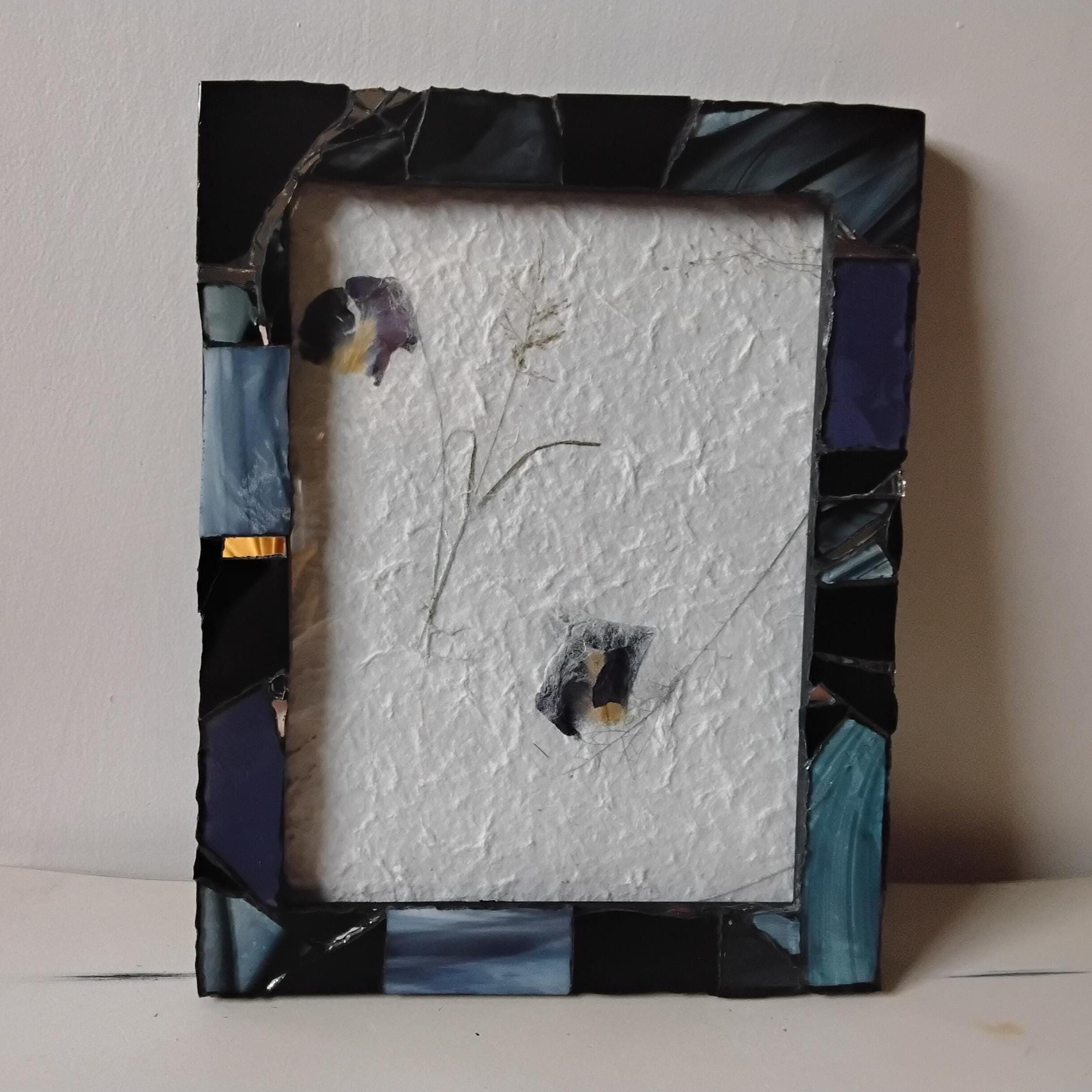 Black Stained Glass and Mirror, Mosaic Vertical or Horizontal, Hanging or Tabletop 6-inch x 8-inch Frame with Glass