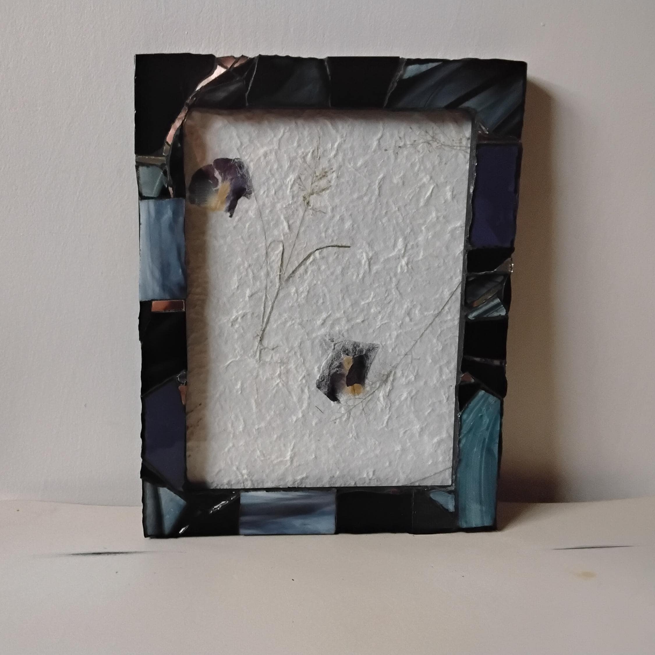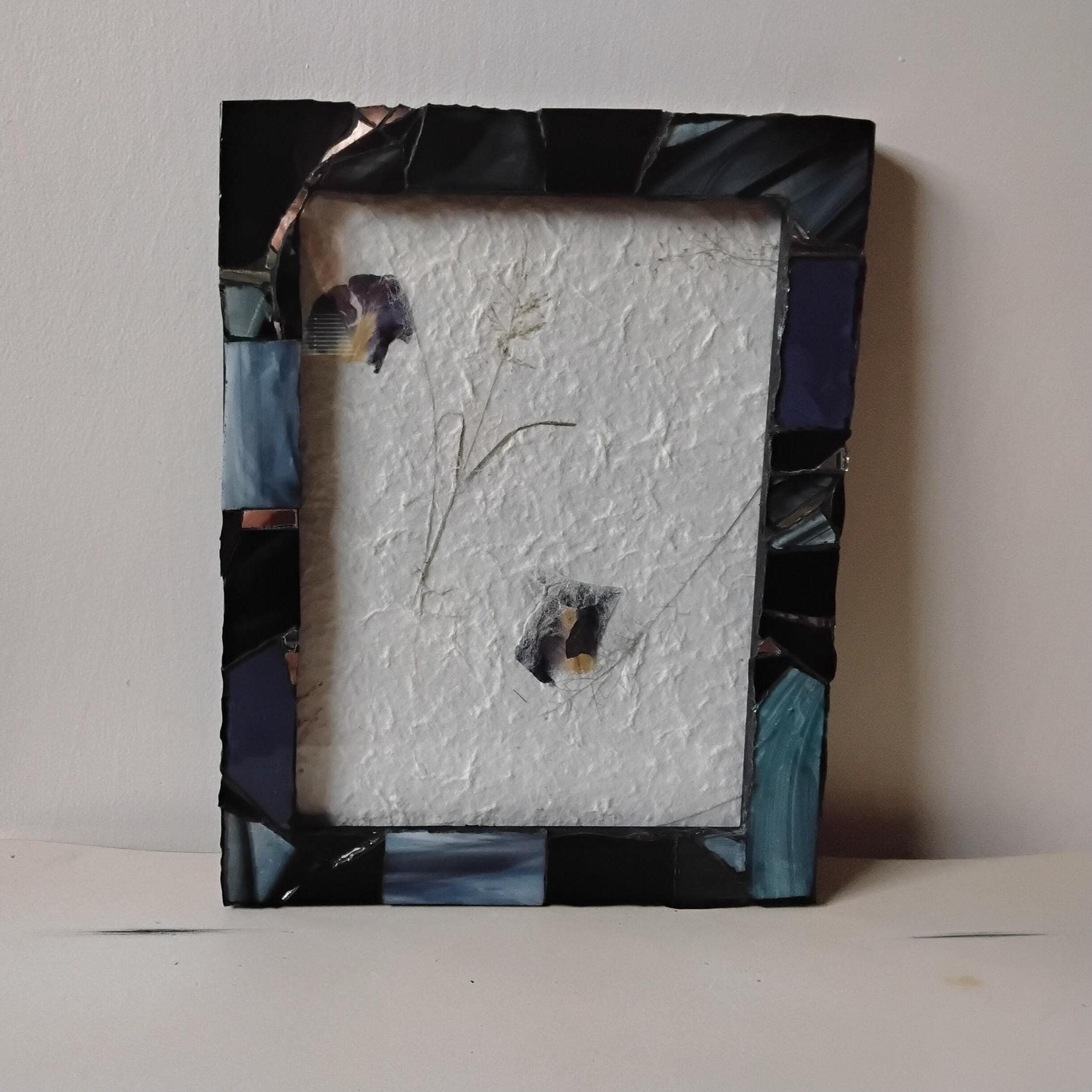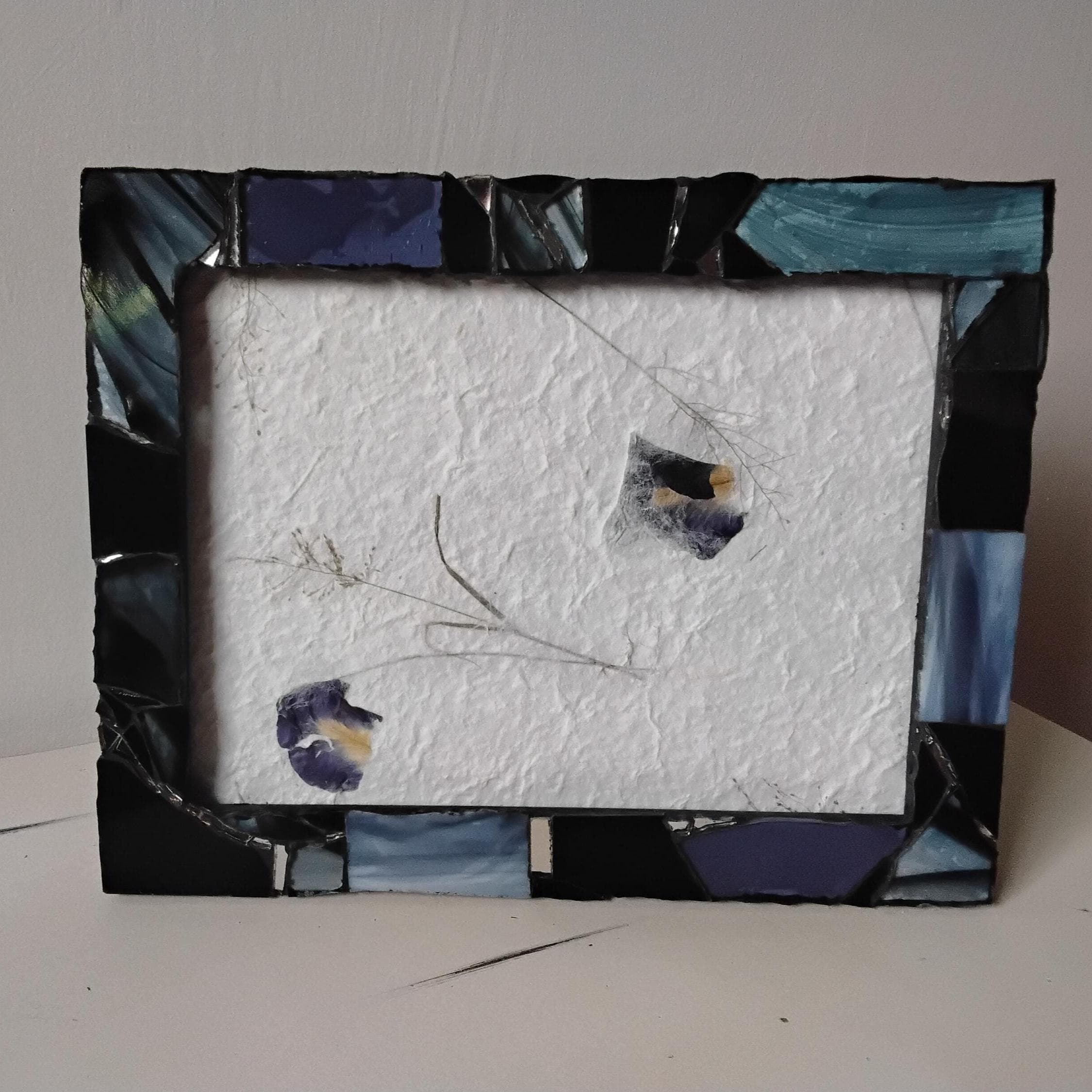 Black Stained Glass and Mirror, Mosaic Vertical or Horizontal, Hanging or Tabletop 6-inch x 8-inch Frame with Glass