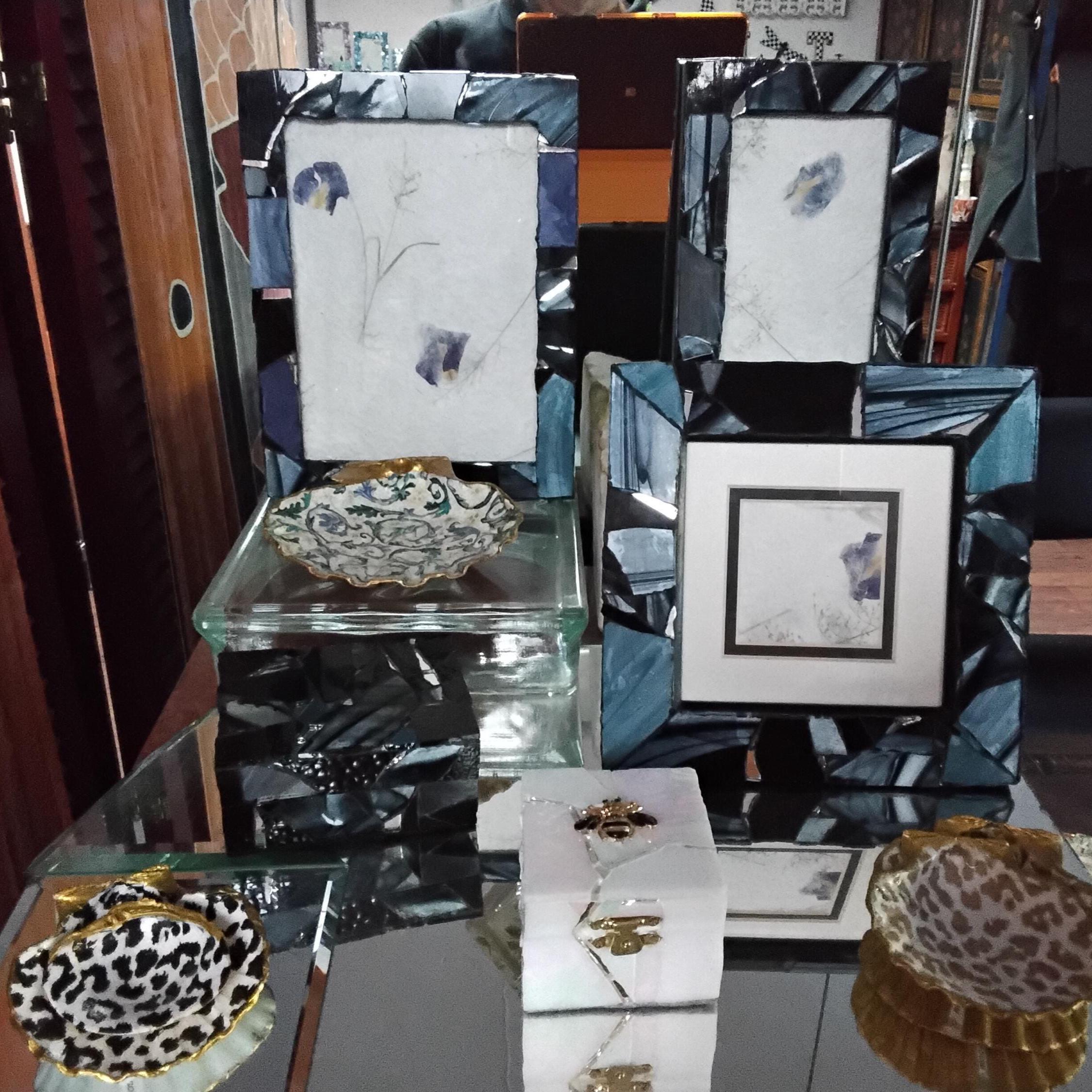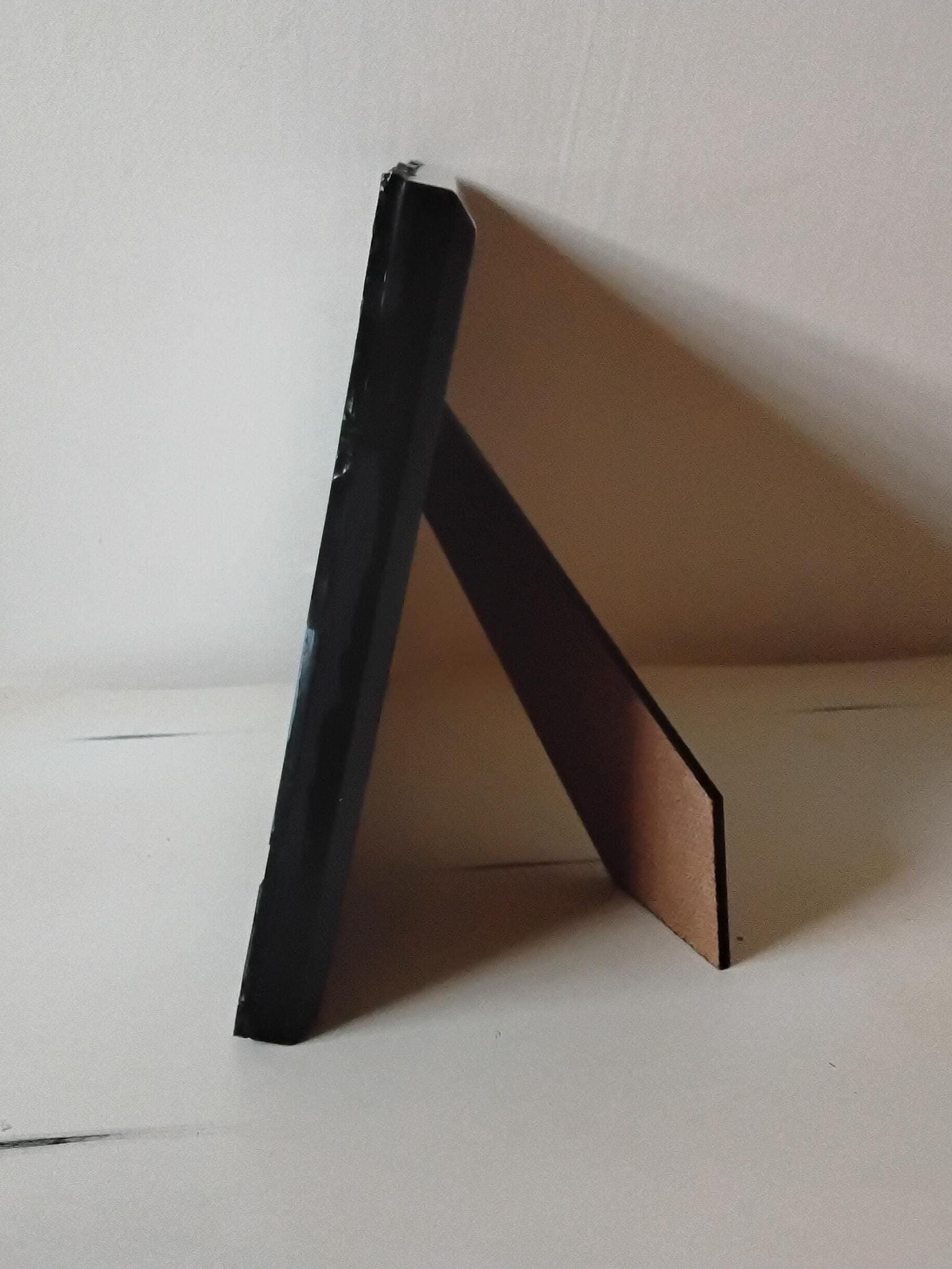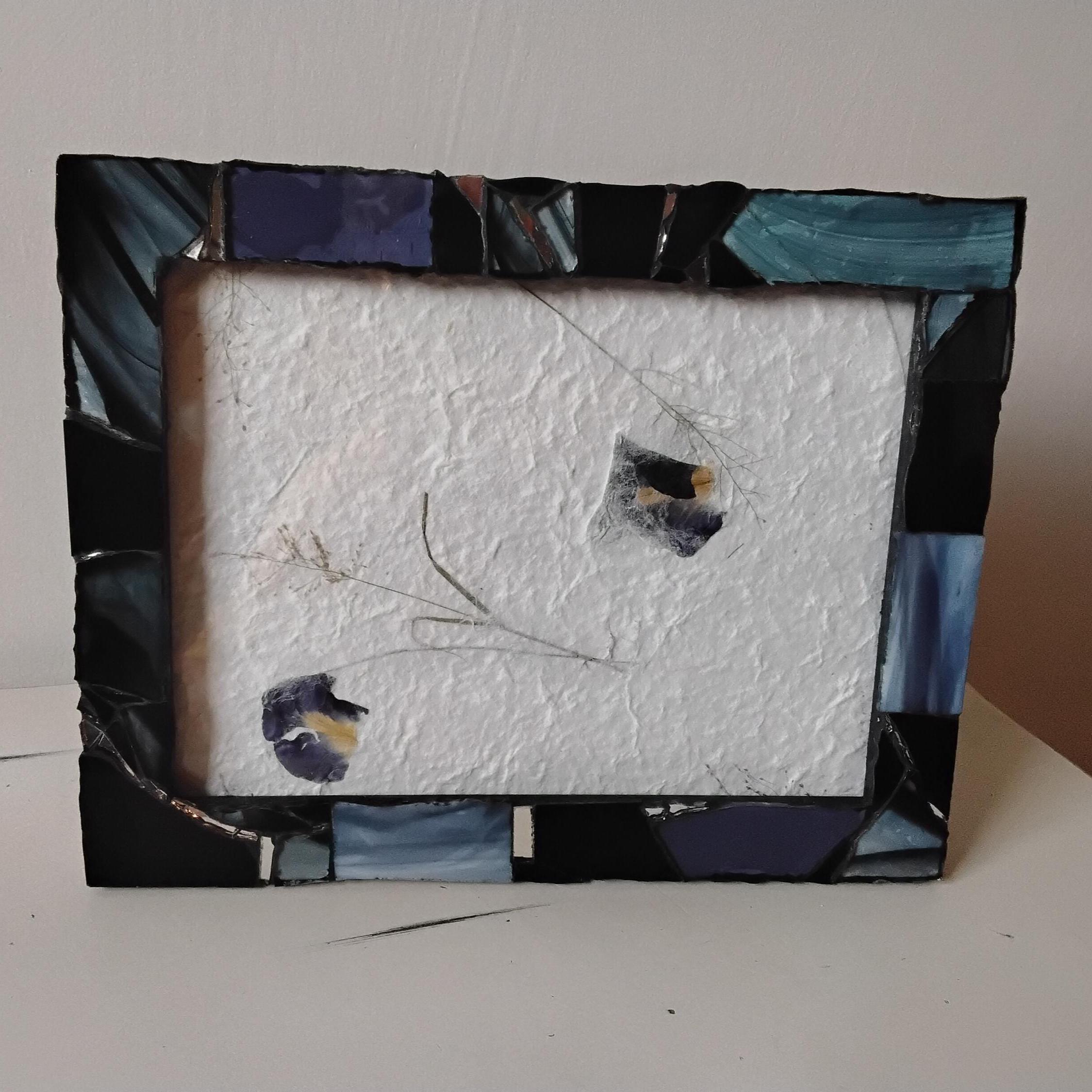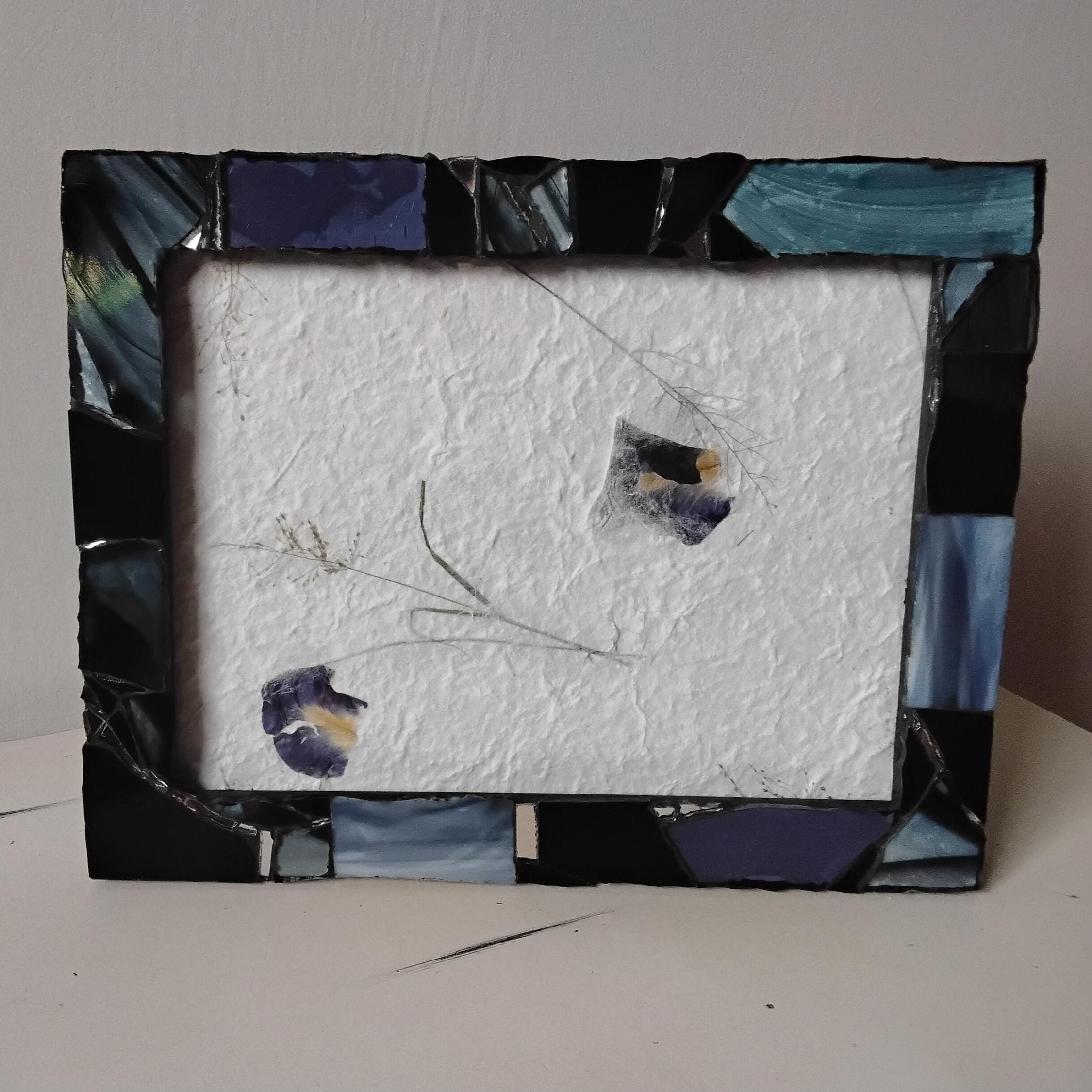Black Stained Glass and Mirror, Mosaic Vertical or Horizontal, Hanging or Tabletop 6-inch x 8-inch Frame with Glass