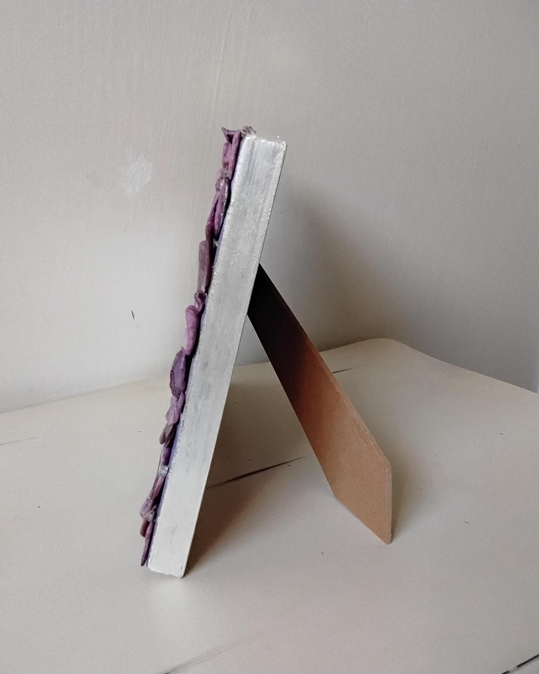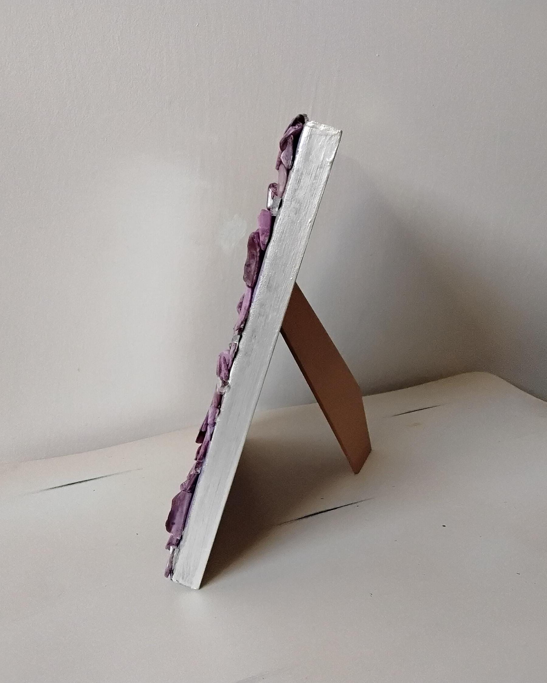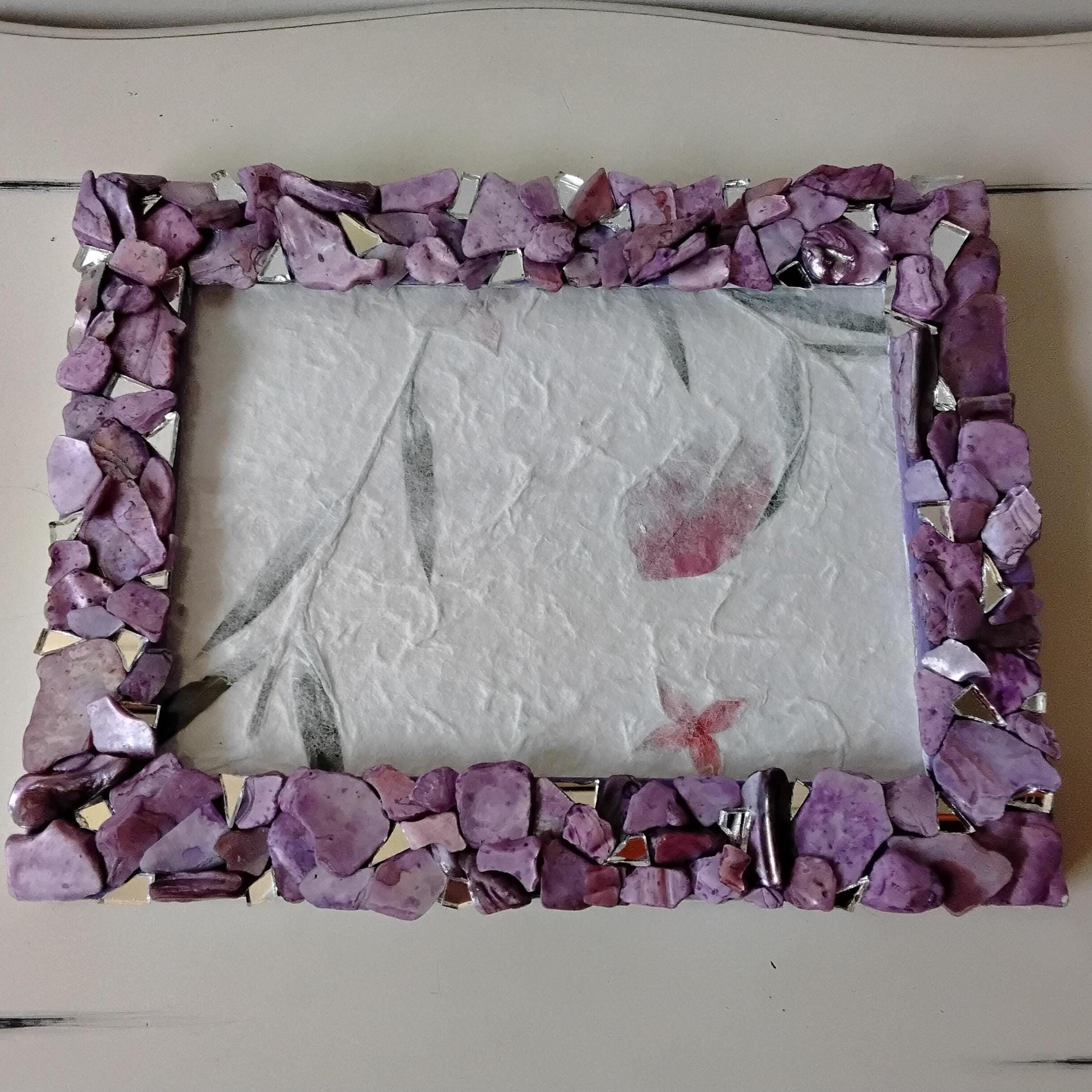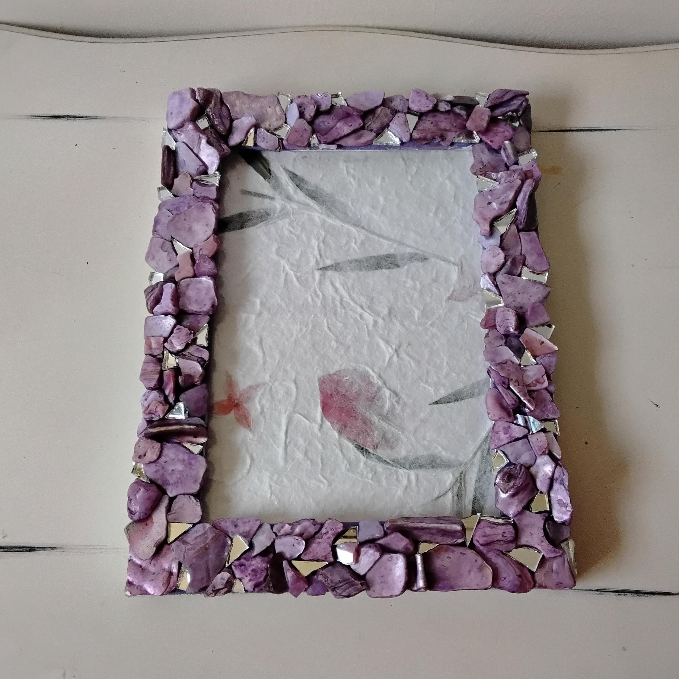 Purple/Lavender-Stained Abalone Shell and Mirror Mosaic, Hanging or Tabletop, Vertical or Horizontal 5 x 7-inch Wood Frame with Glass