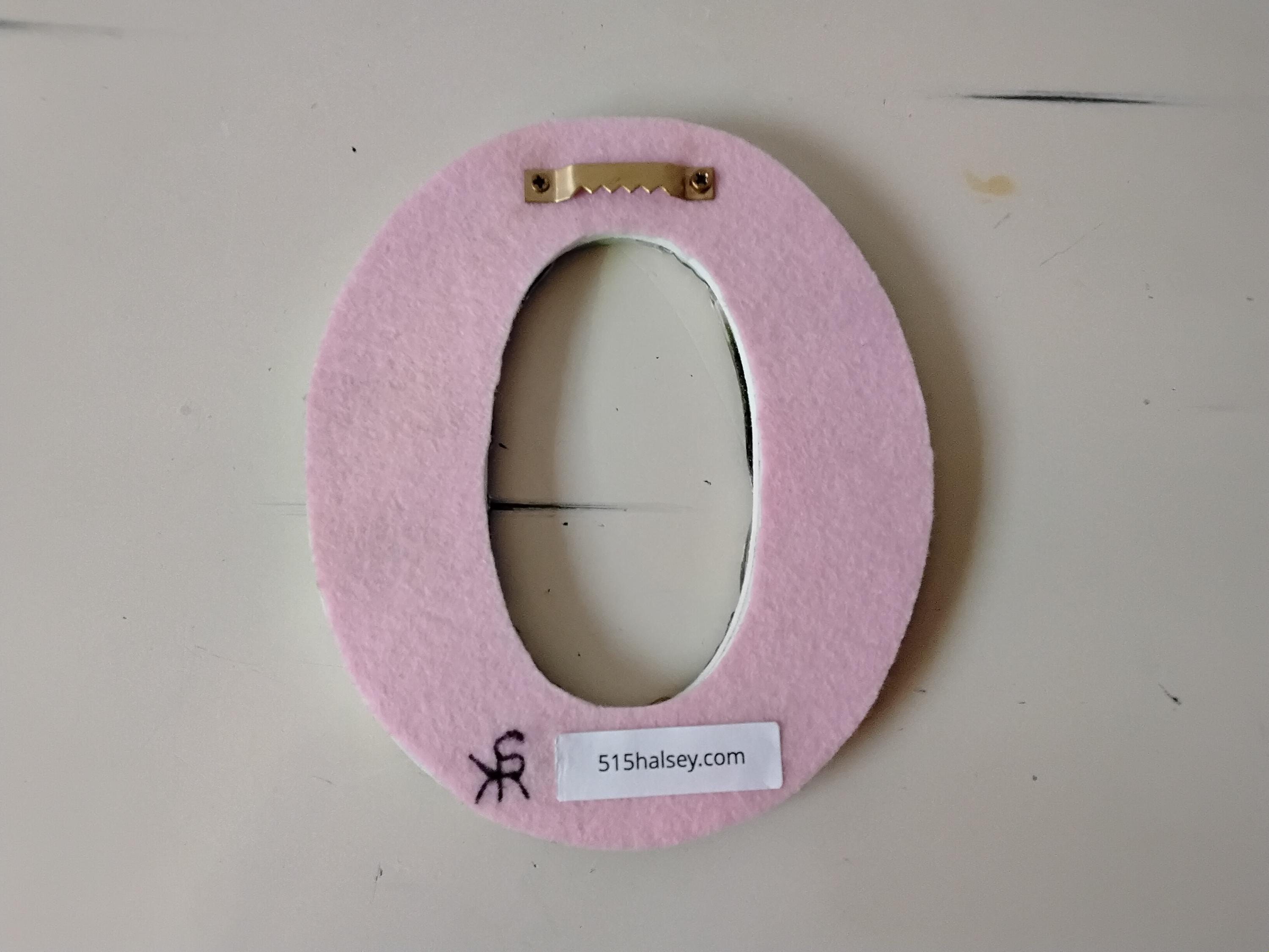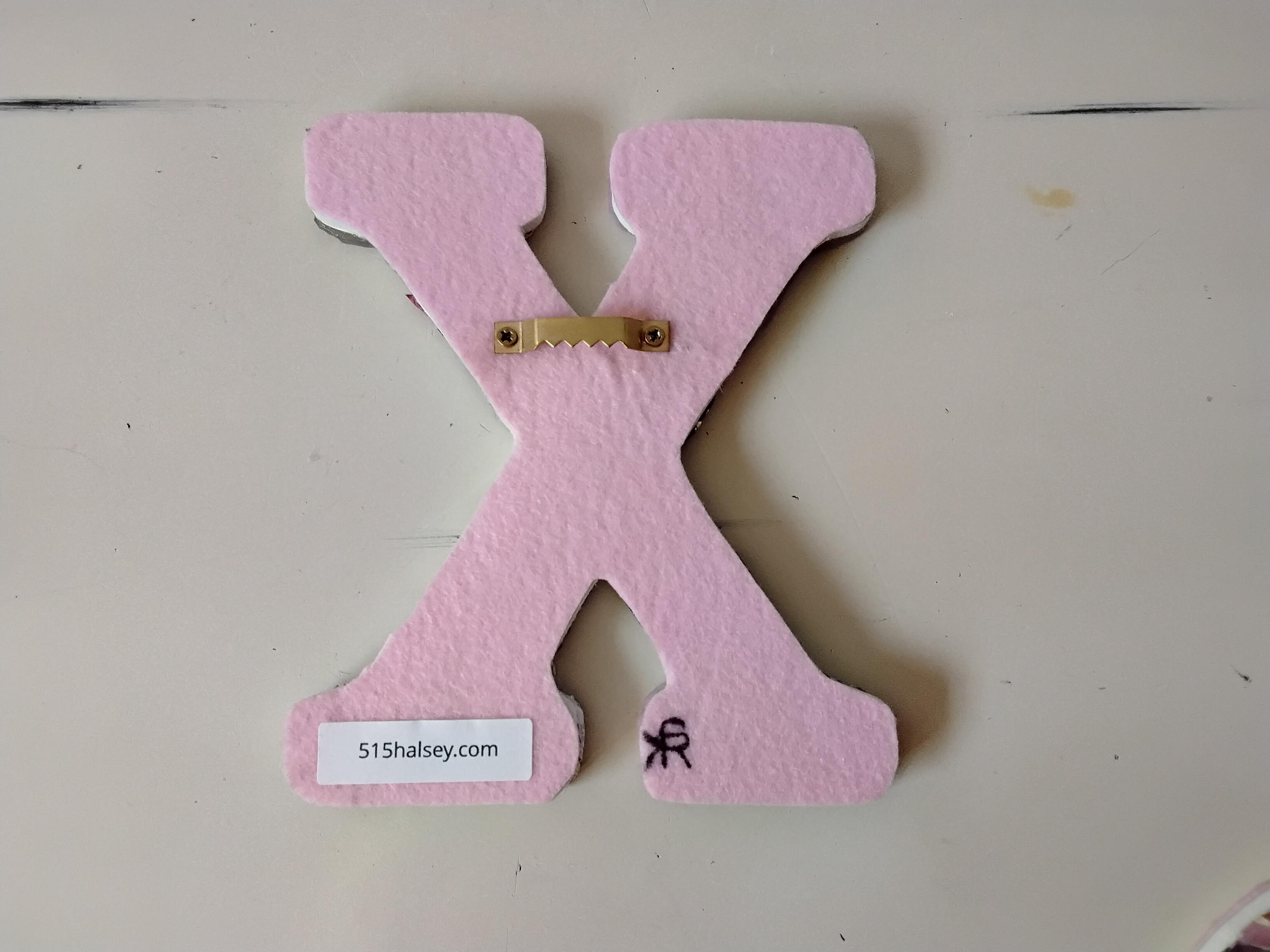 Both are covered in pink felt on the back, and each letter has a sawtooth hook attached to the back for hanging display