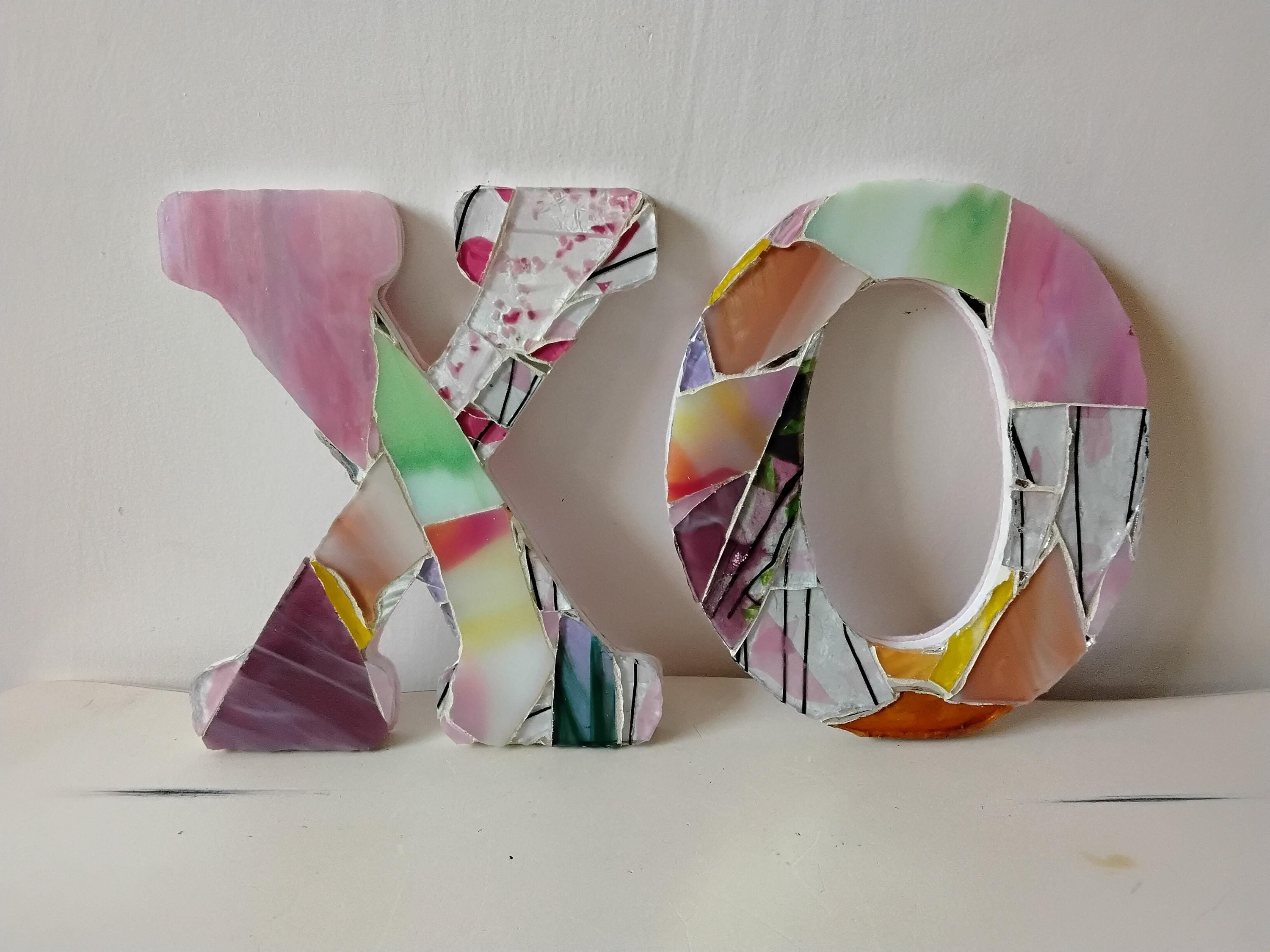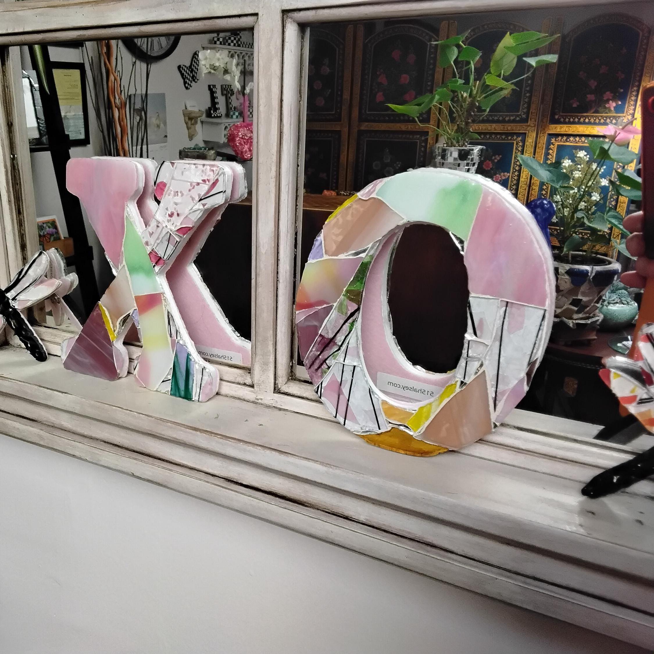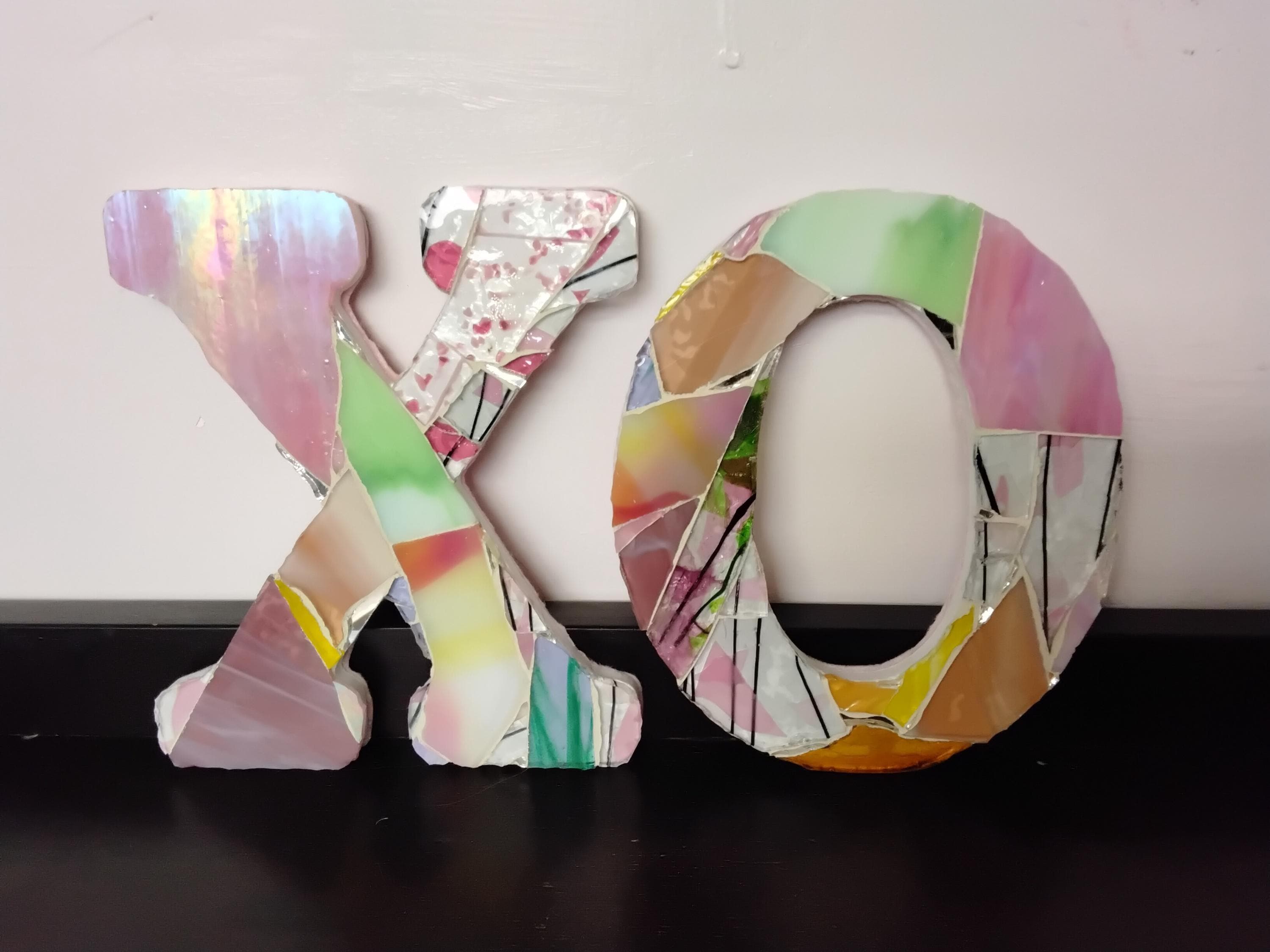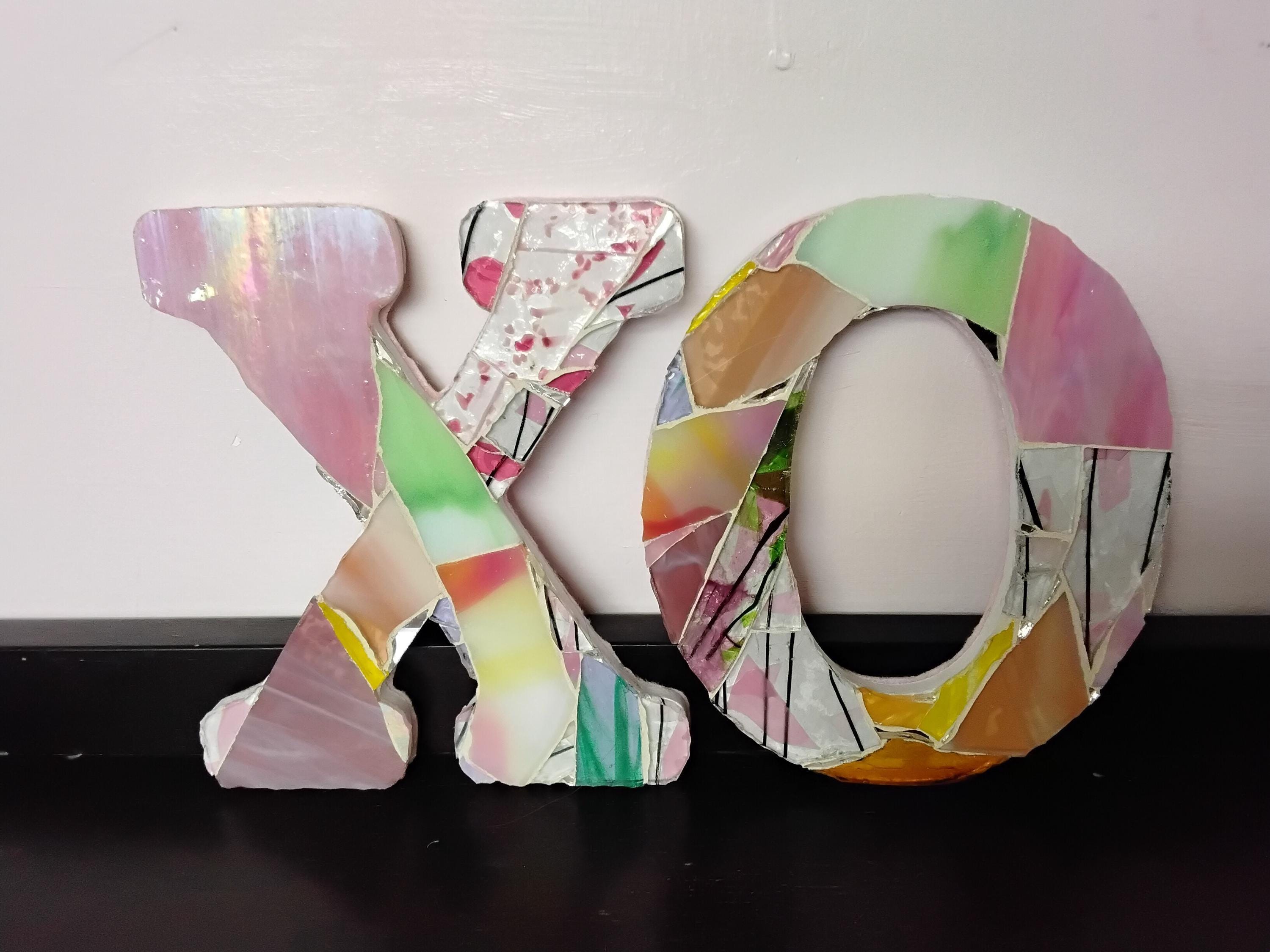 Mosaic Stained and Art Glass Hanging or Standing X and O Hugs and Kisses Letters