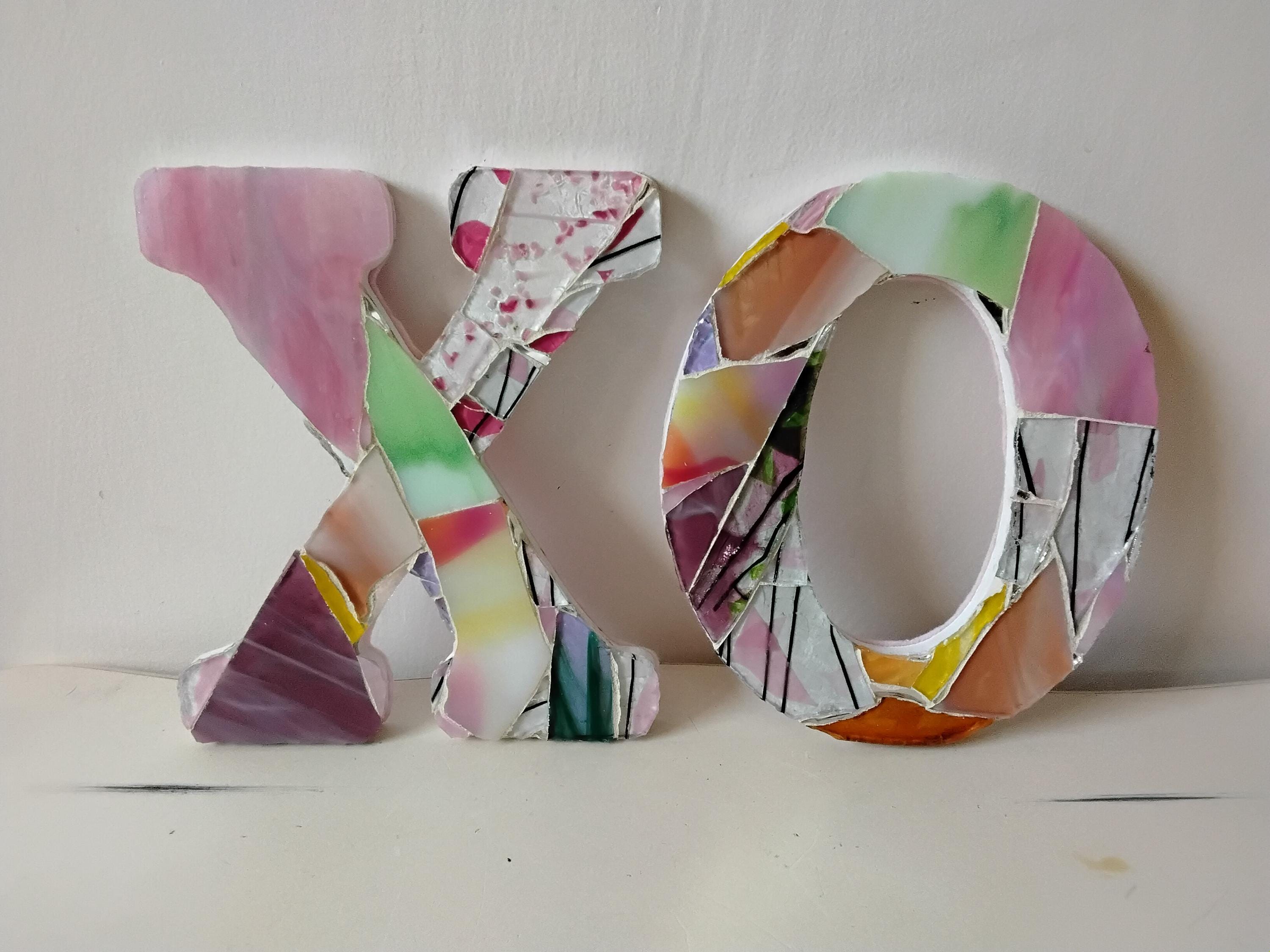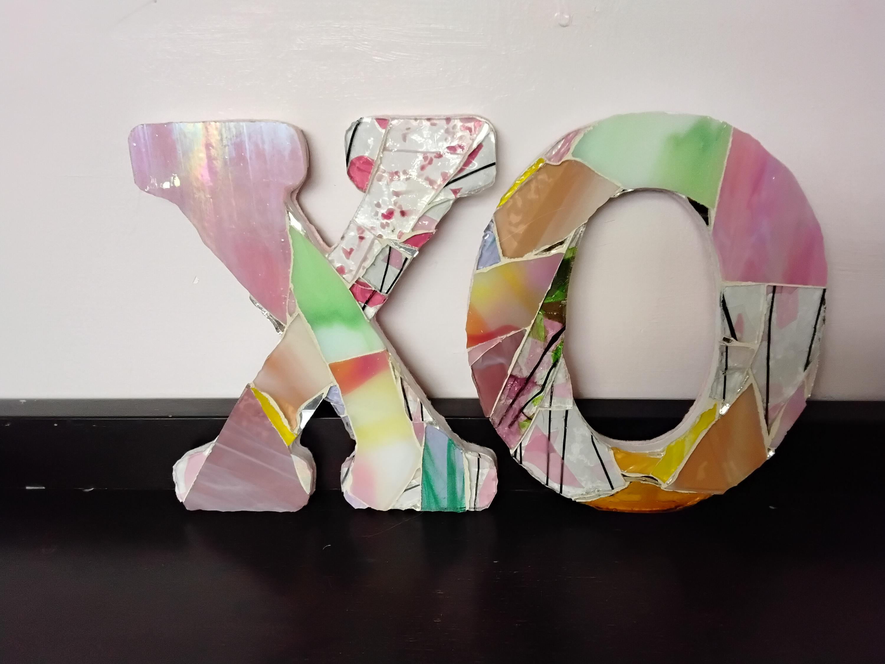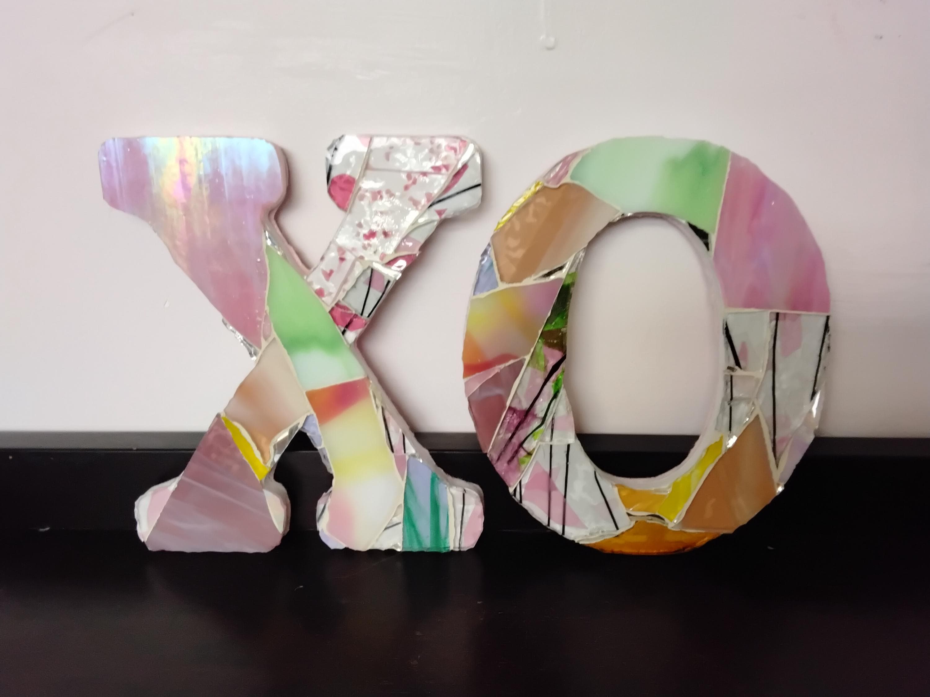 Mosaic Stained and Art Glass Hanging or Standing X and O Hugs and Kisses Letters