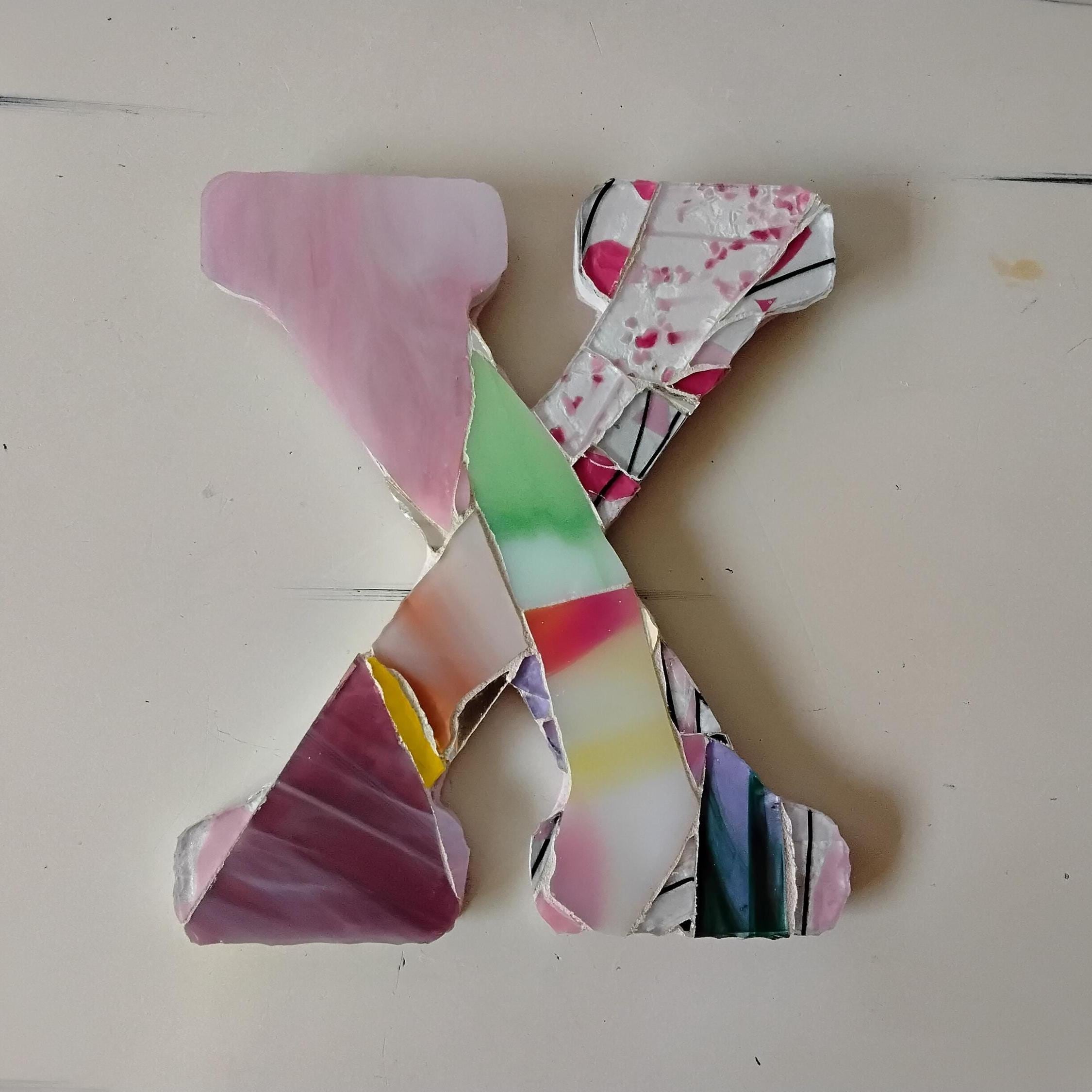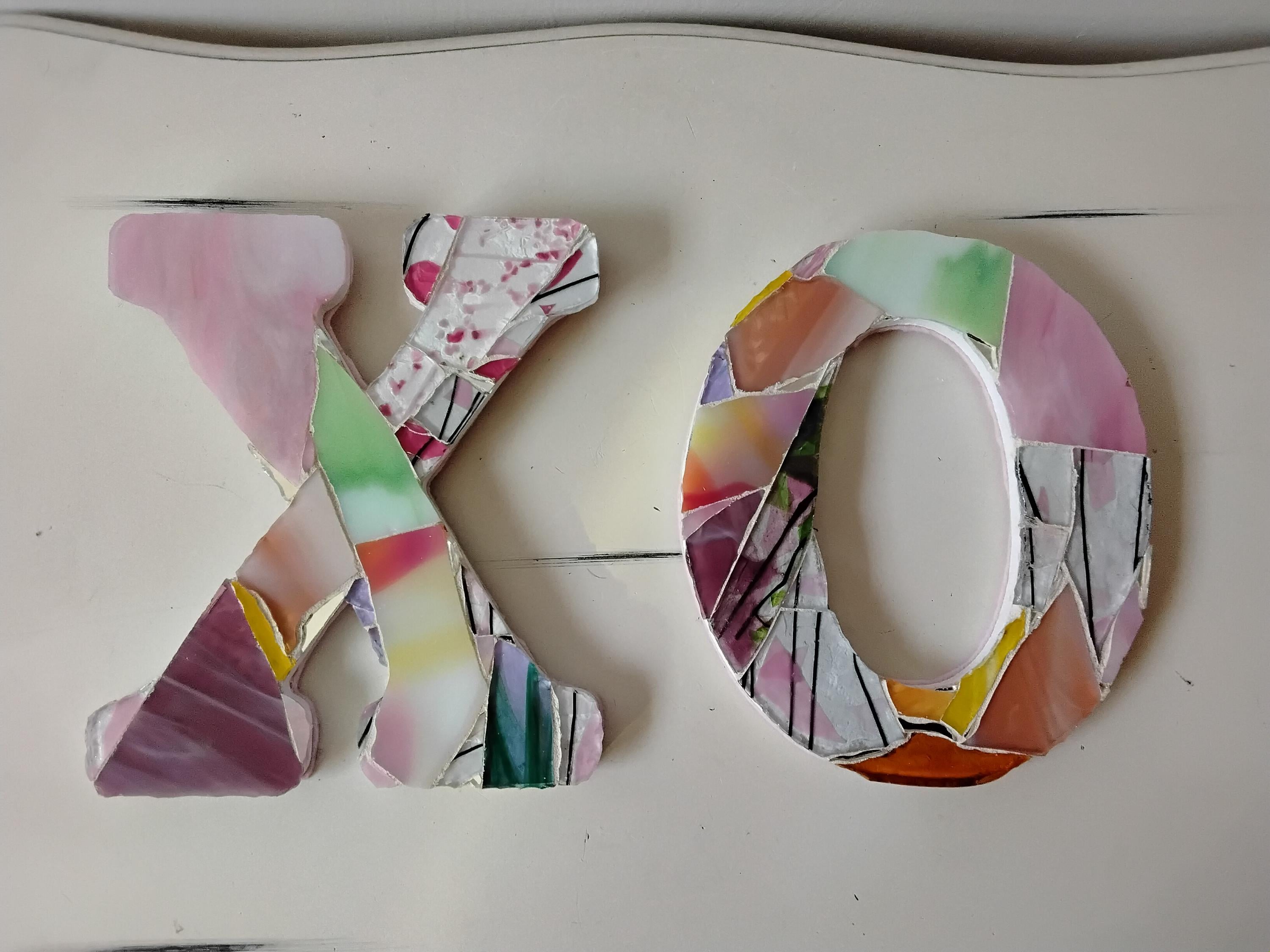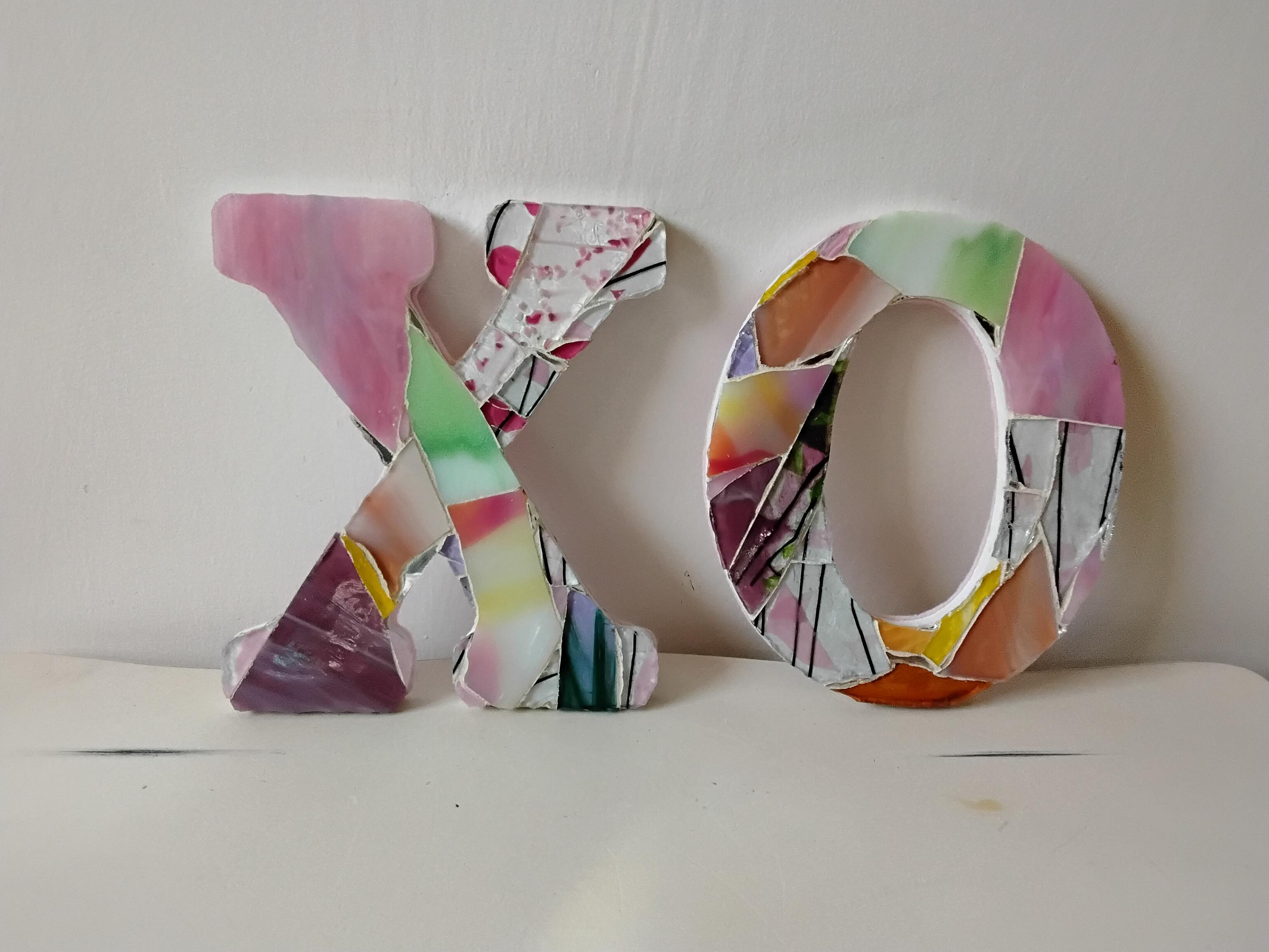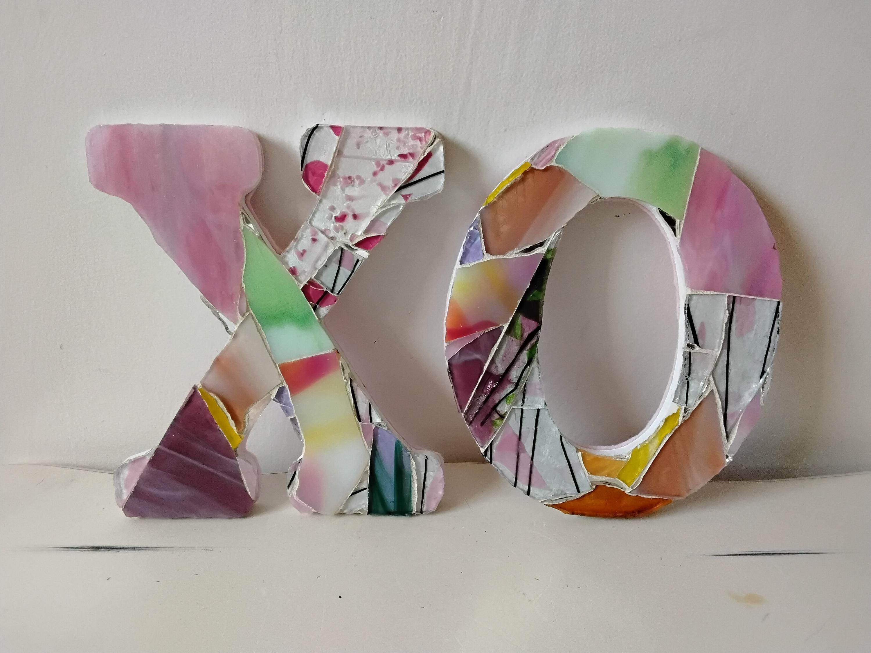 Mosaic Stained and Art Glass Hanging or Standing X and O Hugs and Kisses Letters