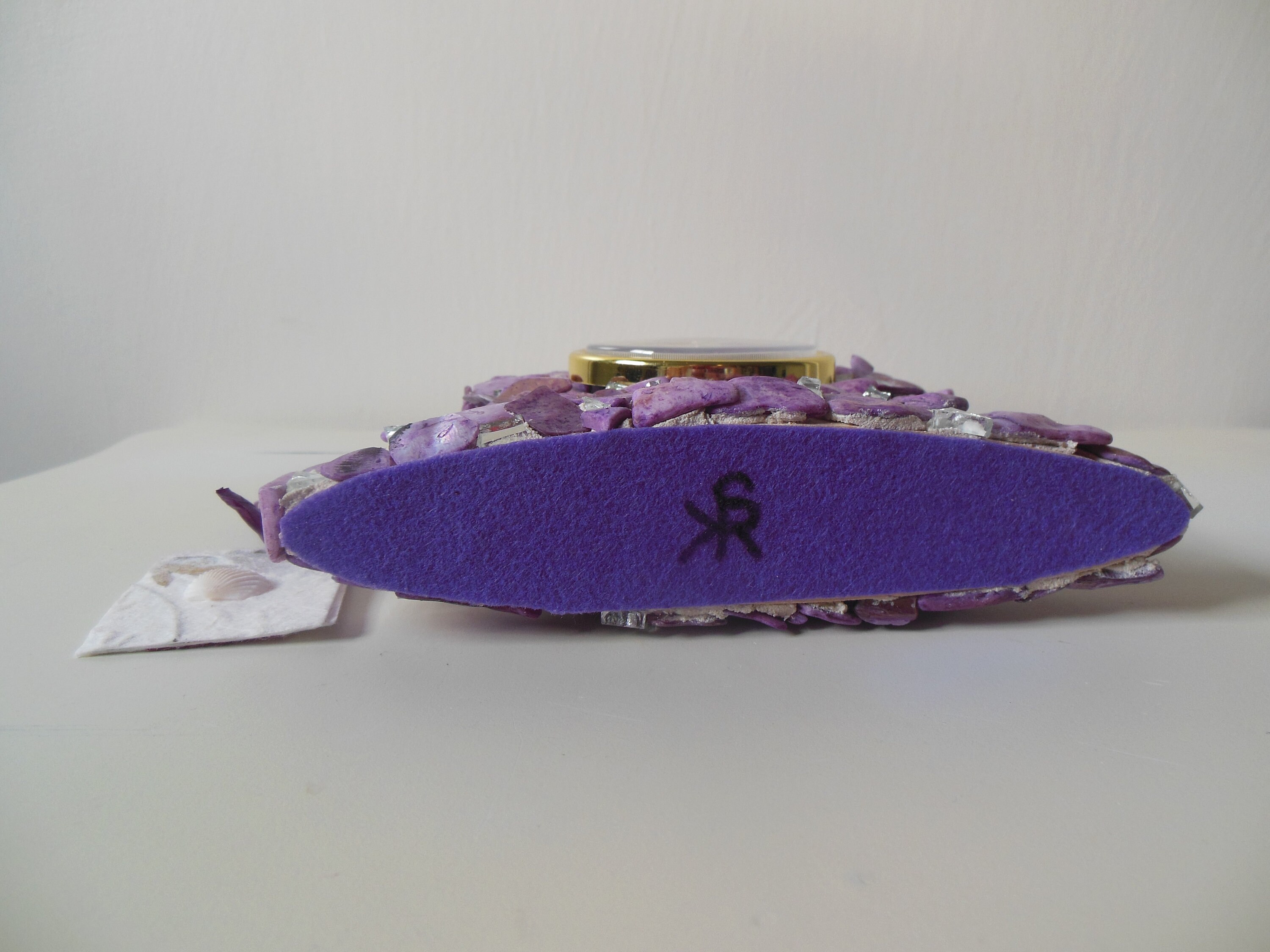 Bottom of clock is covered in Lilac purple felt