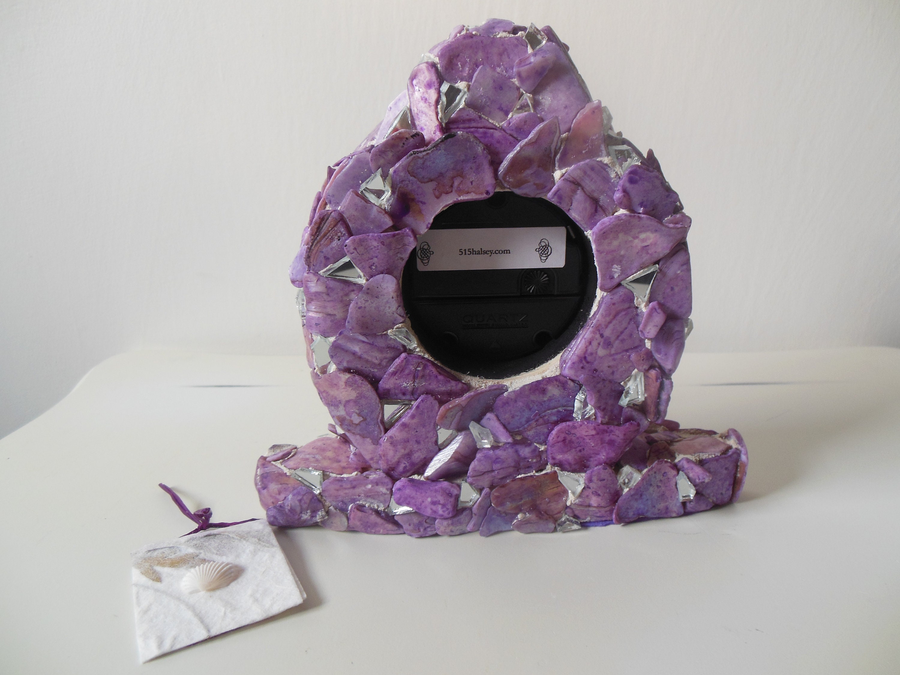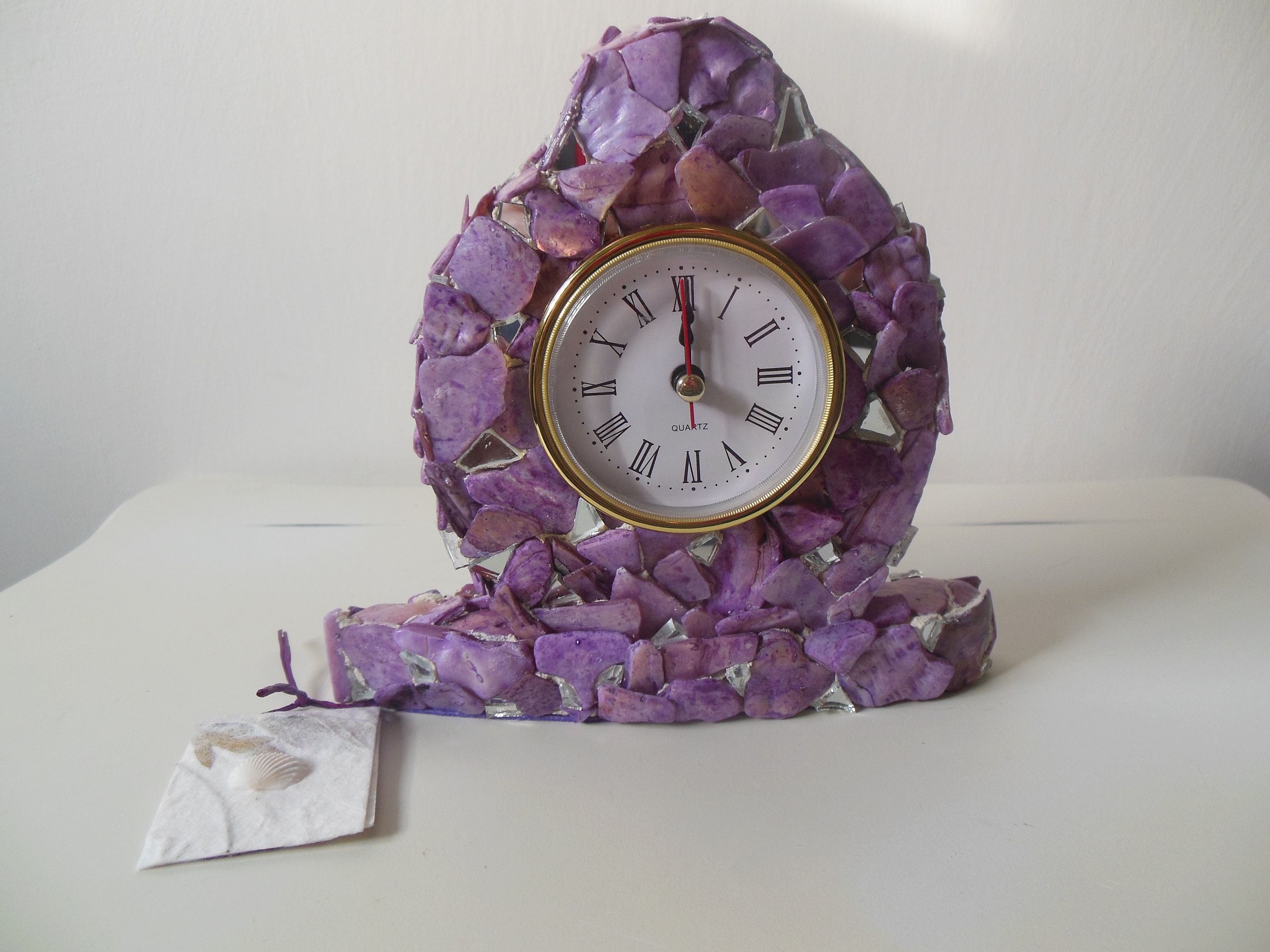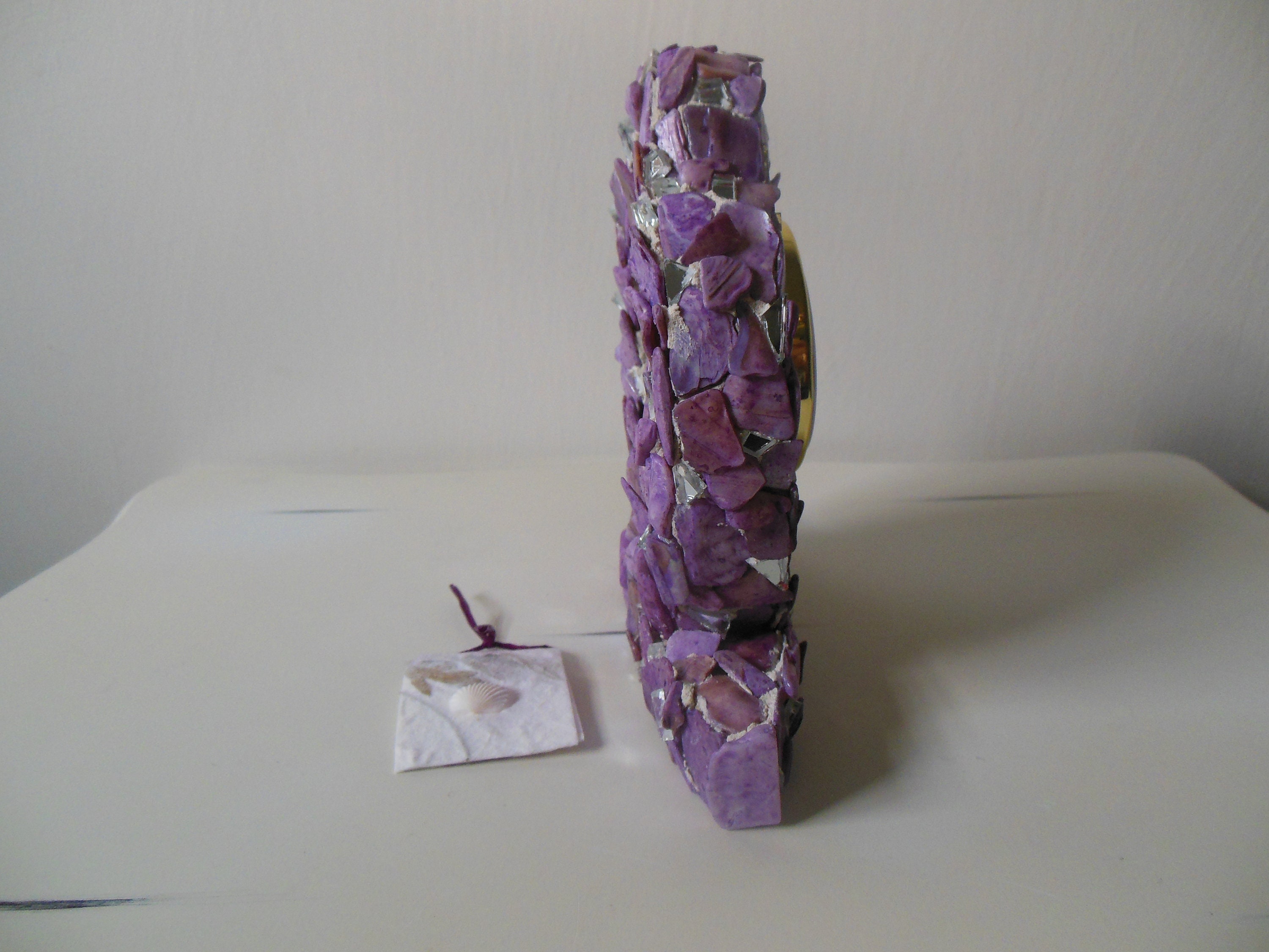 Purple, Lilac, Lavender, Stained Abalone Shell and Mirrored Working Clock