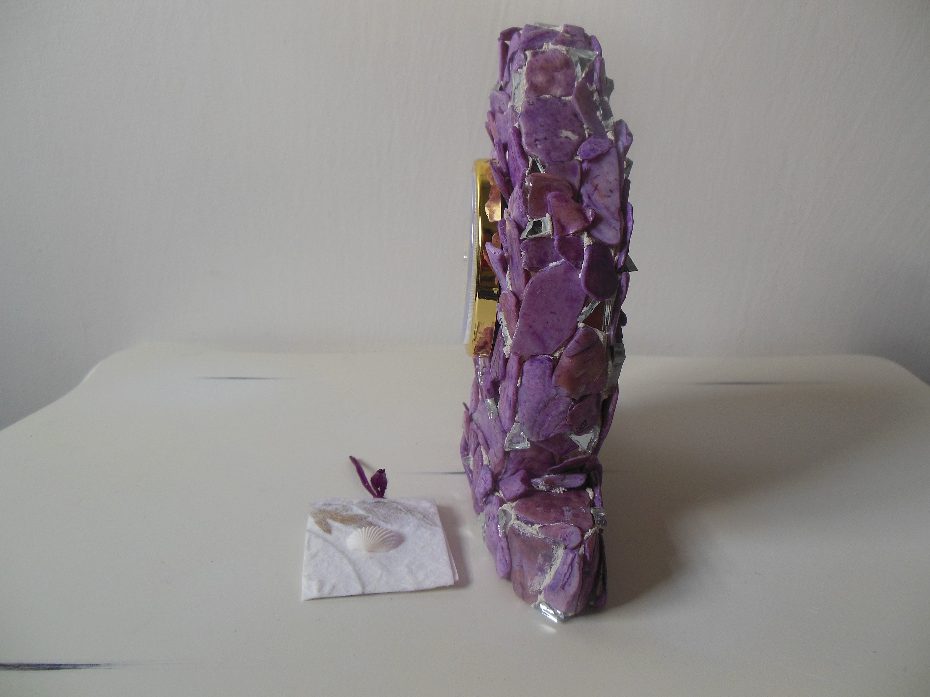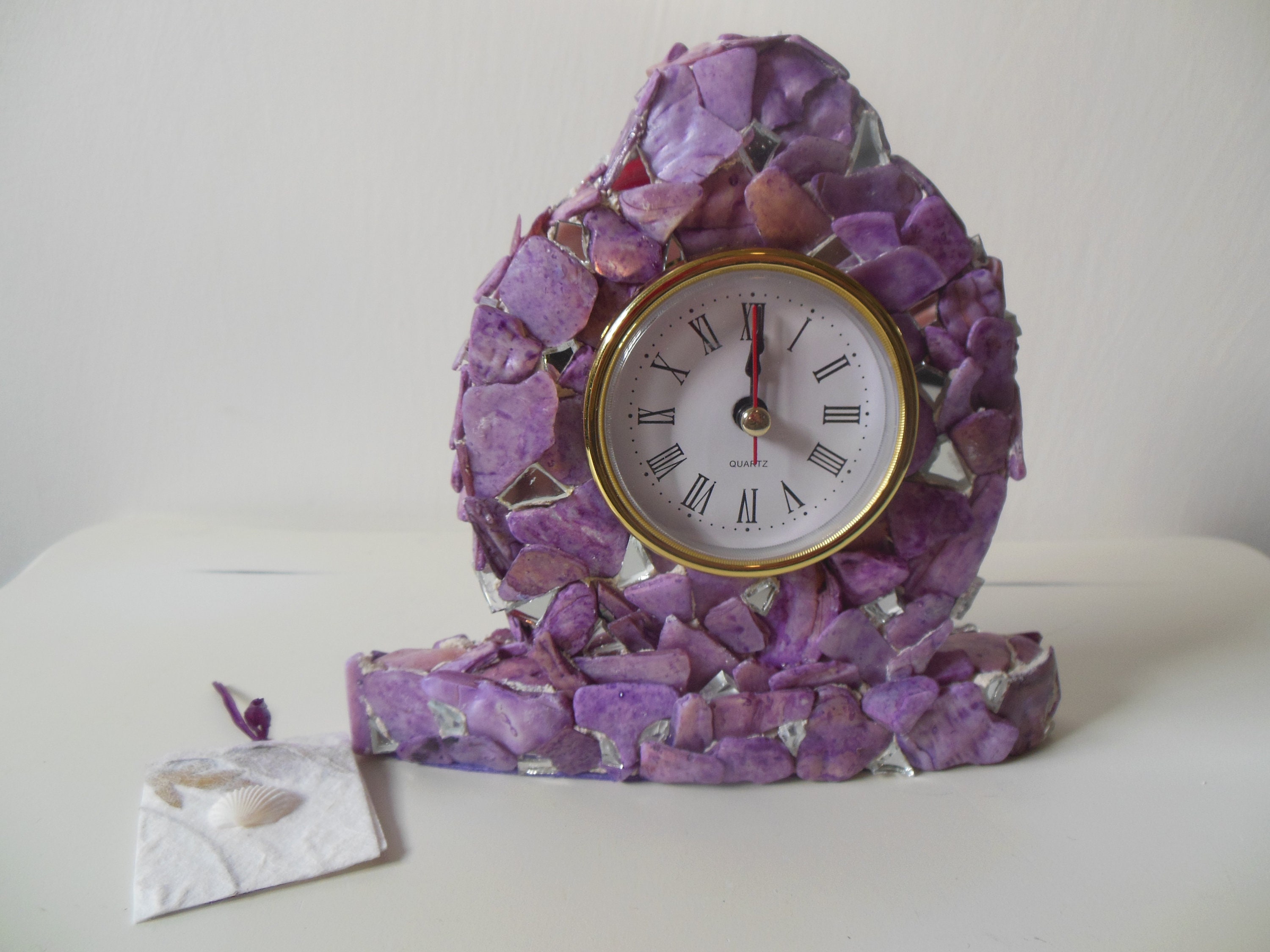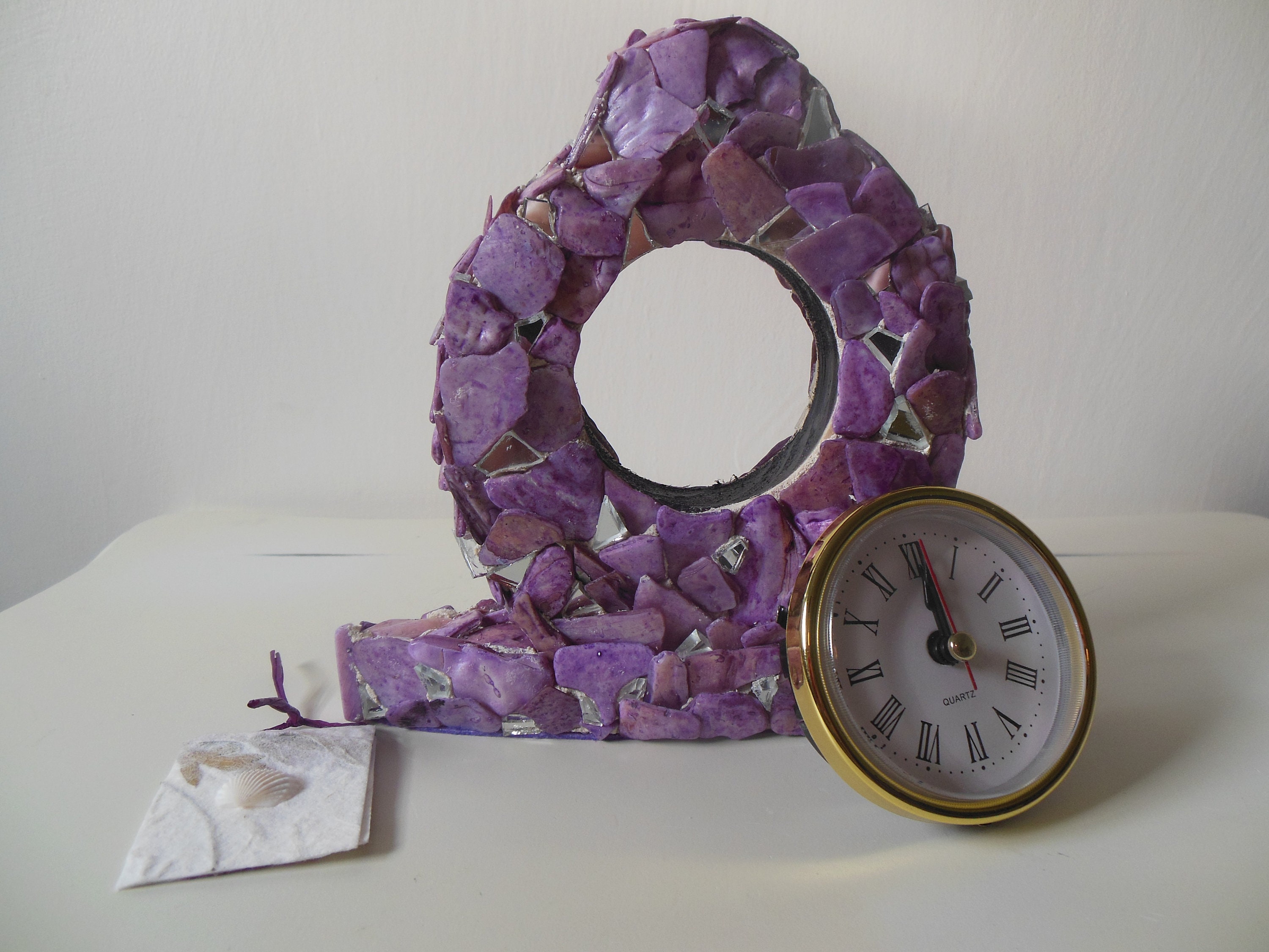 Purple, Lilac, Lavender, Stained Abalone Shell and Mirrored Working Clock